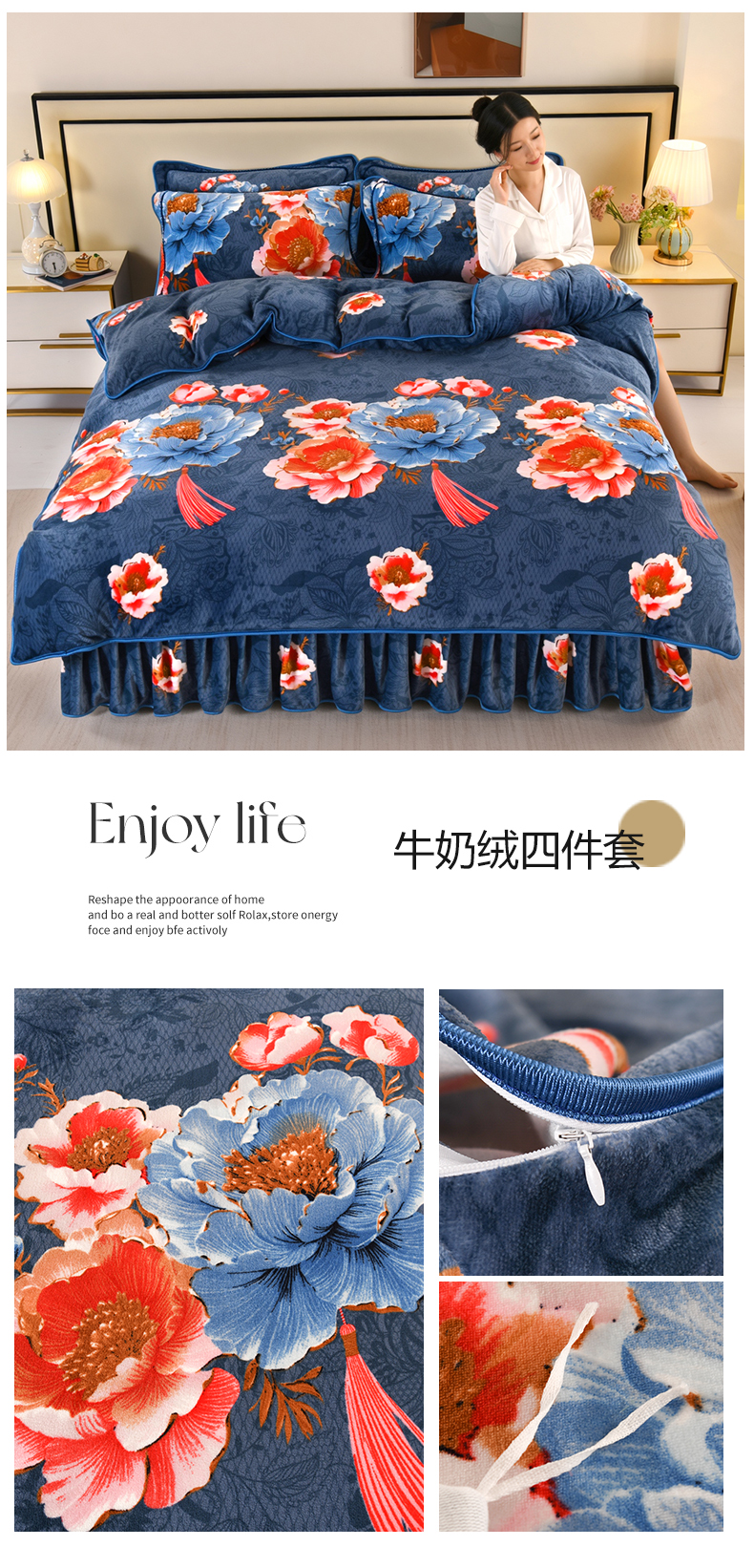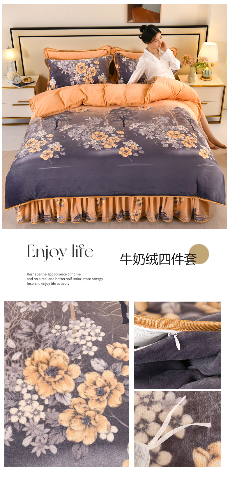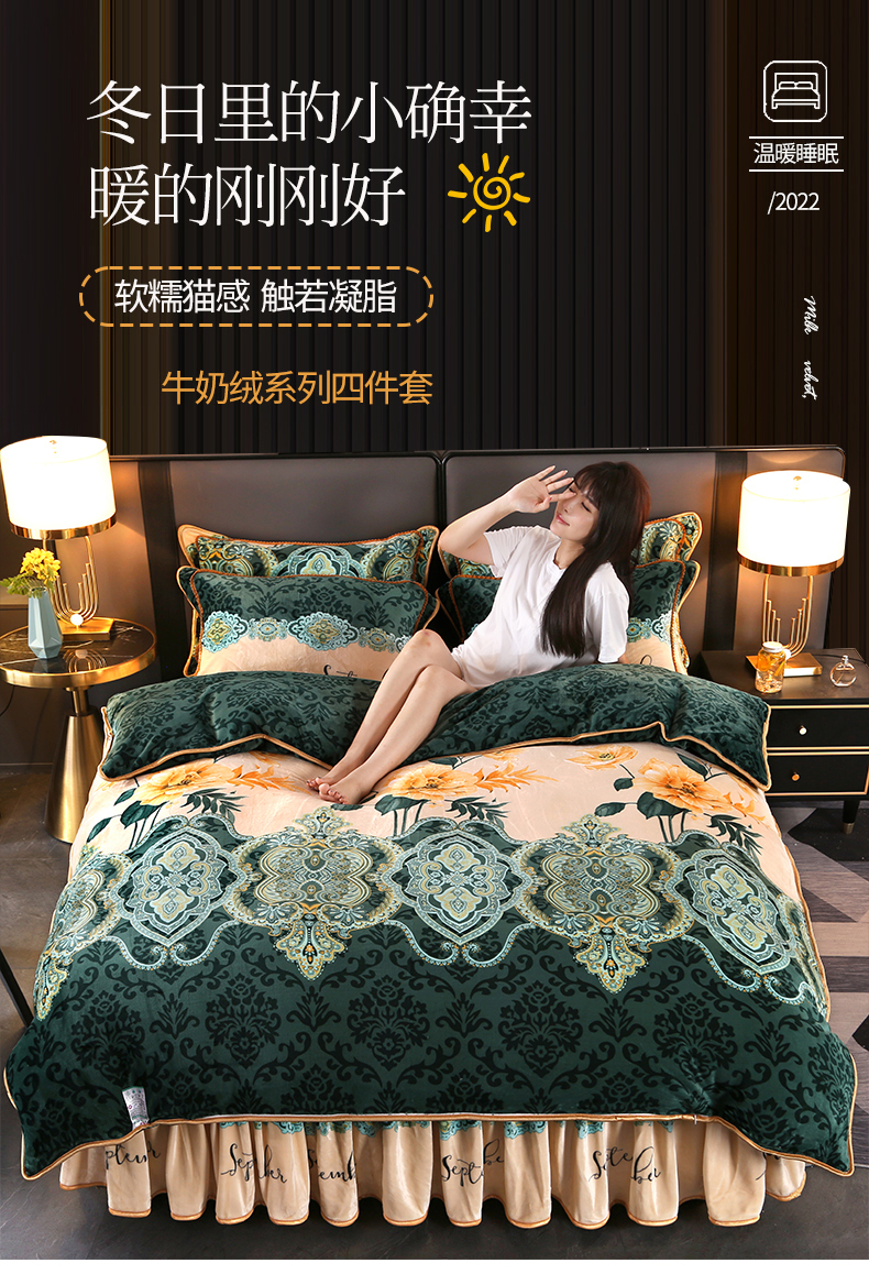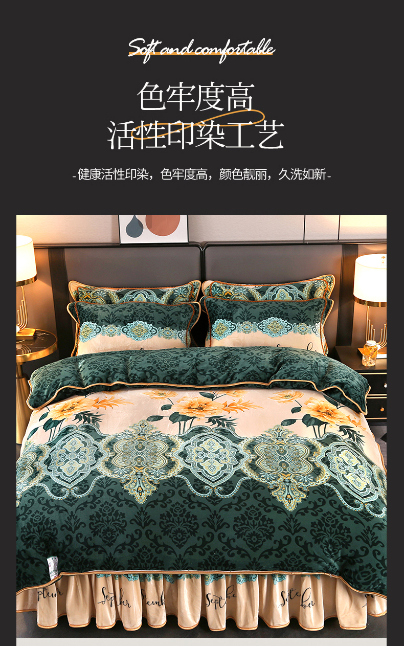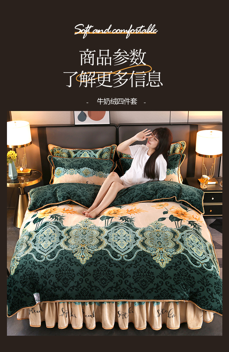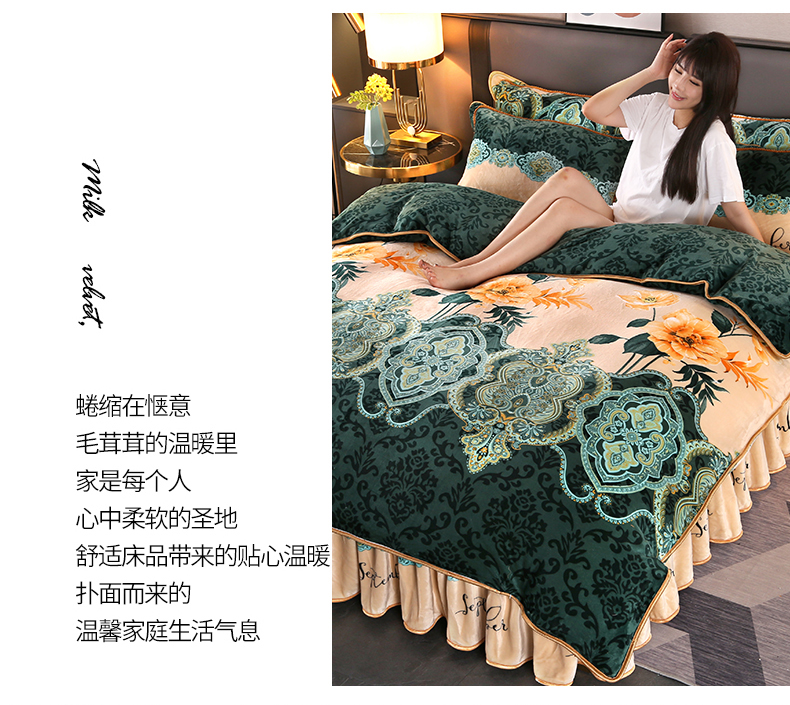 商品名称:栩裕纺织 2025新款230高克重牛奶绒法莱绒印花四件套-直播热款8斤半 素色花卉