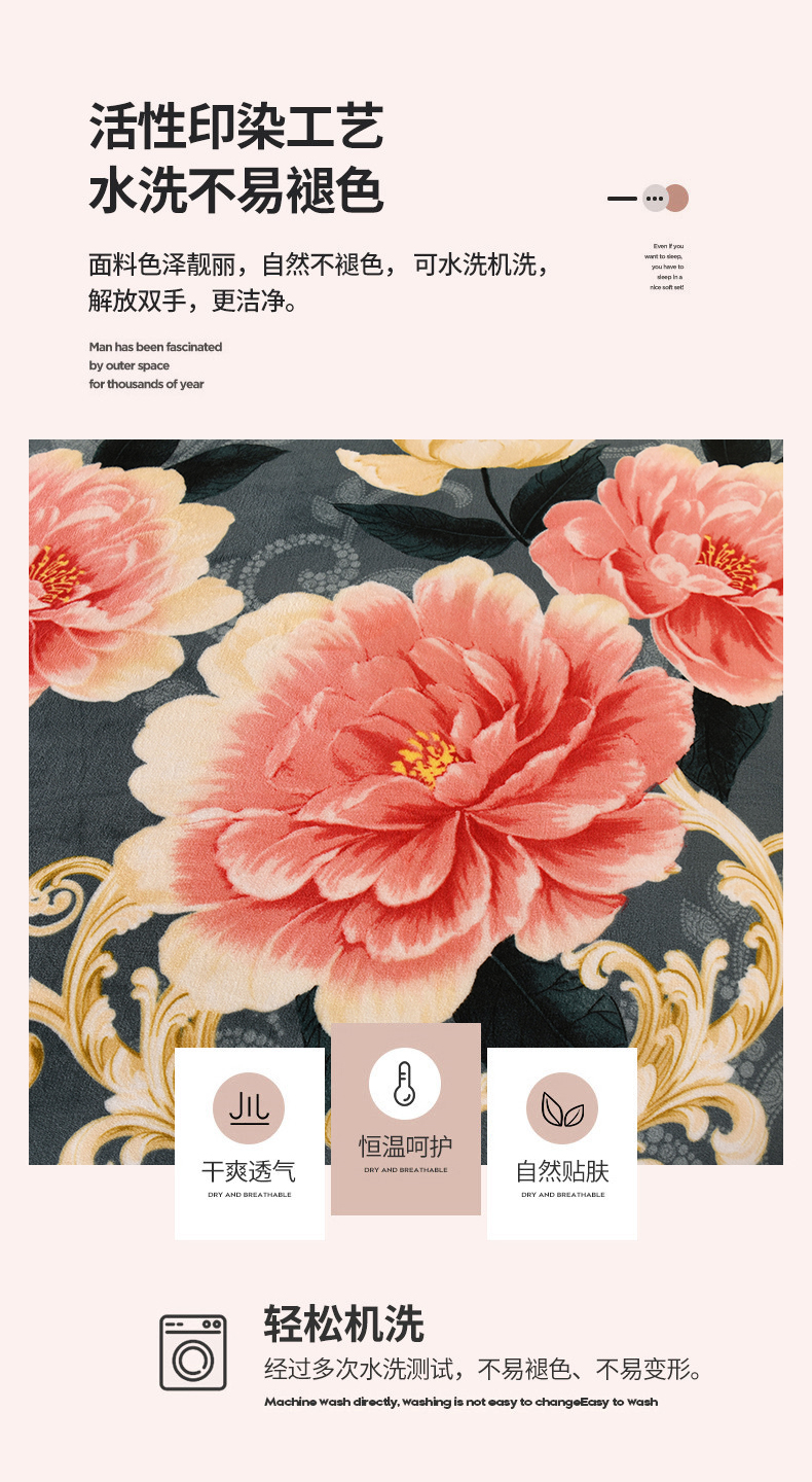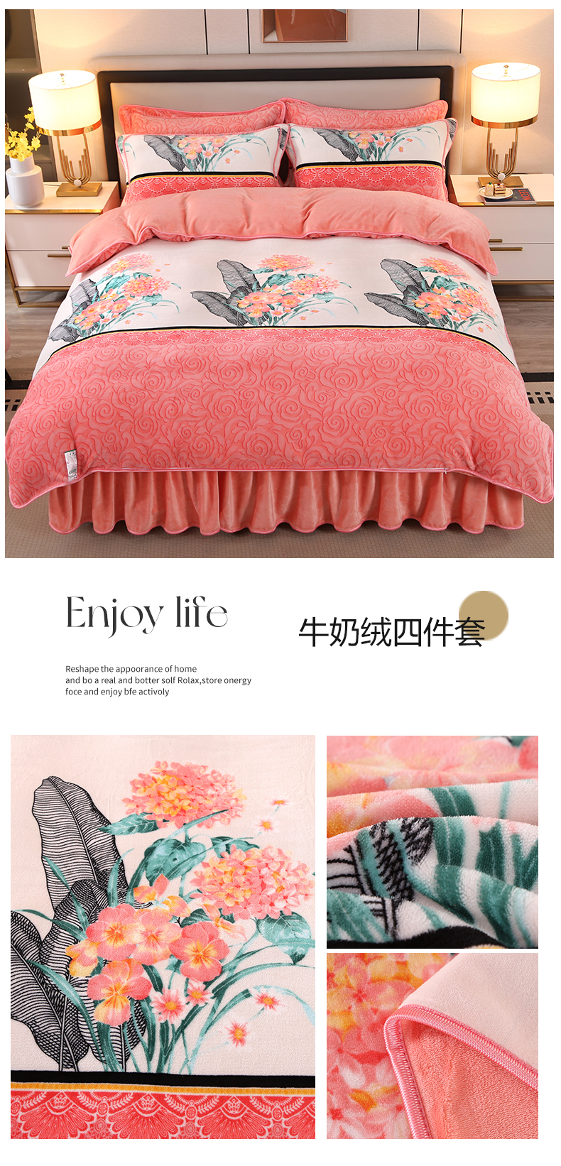 商品名称:栩裕纺织 2025新款230高克重牛奶绒法莱绒印花四件套-直播热款8斤半 温情花语