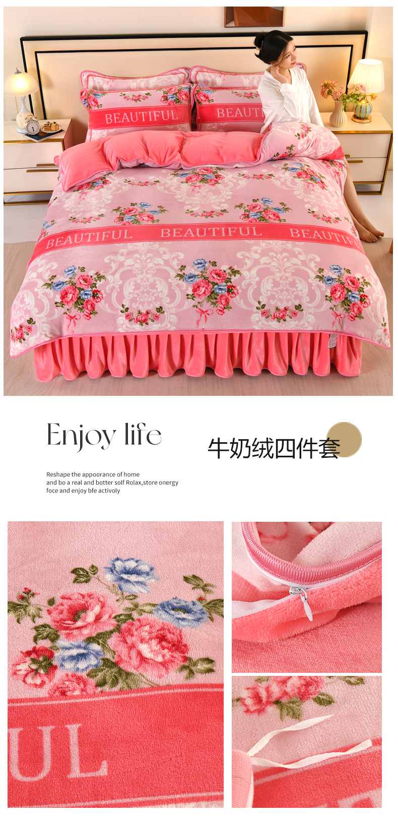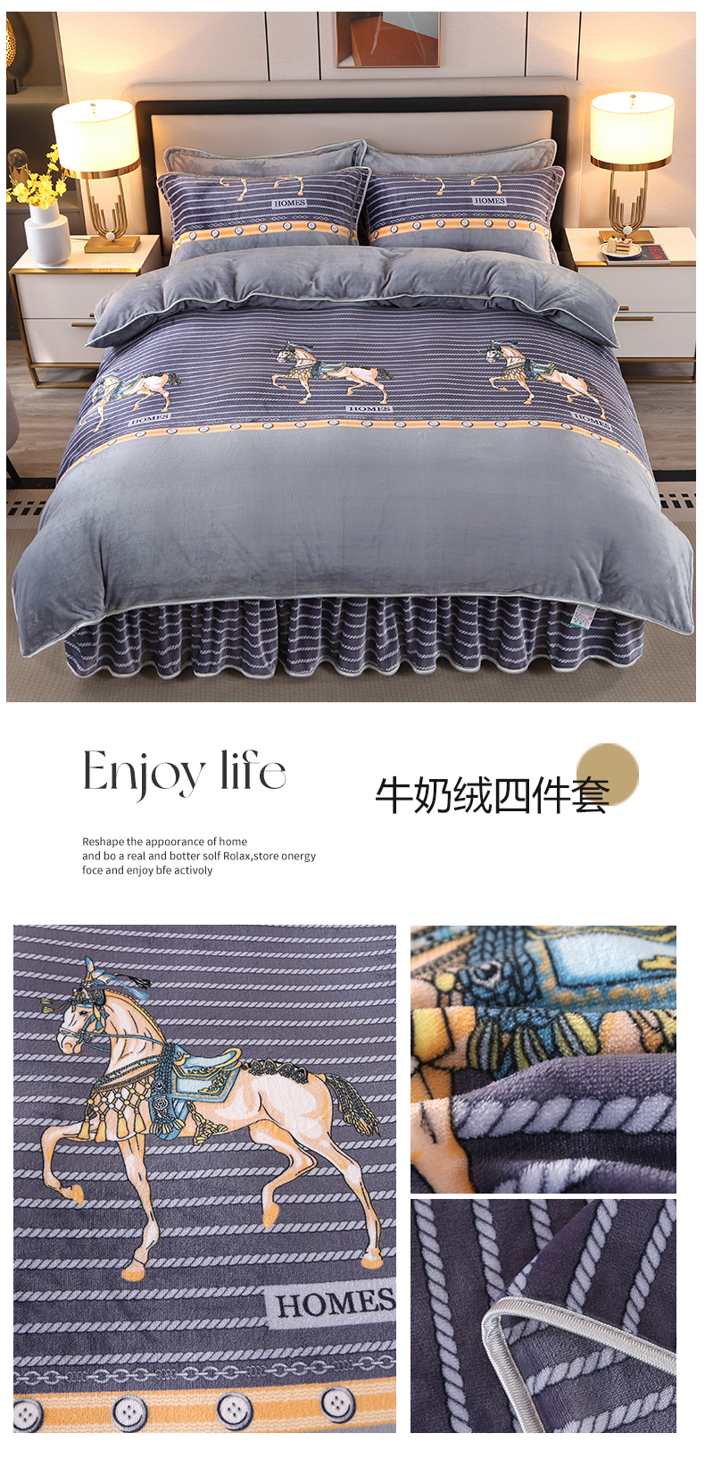 栩裕纺织 2025新款230高克重牛奶绒法莱绒印花四件套-直播热款8斤半 奶牛