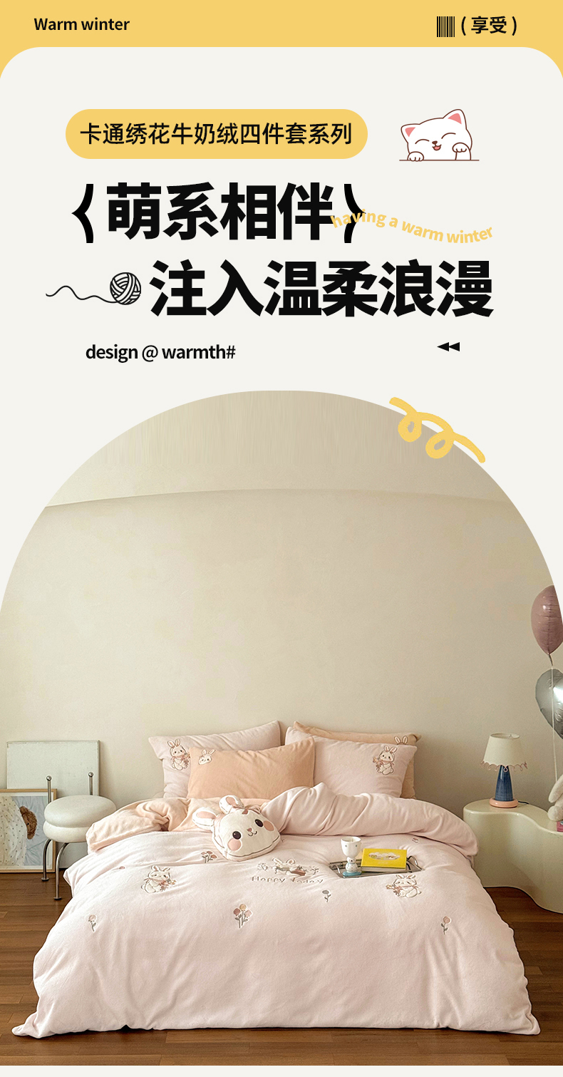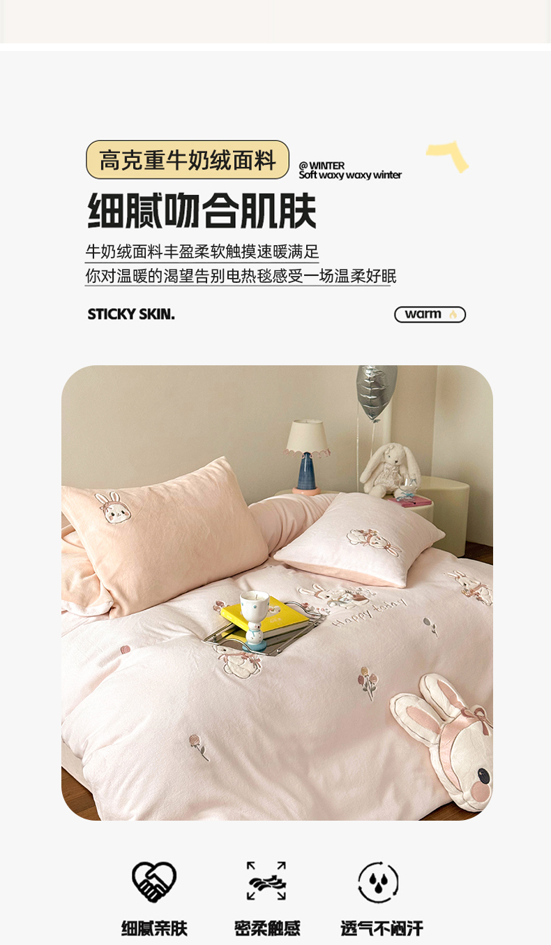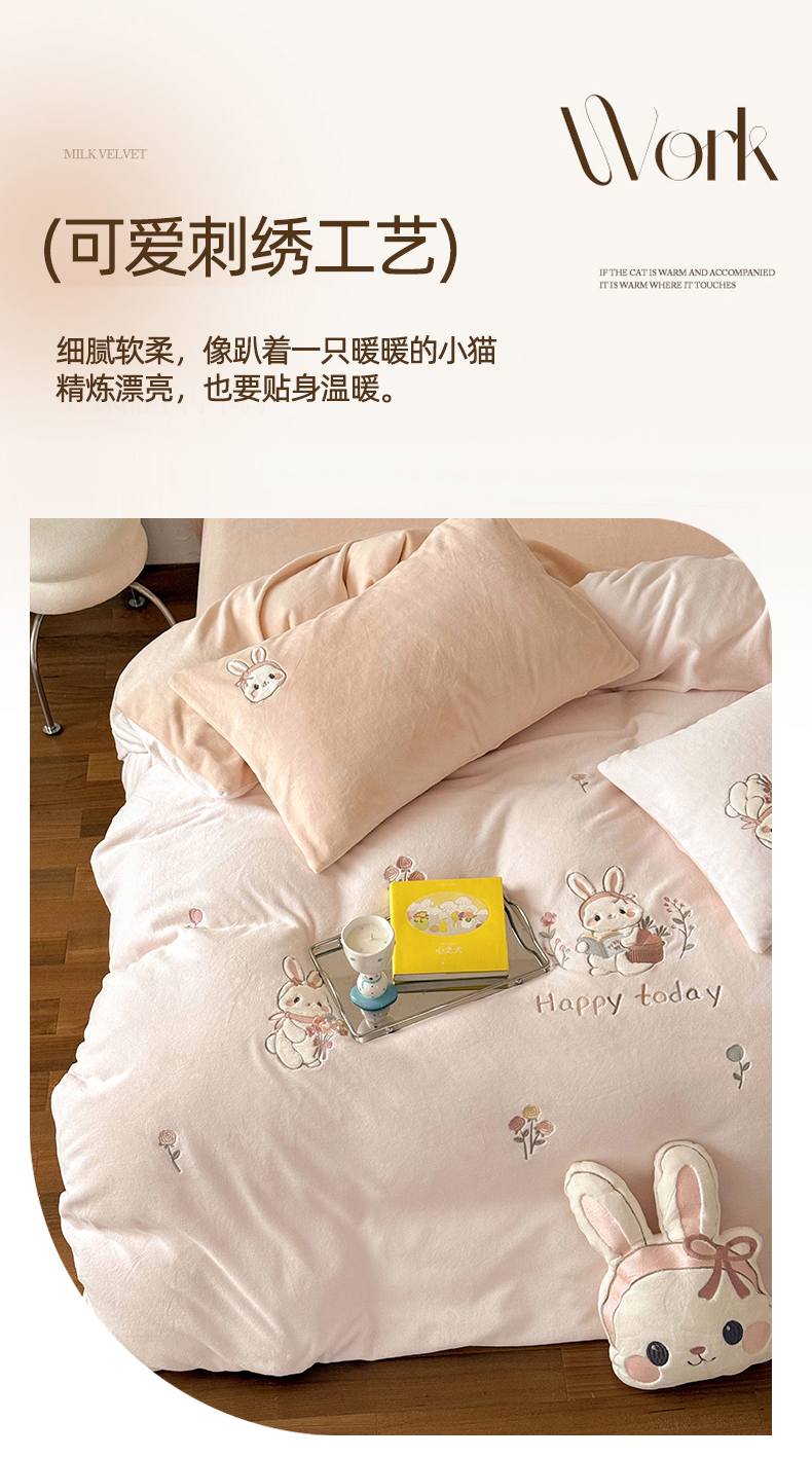 当前位置: 91家纺网 > 商品网购 > 床品套件 > 四件套 > 牛奶绒四件套 > FORTWO家纺原创设计(FOR TWO家纺) 2025新款230克牛奶绒绣花小清新四件套 小萌兔