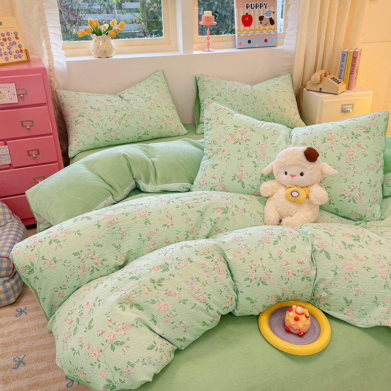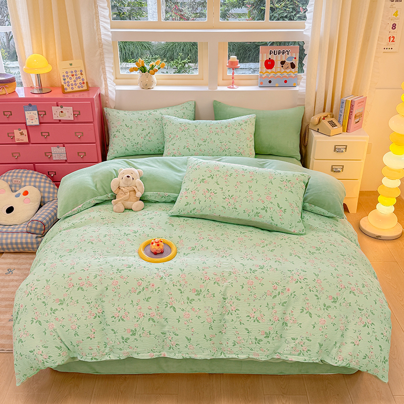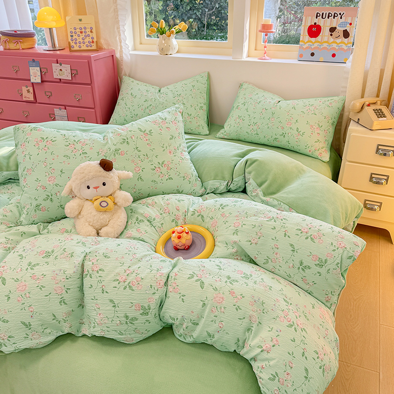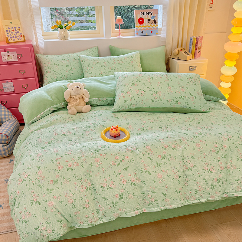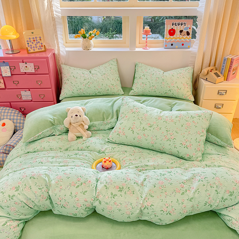 商品名称:壹号库家纺 2025新款皱皱纱舒暖绒四件套 木兮绿