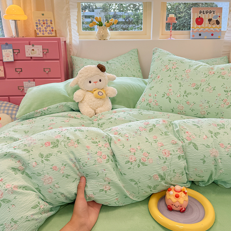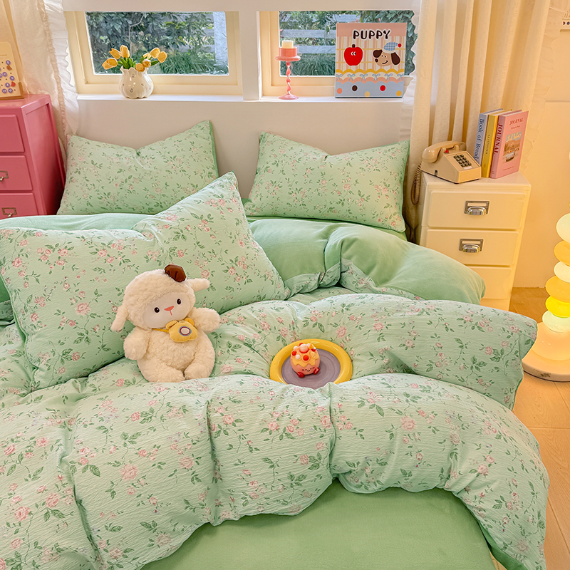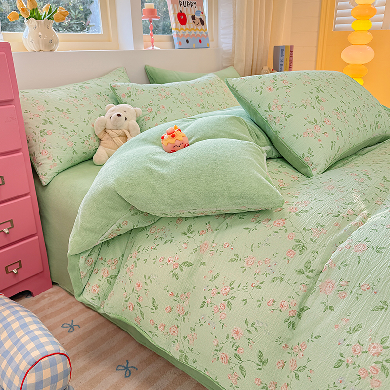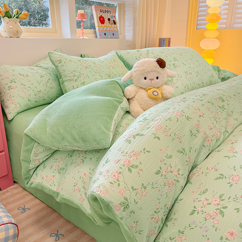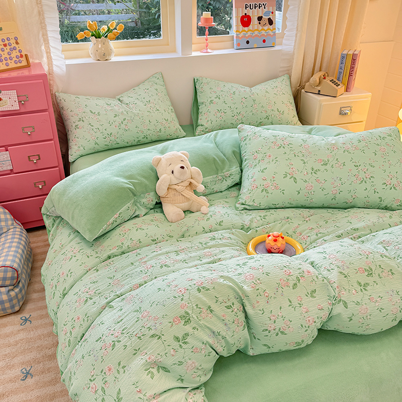 商品名称:壹号库家纺 2025新款皱皱纱舒暖绒四件套 木兮绿