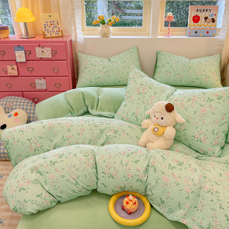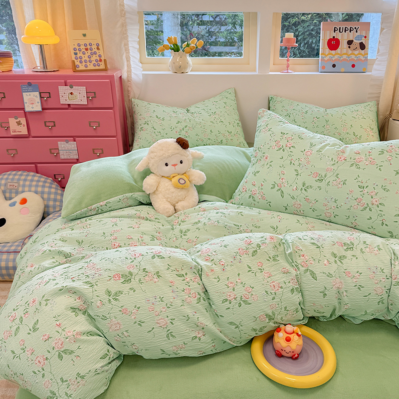 (总)壹号库家纺 2025新款水洗皱皱纱四件套-简单款,白茶,兔巴巴,十里桃花,彩虹糖,梦露,无印兰格,丽莎,蕾丝小兔,甜茶,幸福里,快乐小象,西高地,豆蔻,草莓方糖,kiki猫,百福(兰),豹富-兰,芝士奶酪,春风里,豹富-粉,木兮绿