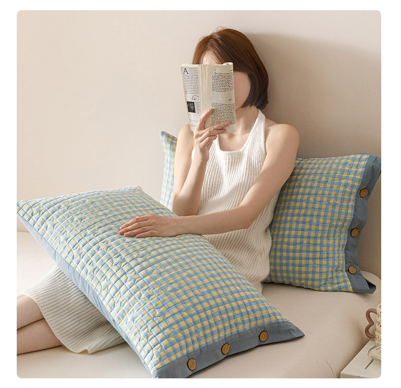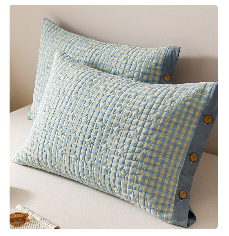 爱港家纺 2025新款全棉色织水洗加厚绗缝夹棉防头油双面枕头套单品枕套单件枕套 格温特蓝
