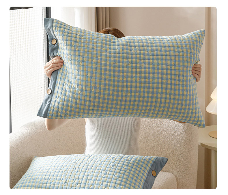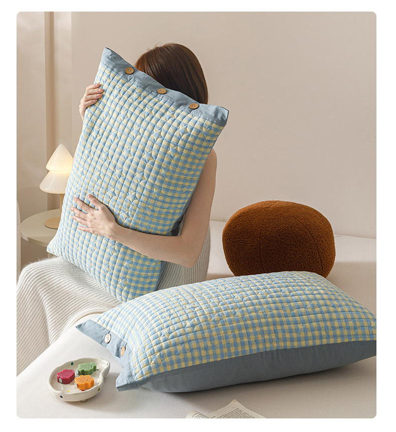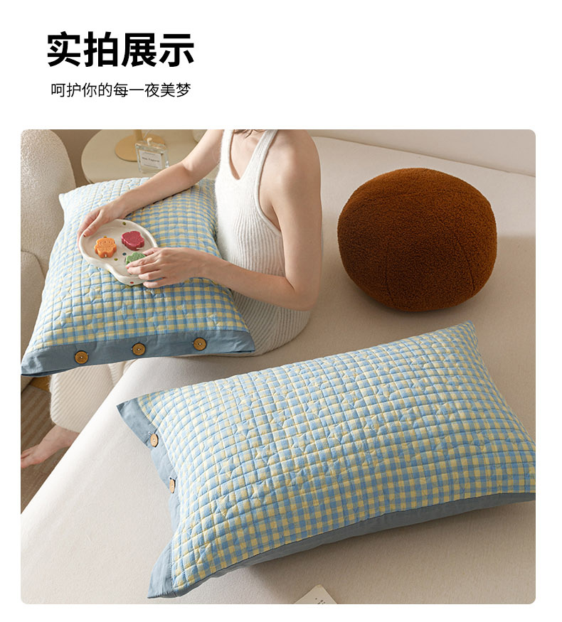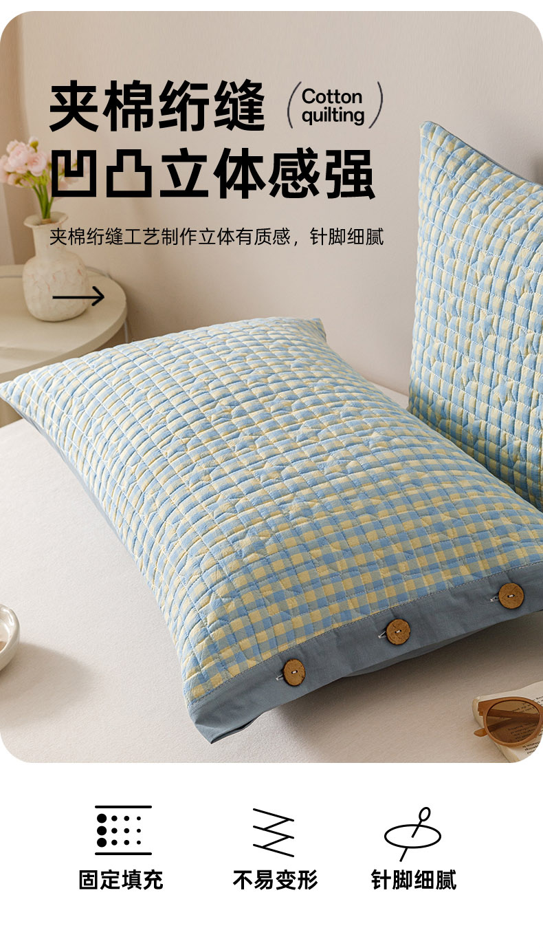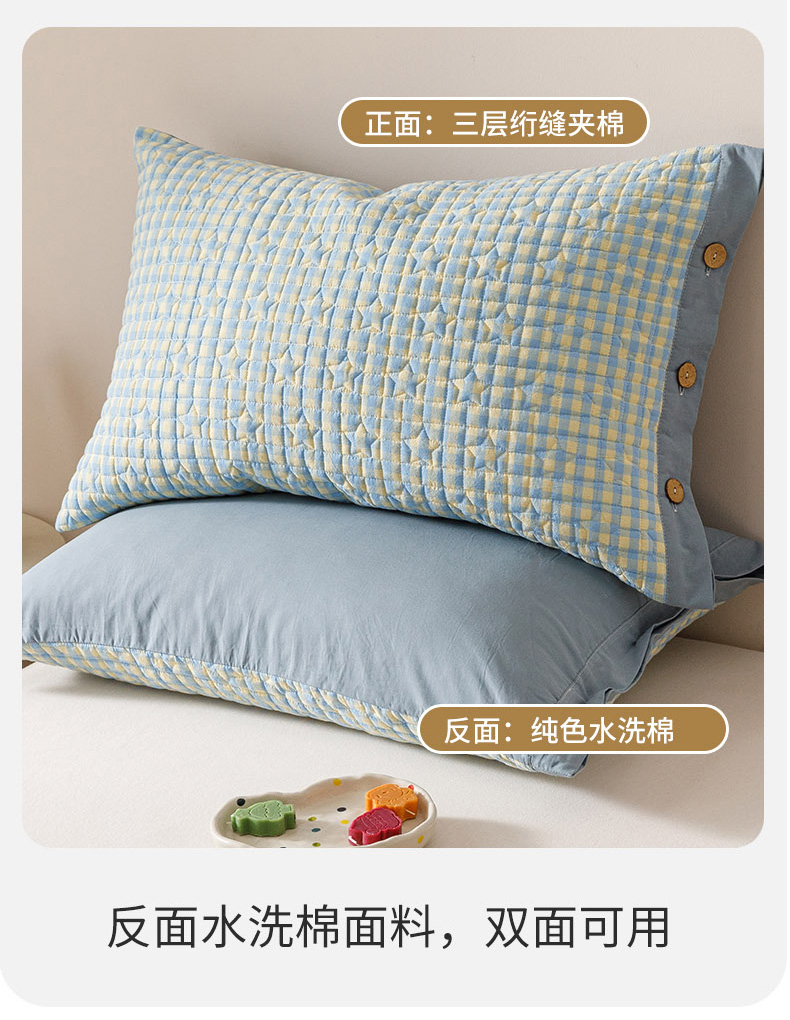 商品名称:爱港家纺 2025新款全棉色织水洗加厚绗缝夹棉防头油双面枕头套单品枕套单件枕套 格温特蓝
