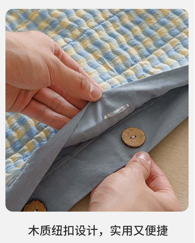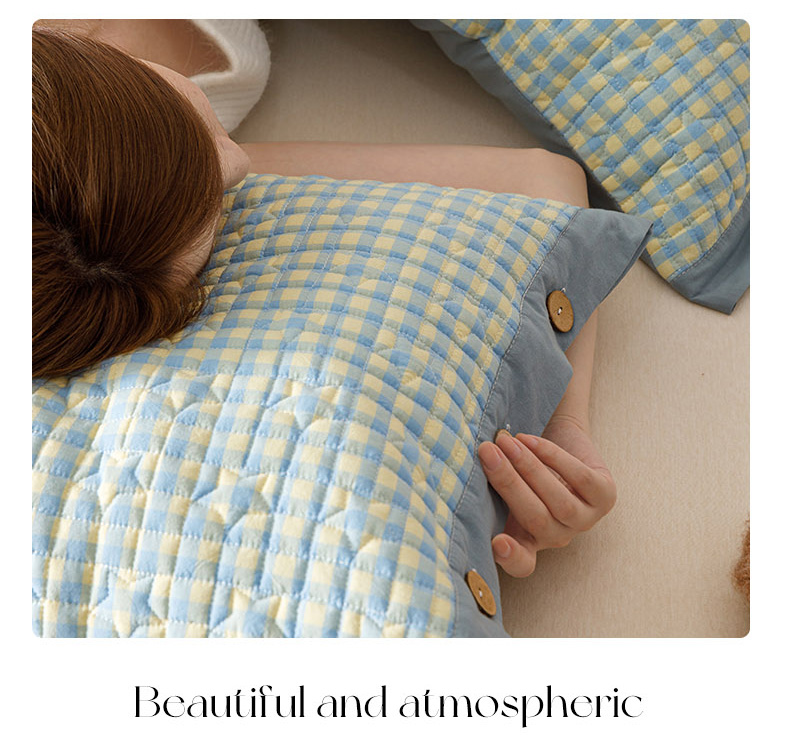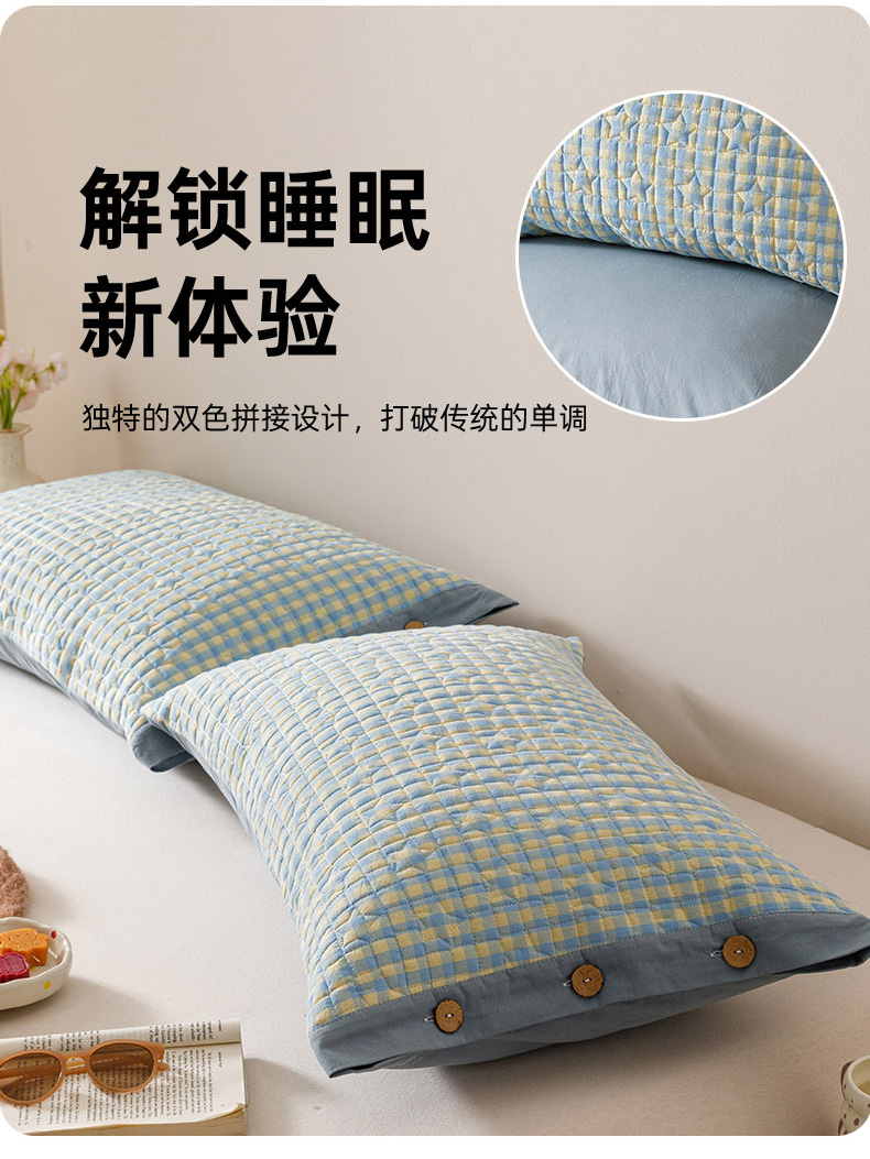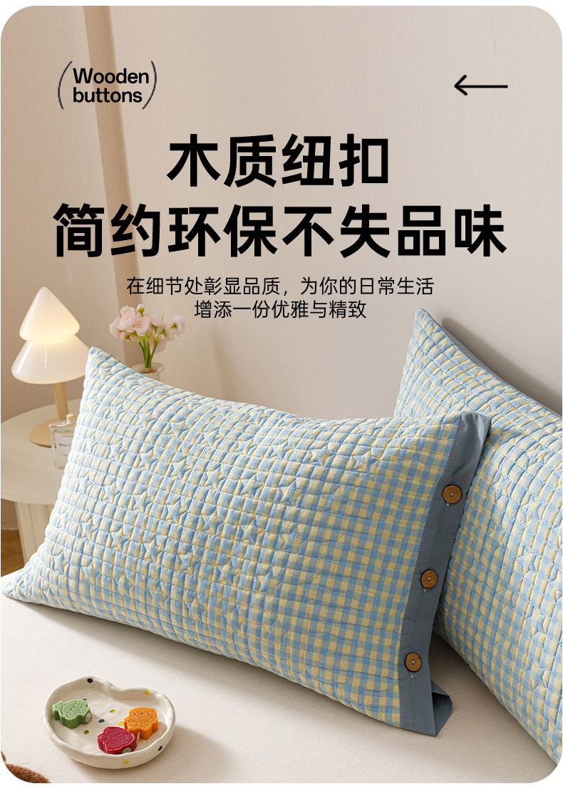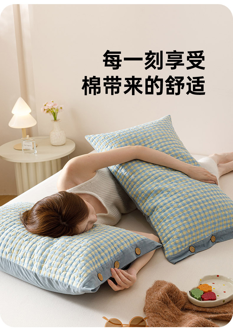 商品名称:爱港家纺 2025新款全棉色织水洗加厚绗缝夹棉防头油双面枕头套单品枕套单件枕套 格温特蓝