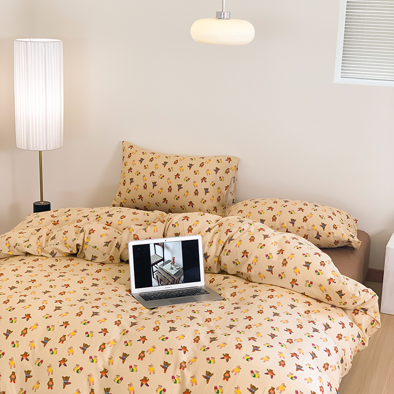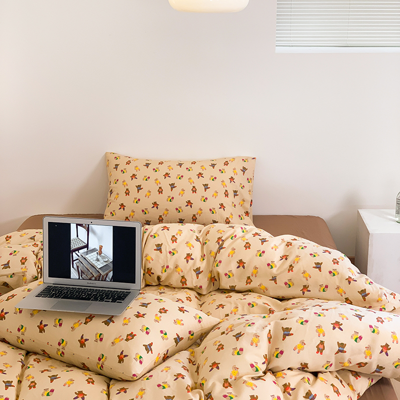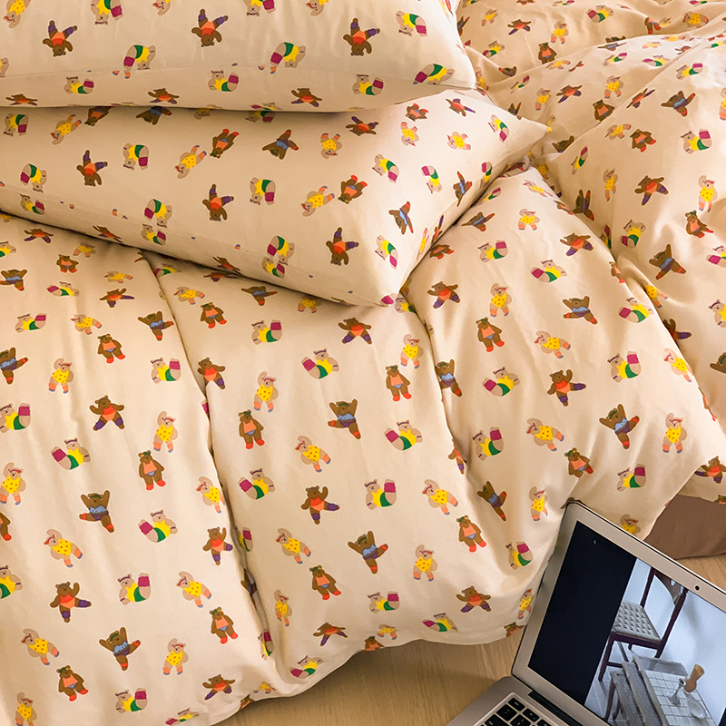 (总)源启生活 2024新款全棉双层纱四件套-熊啾啾