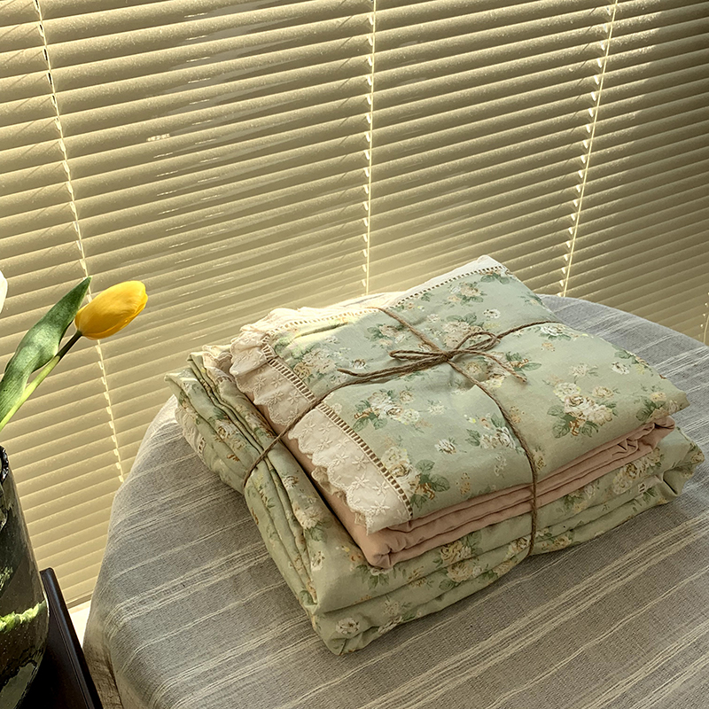 (总)源启 2022新款韩系小清新花边款双层纱四件套,花开,流年,日和,若雨,闲云