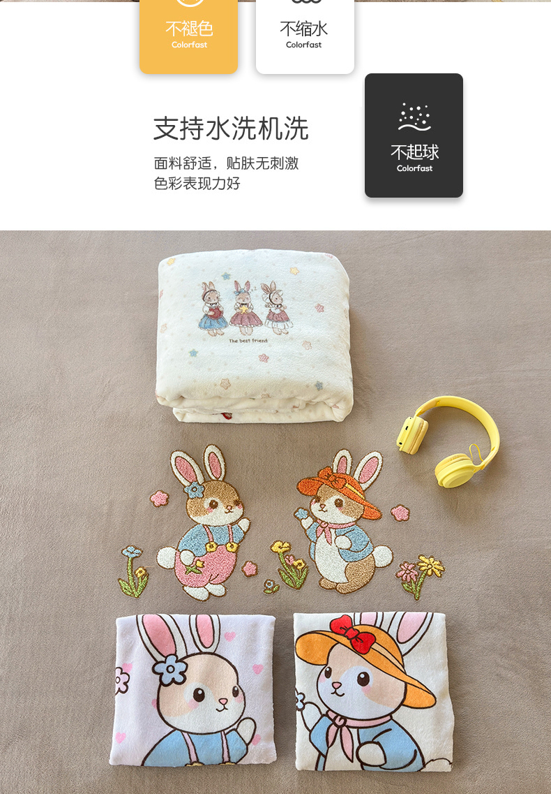 商品名称:乐童家纺 2025新款小清新牛奶绒毛巾绣四件套-第三波 花园小兔咖