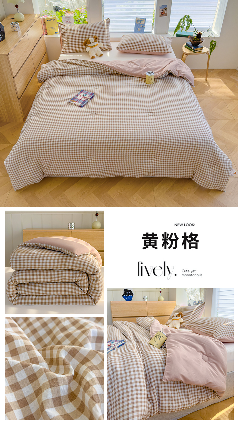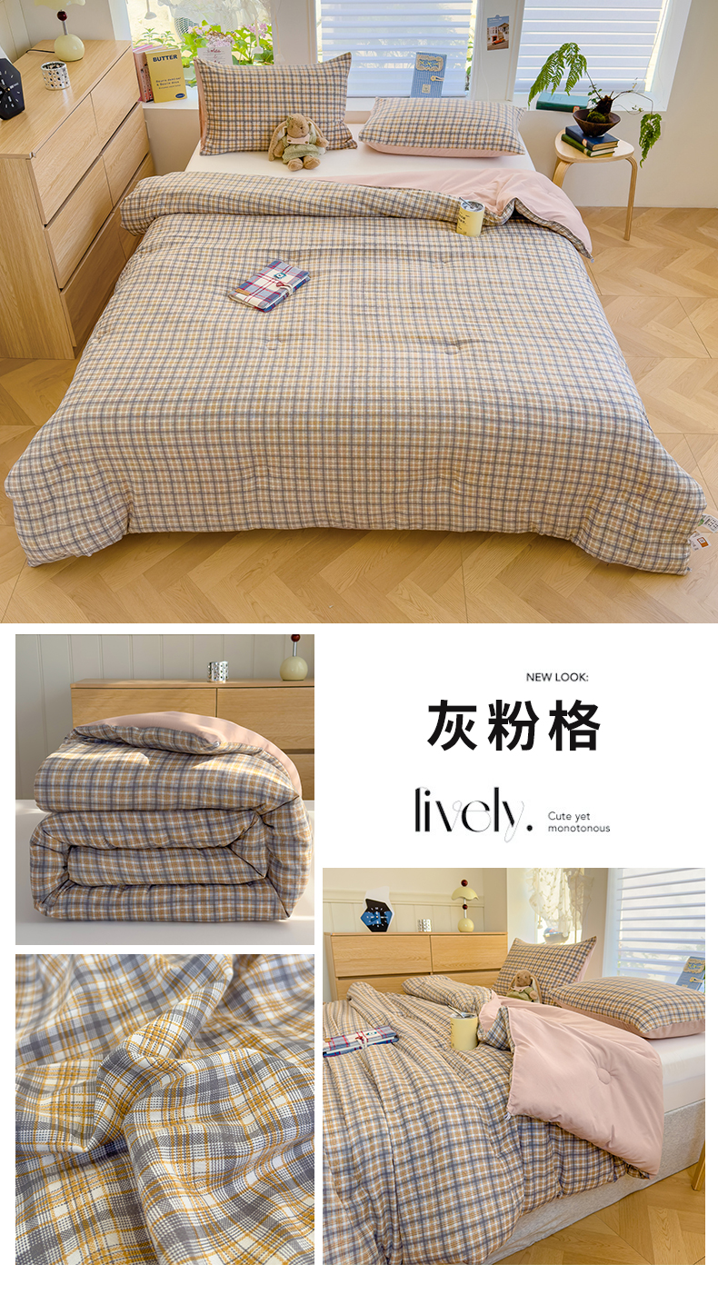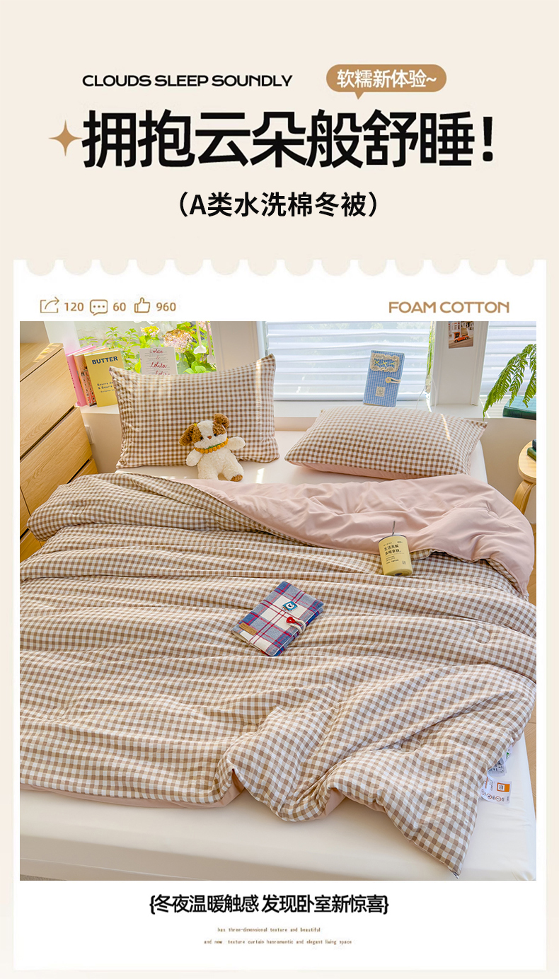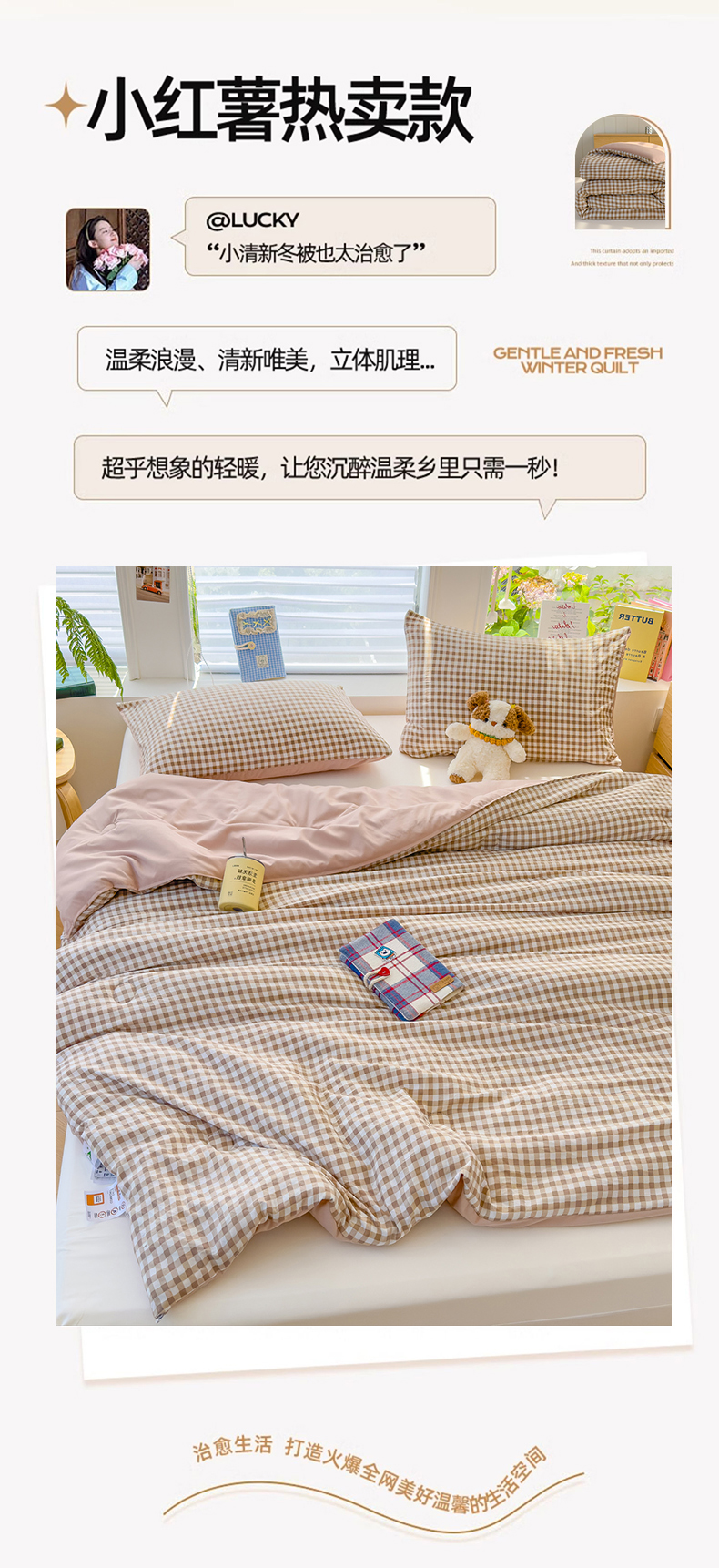 (总)桔禾家纺 2025新款无印风水洗棉云朵棉格子春秋被冬被被子被芯