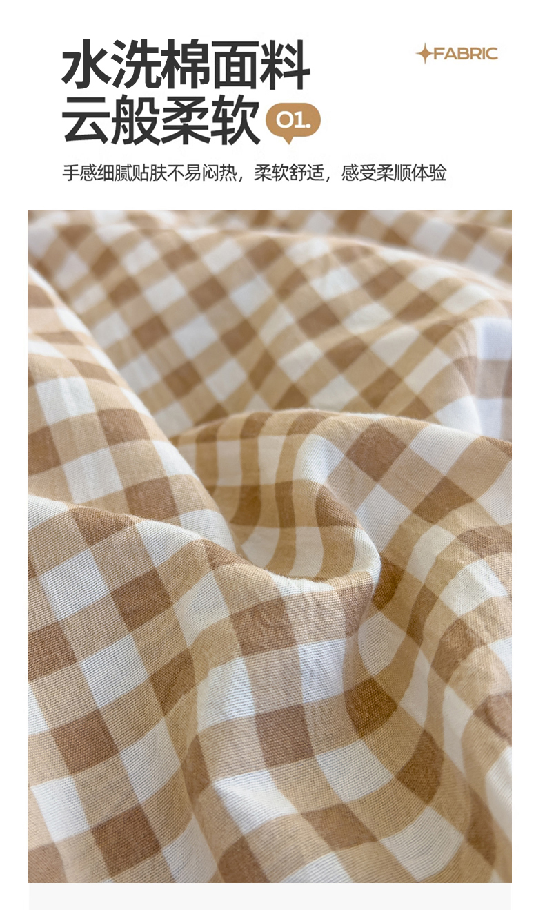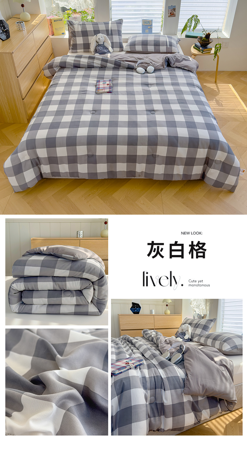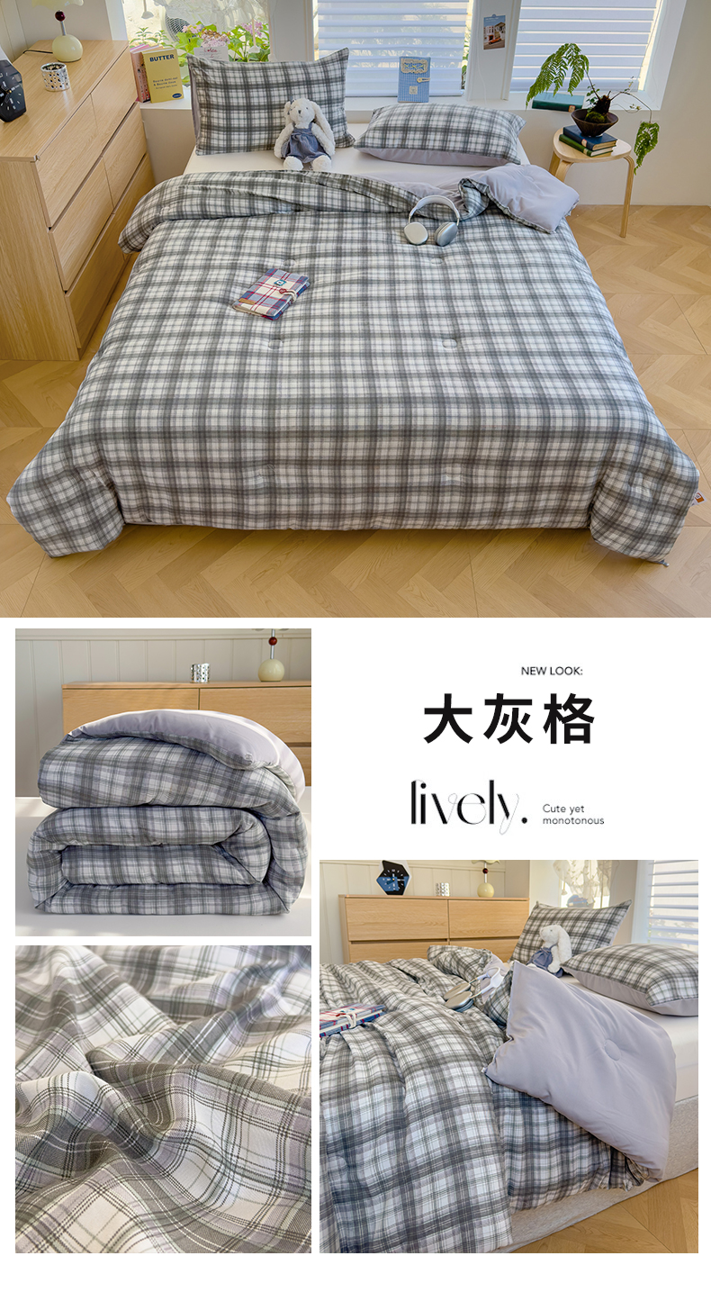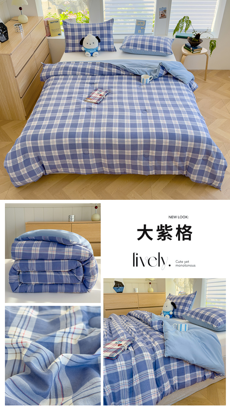 (总)桔禾家纺 2025新款无印风水洗棉云朵棉格子春秋被冬被被子被芯