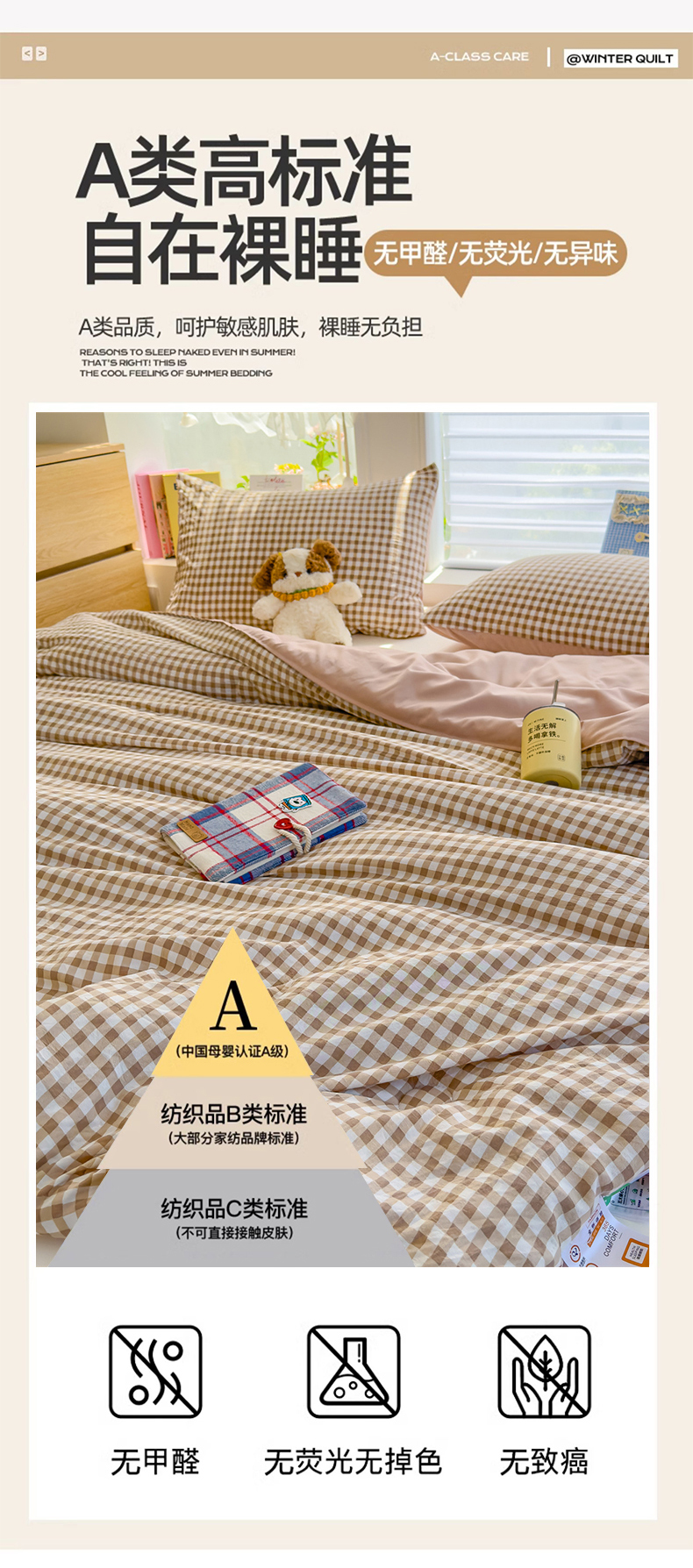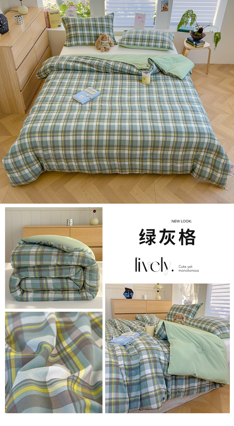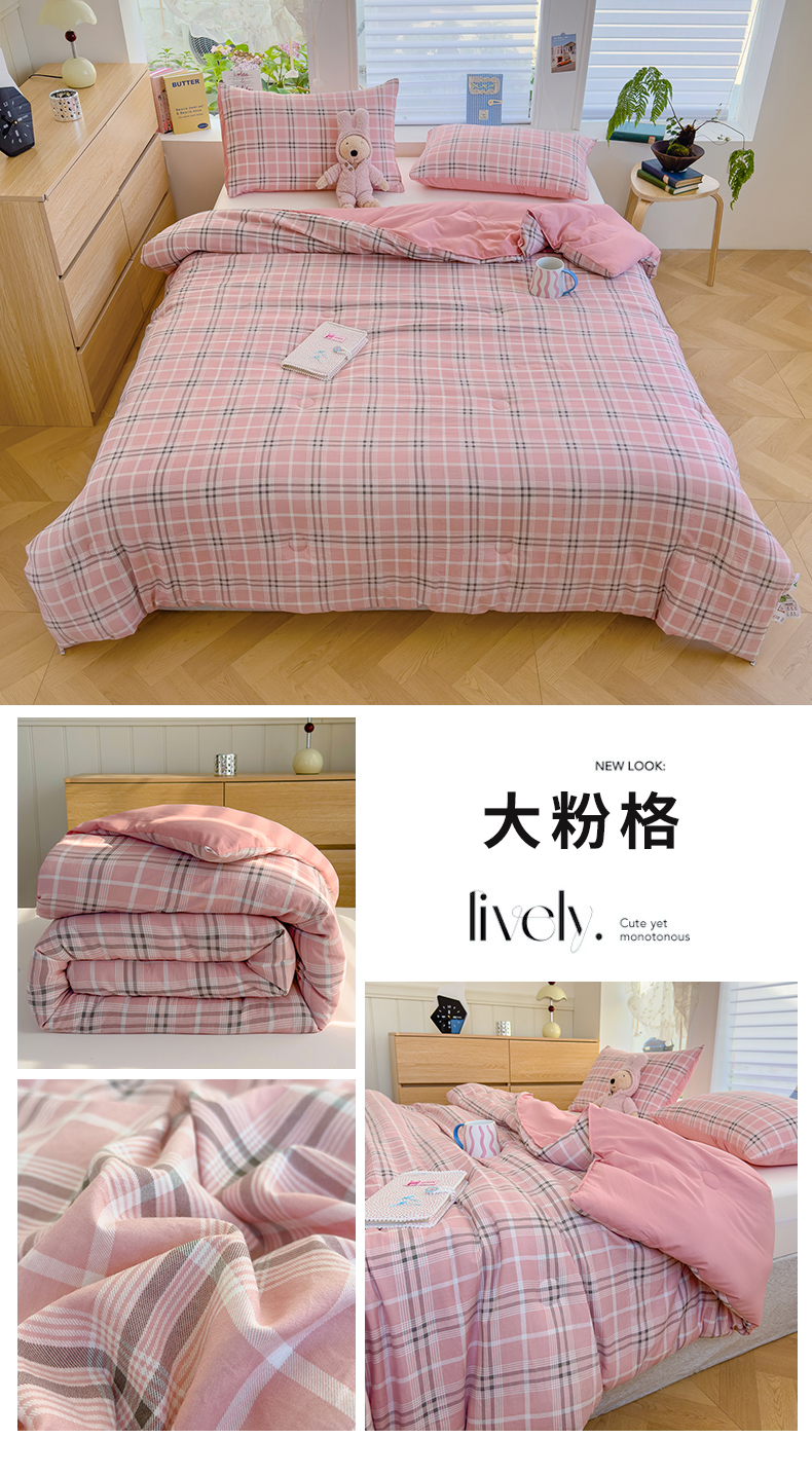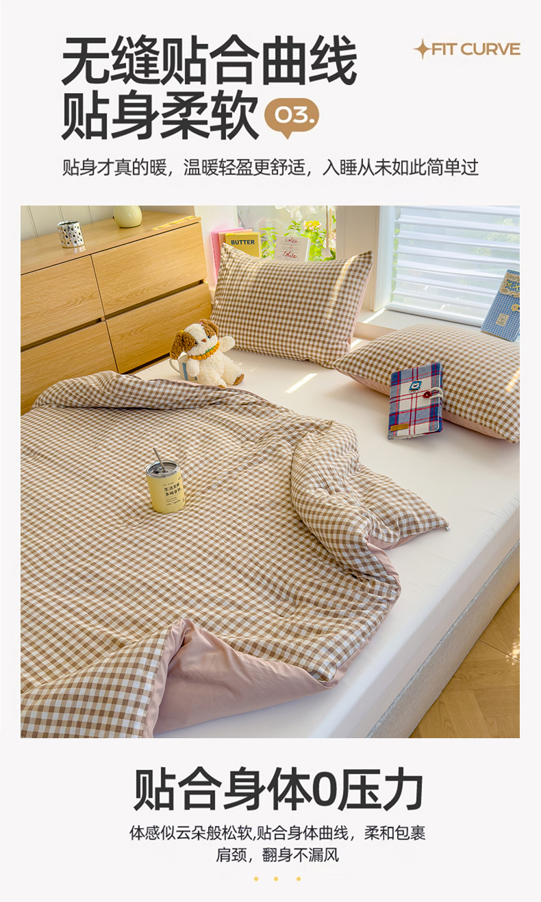 (总)桔禾家纺 2025新款无印风水洗棉云朵棉格子春秋被冬被被子被芯