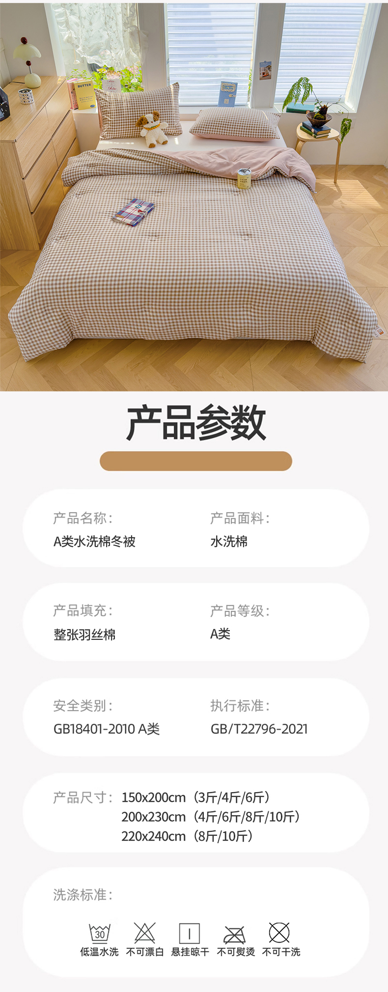 商品名称:(总)桔禾家纺 2025新款无印风水洗棉云朵棉格子春秋被冬被被子被芯