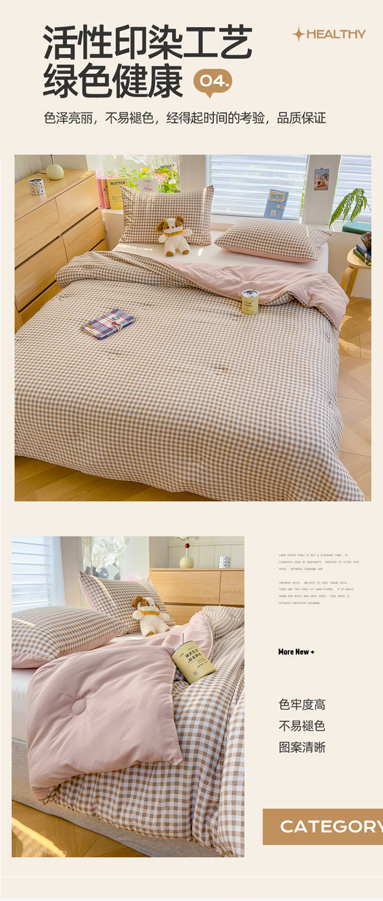 (总)桔禾家纺 2025新款无印风四件套床单床笠被套被罩纯色水洗棉学生宿舍床上三件套四件套,大粉格,大灰格,大蓝格,大紫格,黄粉格,黄蓝格,灰白格,灰粉格,绿灰格,小蓝格,小绿格