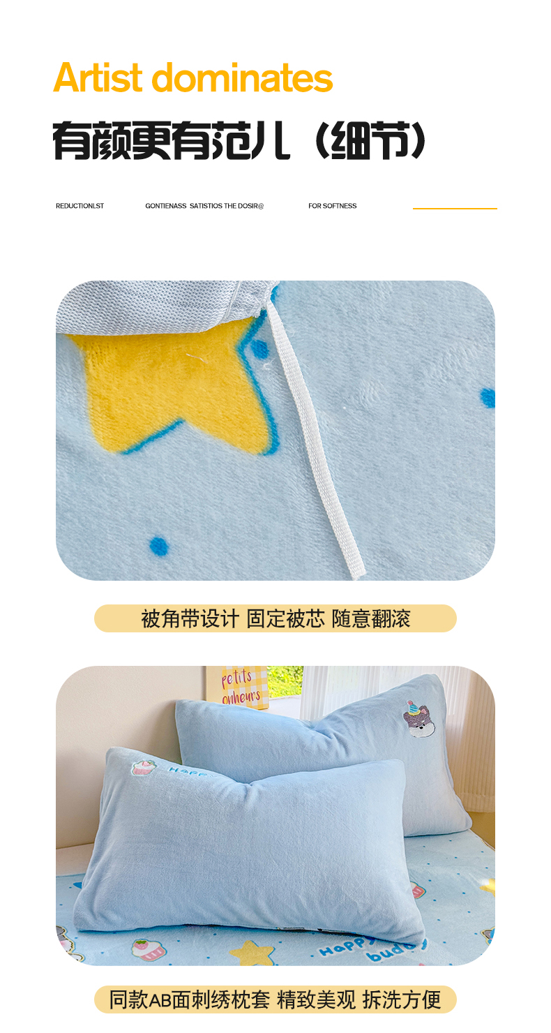 商品名称:润肤居 2025新款卡通贴布绣牛奶绒系列四件套 小灰灰