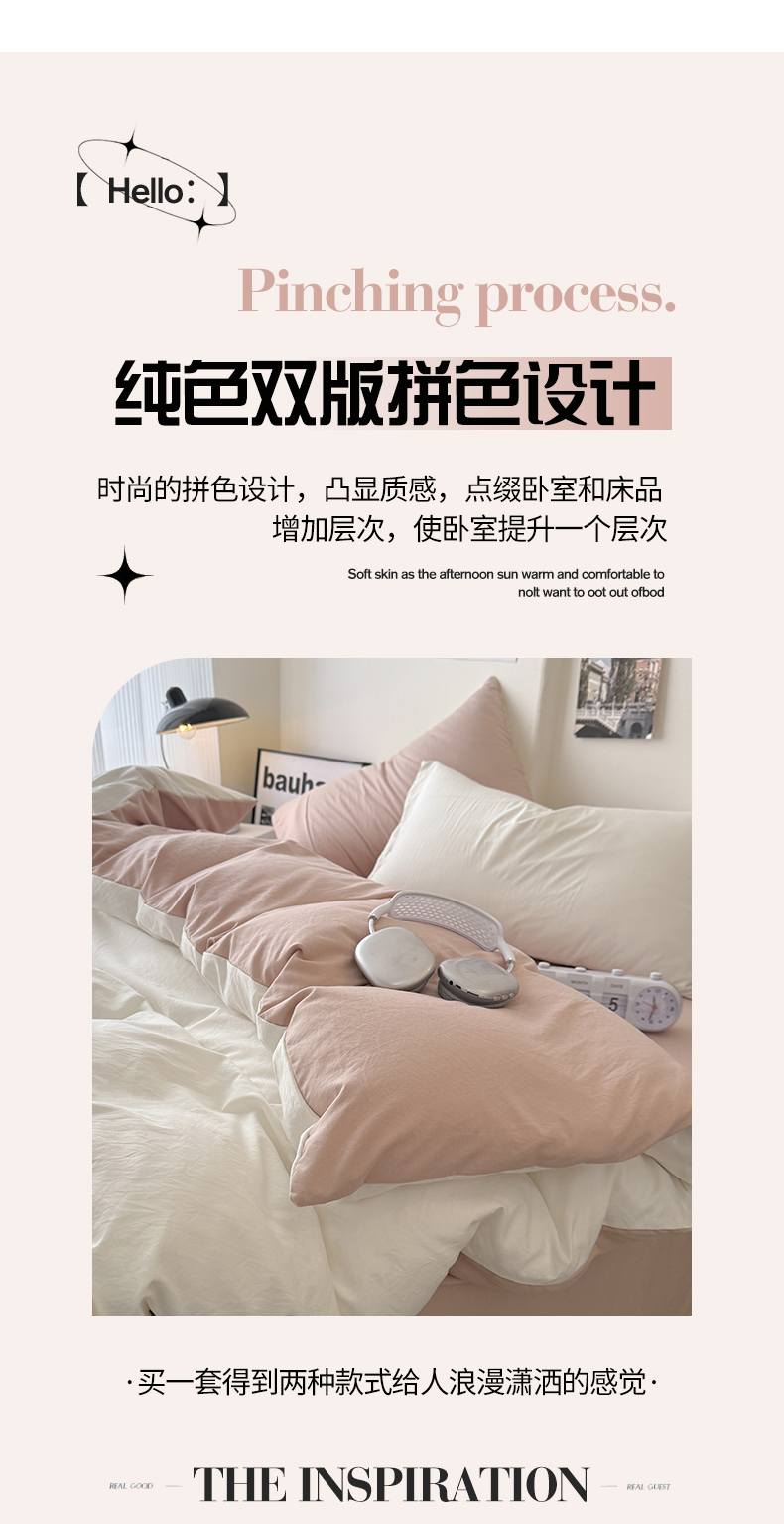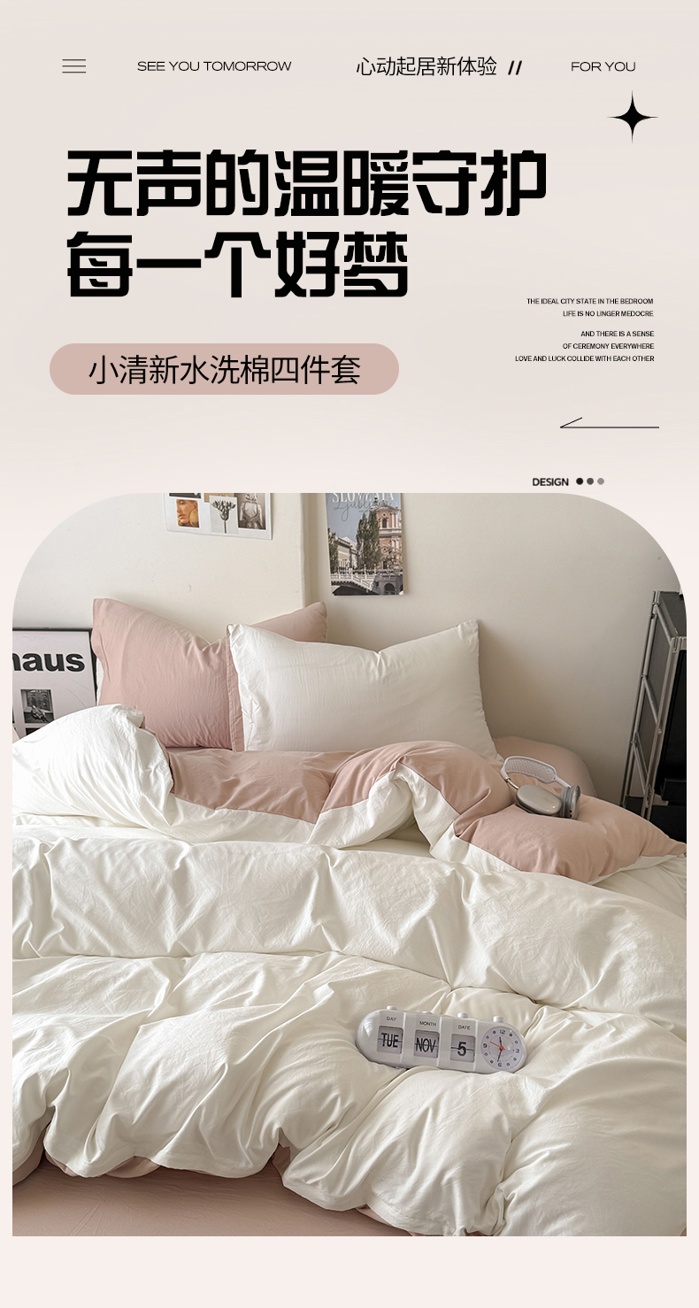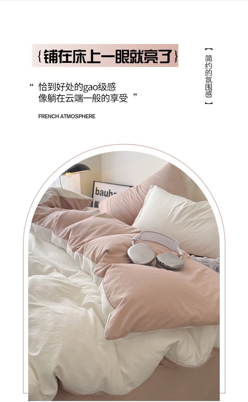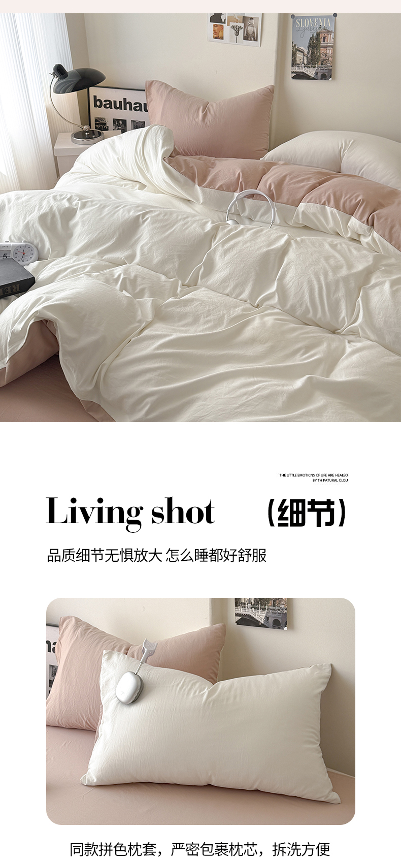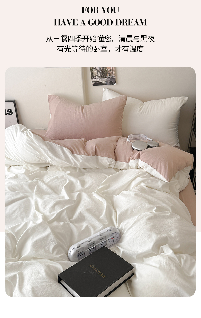 当前位置: 91家纺网 > 商品网购 > 床品套件 > 四件套 > 其它四件套 > 桔禾家纺 2025新款ins风纯色水洗棉四件套双拼水洗棉学生三件套四件套 月白藕粉