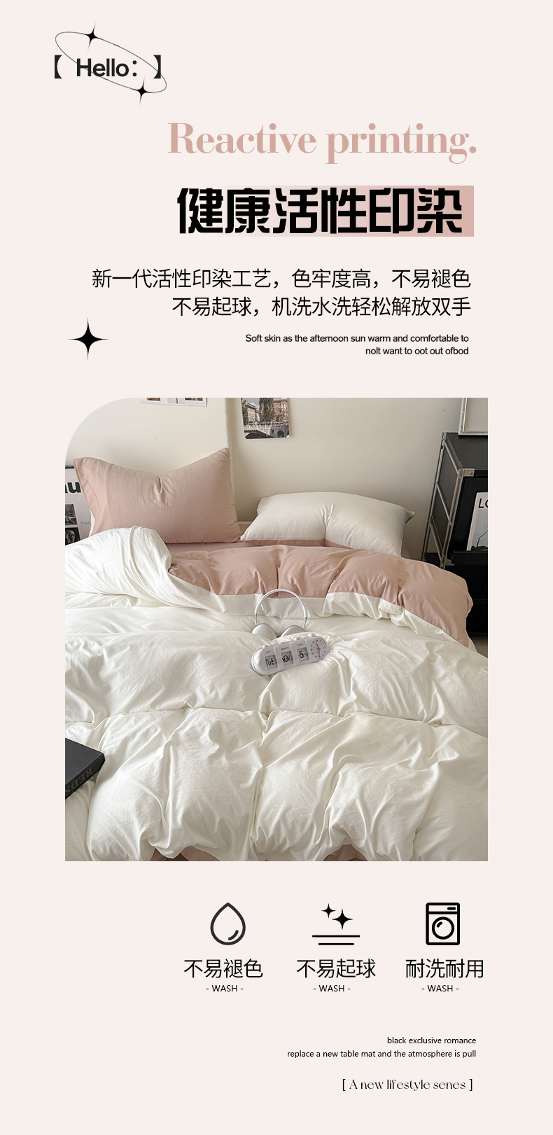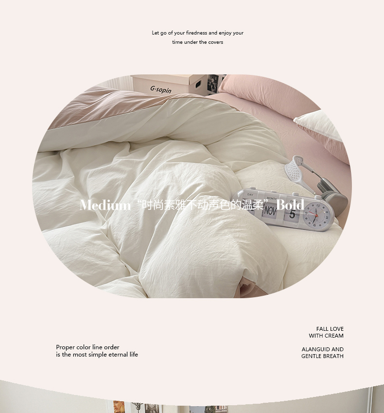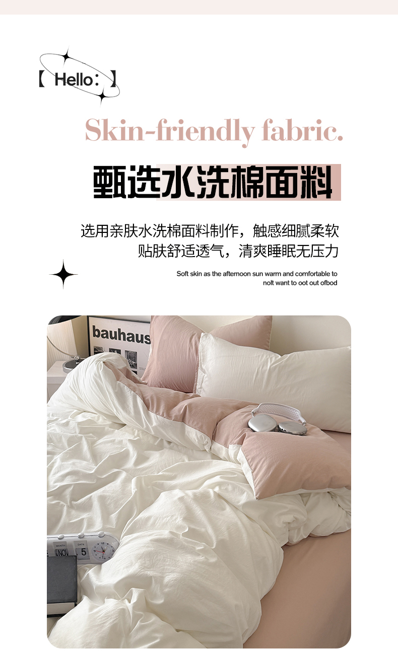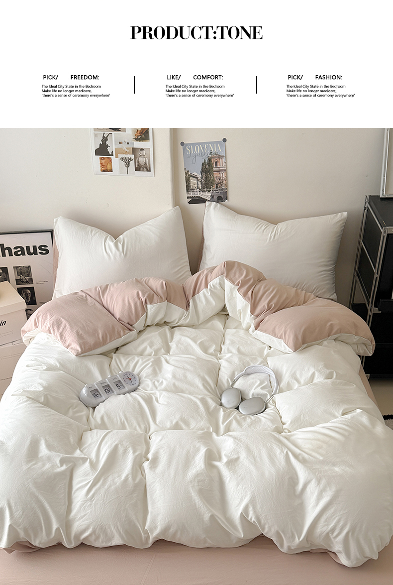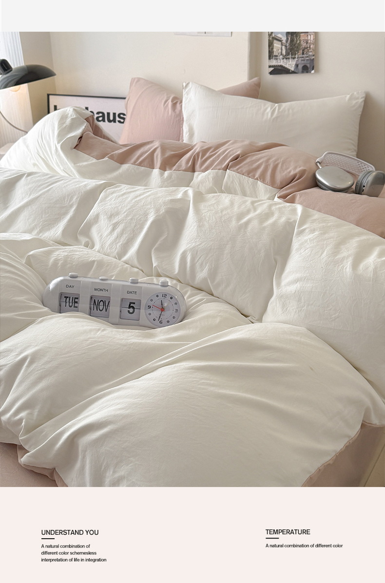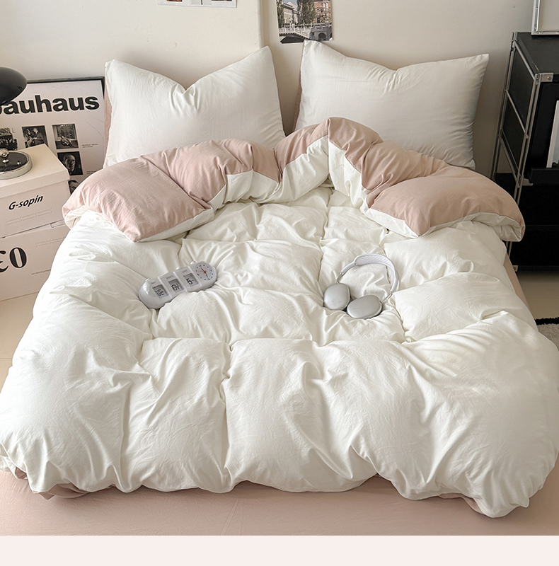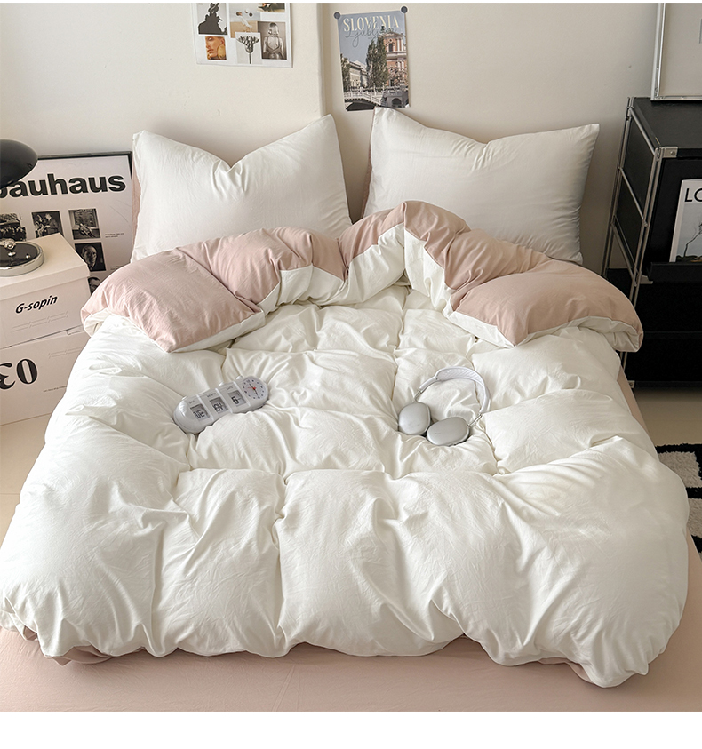当前位置: 91家纺网 > 商品网购 > 床品套件 > 四件套 > 其它四件套 > 桔禾家纺 2025新款ins风纯色水洗棉四件套双拼水洗棉学生三件套四件套 月白藕粉