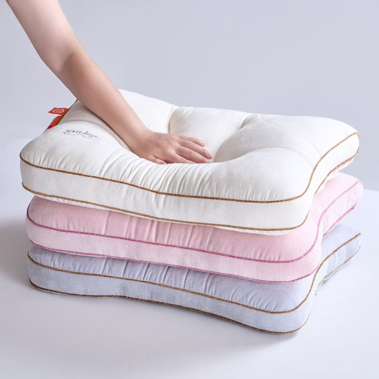 (总)剑桥枕业 2026新款步步高升学生护颈枕芯 成人颈椎助眠枕头,粉色,灰色,蓝色