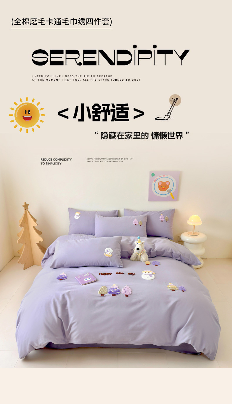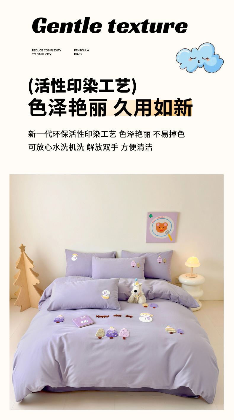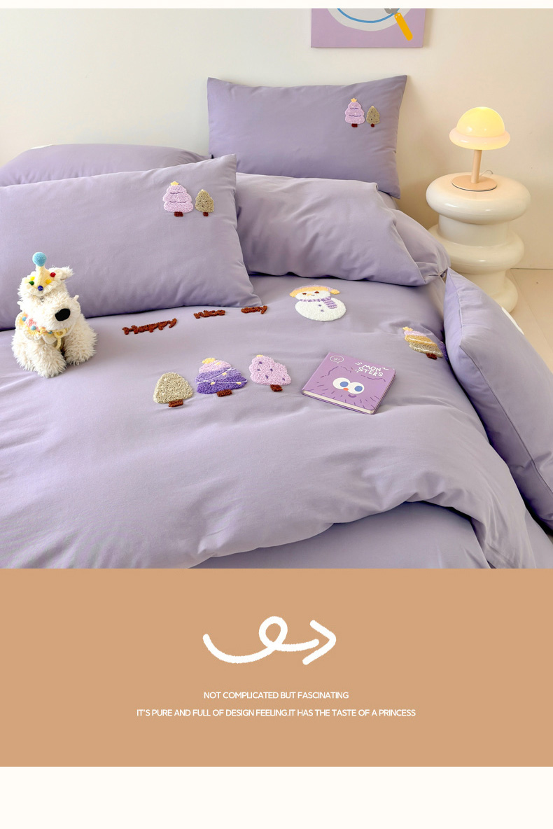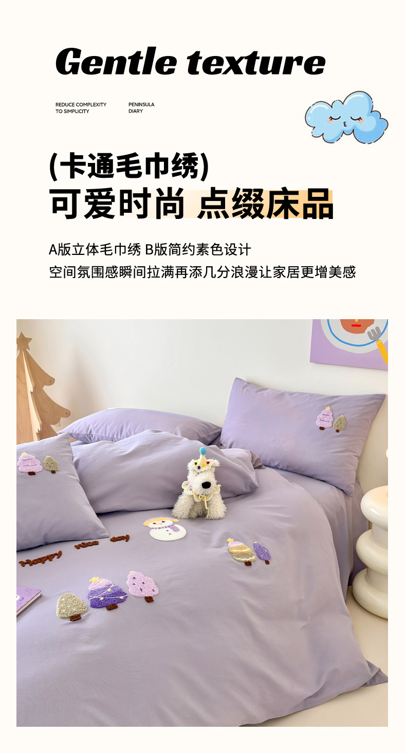 当前位置: 91家纺网 > 商品网购 > 床品套件 > 四件套 > 全棉普通四件套 > 如意朵 2025新款全棉加厚磨毛绣花四件套风格一(专版花型) 梦幻森林紫