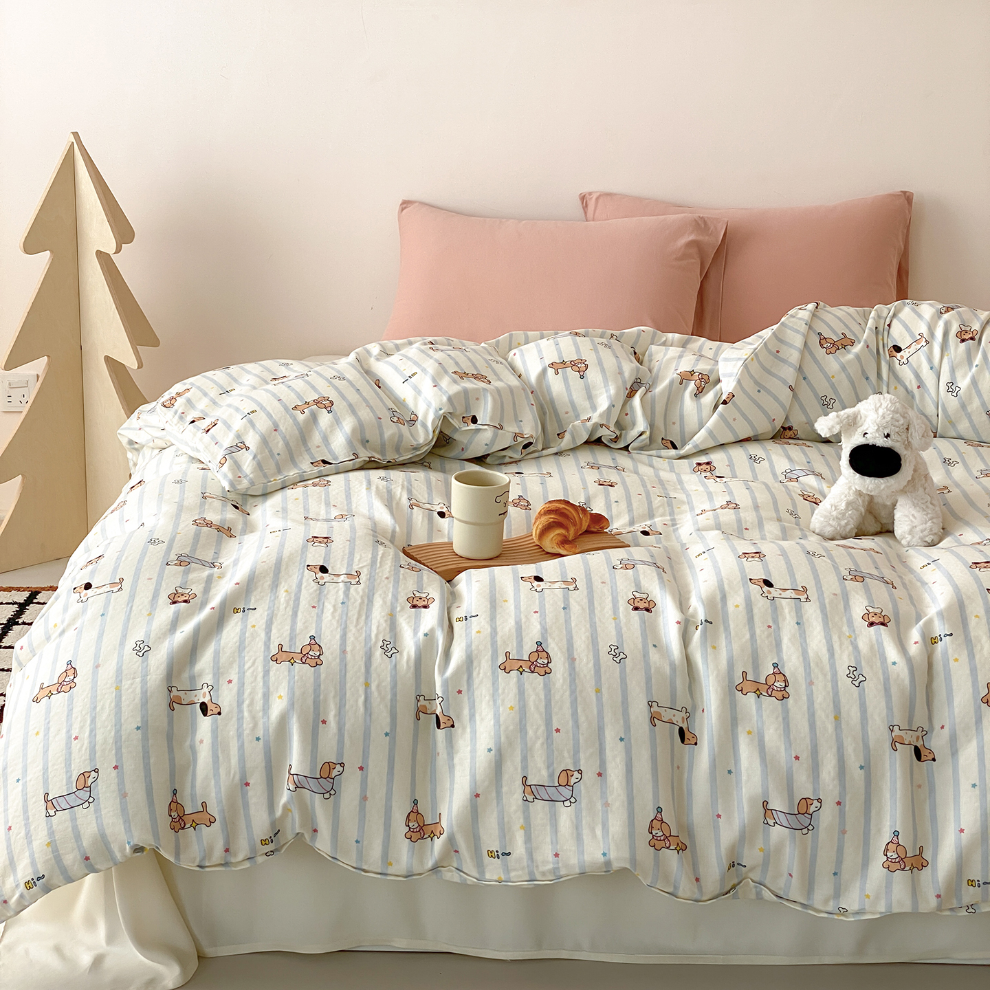 (总)8小时家纺 2025新款40s天然肌理双层纱四件套,斑点象,摇篮曲,泡泡布丁,星星人,快乐小狗,腊肠狗,小新