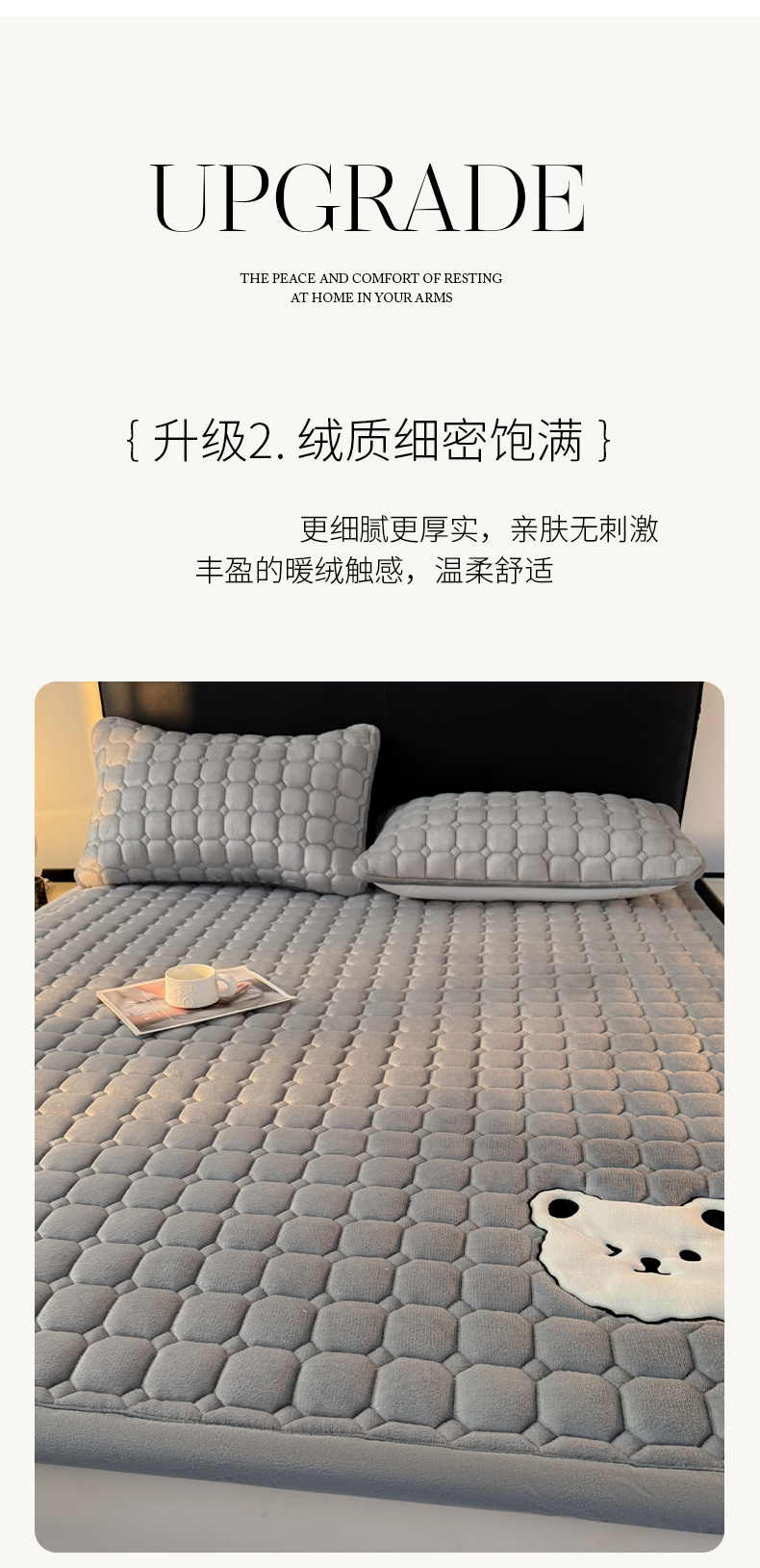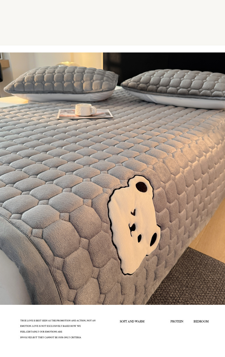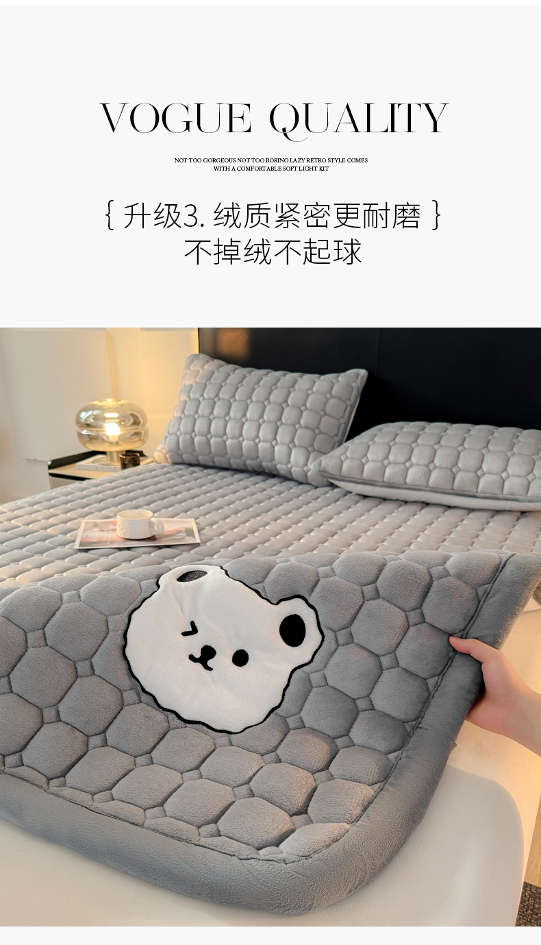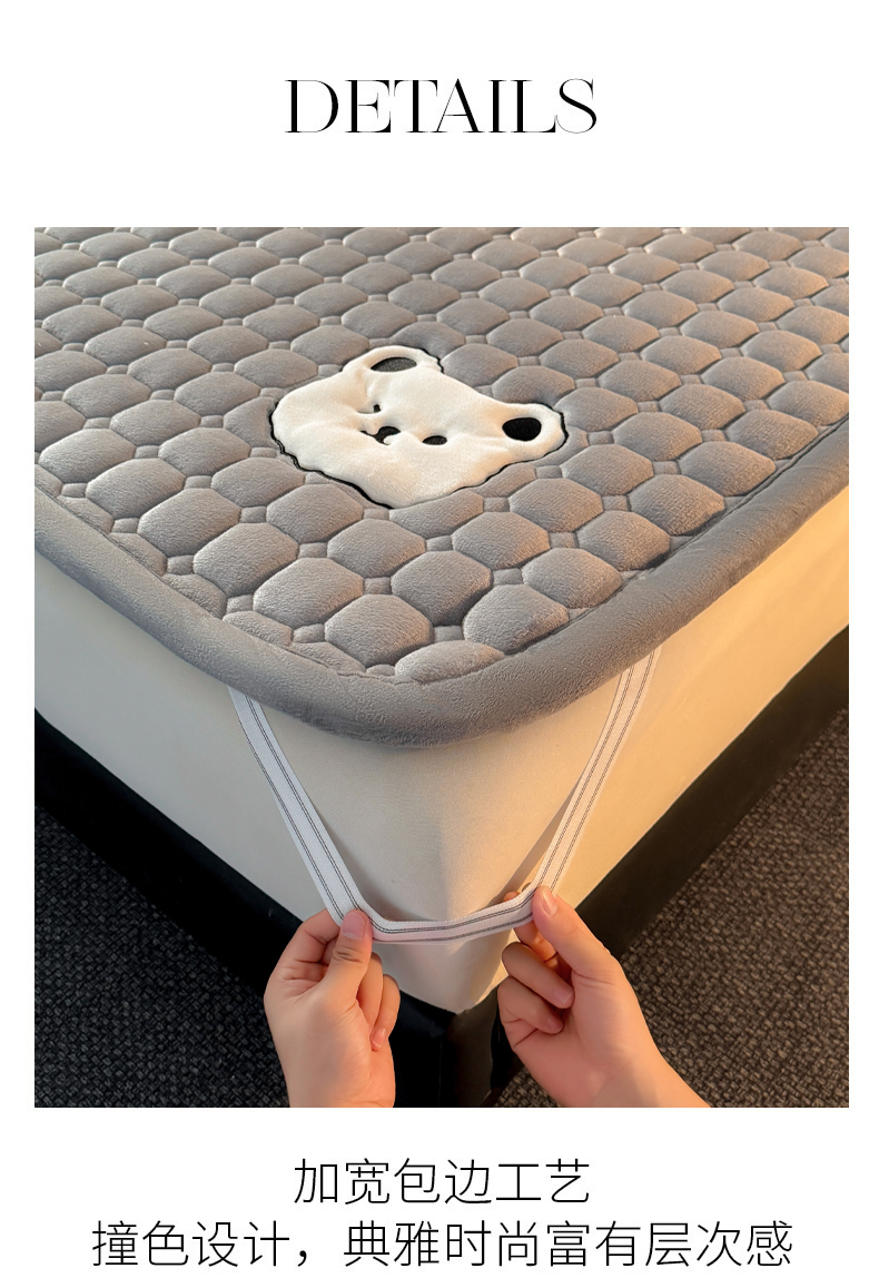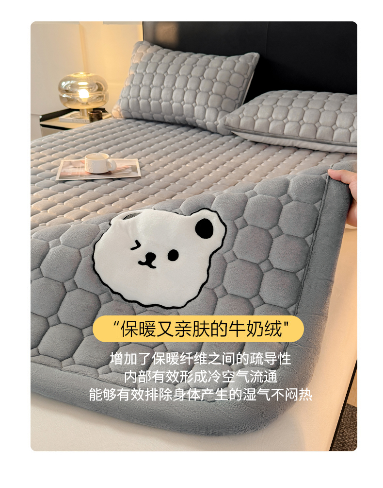 • 91家纺网 家纺一手货源 找家纺 予梦家纺 2025新款牛奶绒加厚刺绣床护垫床垫保护套 辛德拉-小白熊灰
