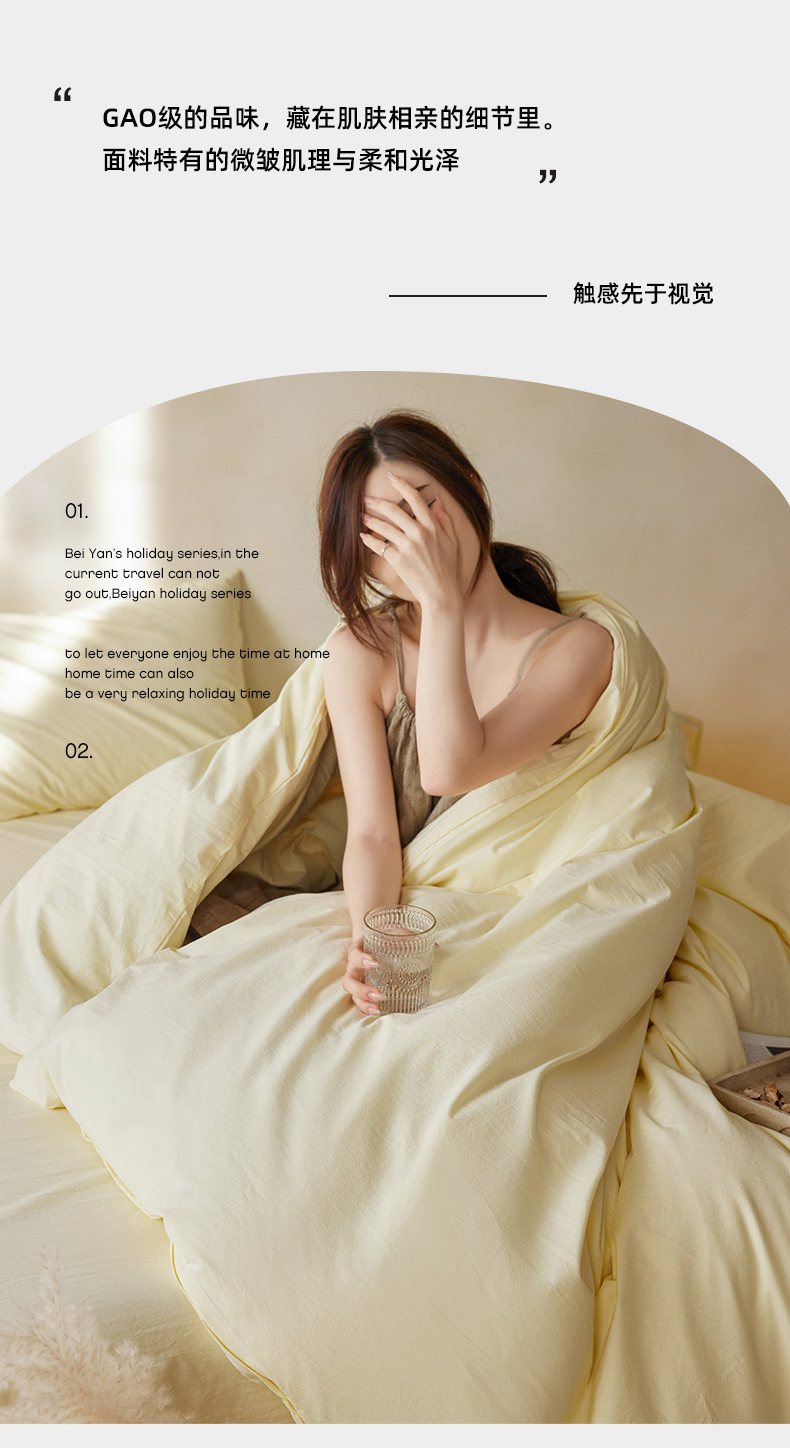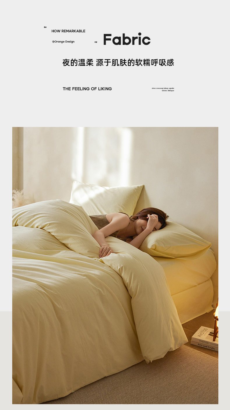 (总)轩和家居 2025新款全棉高支旧感砂洗长绒棉四件套,薄樱粉,淡黄色,暮烟灰,墨染灰,落栗棕,霁兰色,豆沙色,浅云白,青绿色,秋麦色,松石绿,天空蓝,雾海蓝,细雨灰
