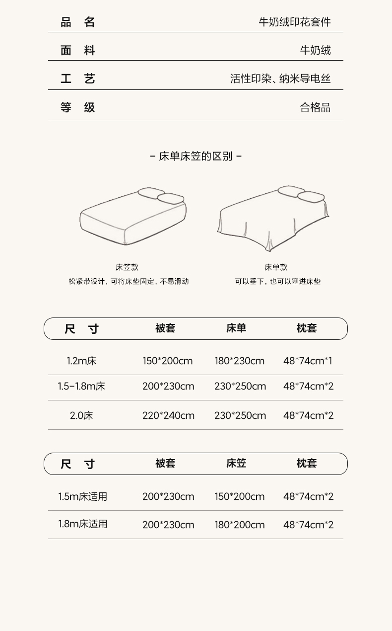 【床笠款】1.5四件套-被套200x230 | ¥105.00 |