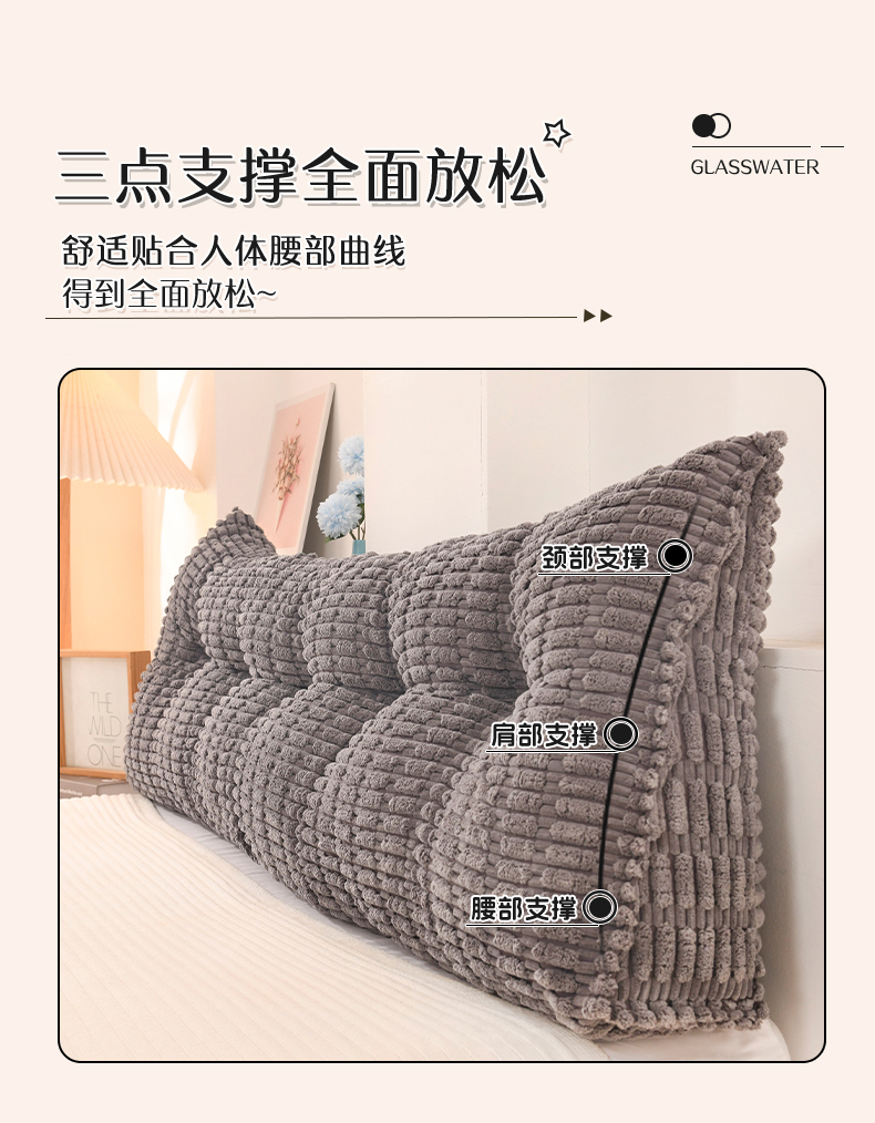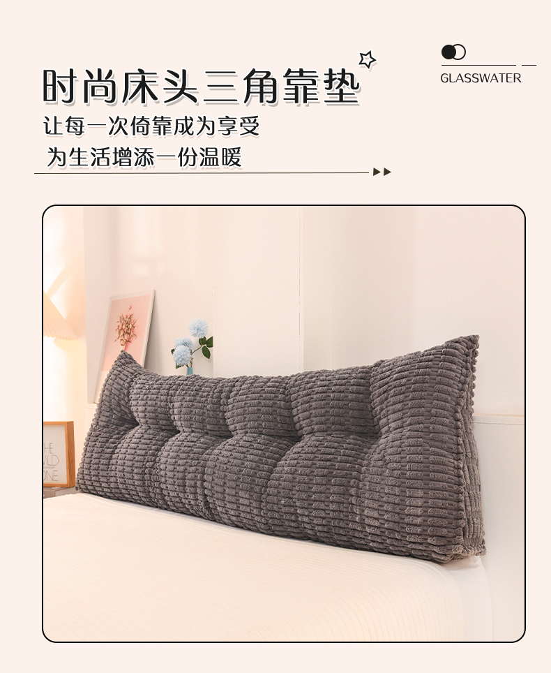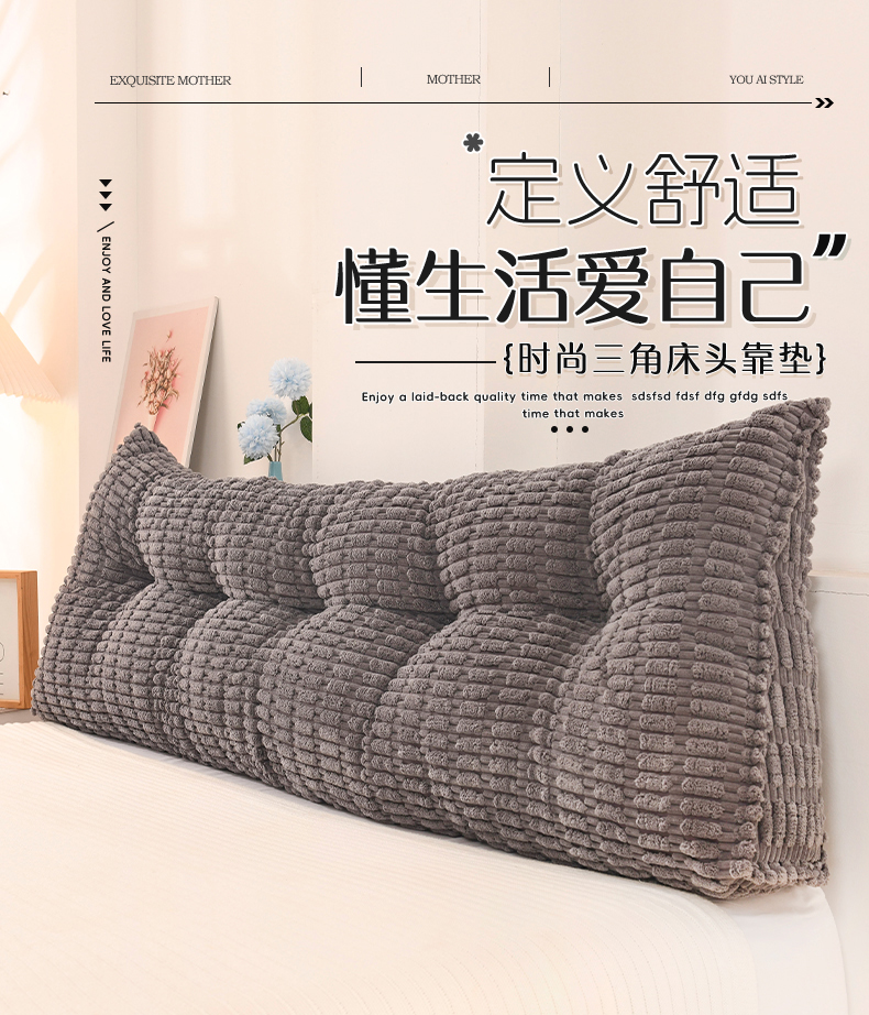 (总)碧尔家居 2025新款榻榻米床头靠枕大靠背卧室护腰靠垫可拆洗沙发双人软包三角玉米绒带头枕,米白,牛仔蓝,银灰