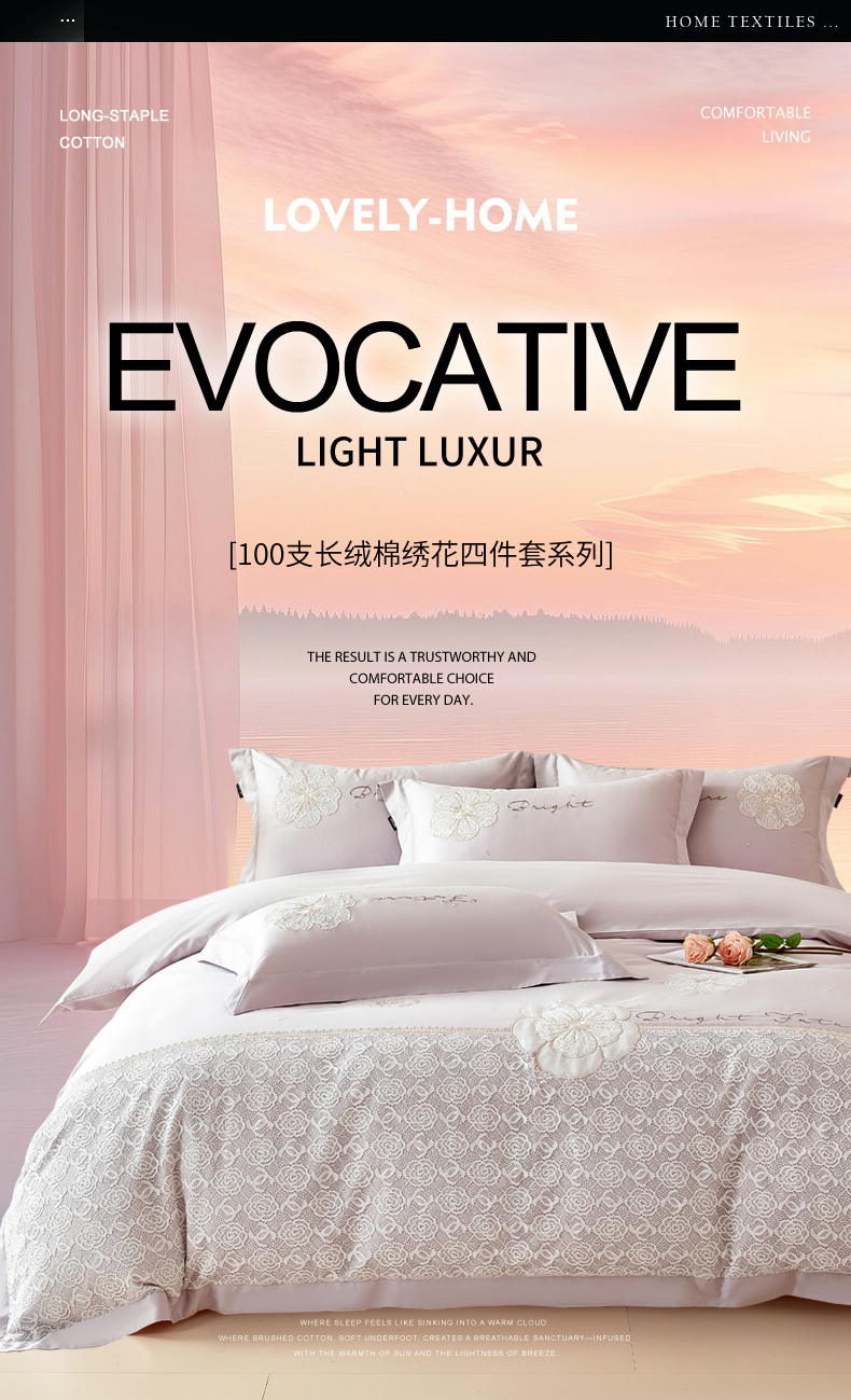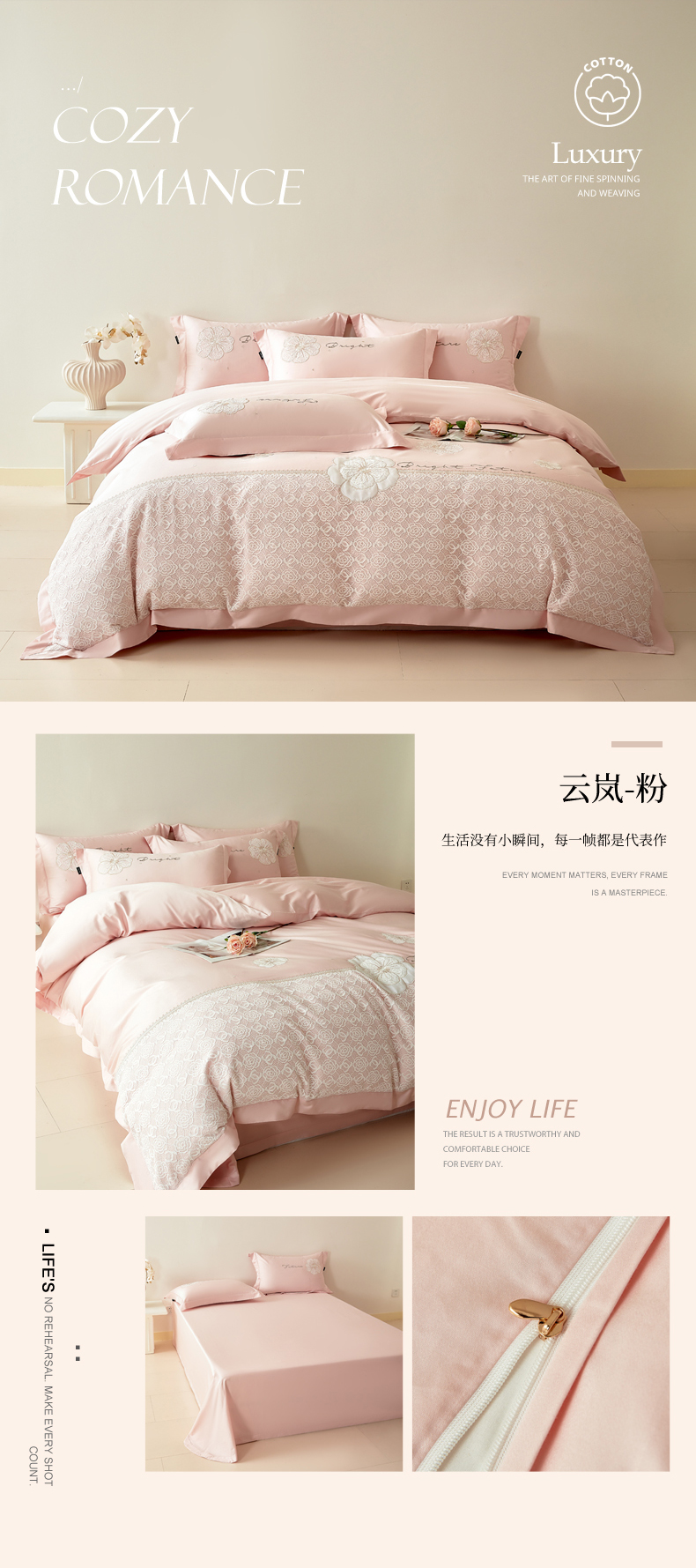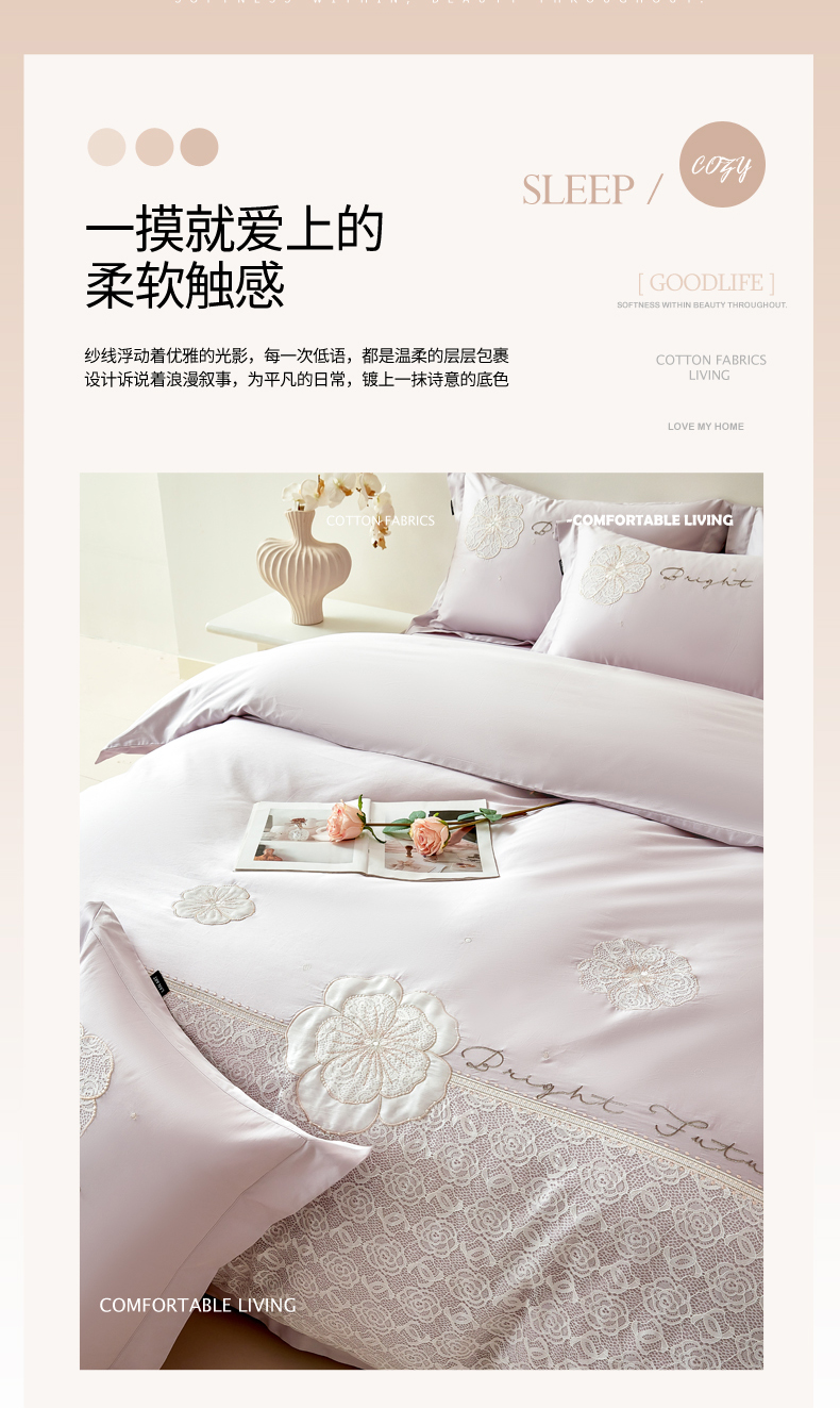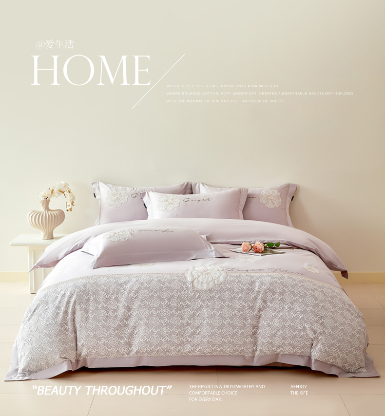 (总)洺兰家居 2026年新疆长绒棉100支刺绣款绣花工艺款法式四件套 云岚,云岚-粉,云岚-米,云岚-紫