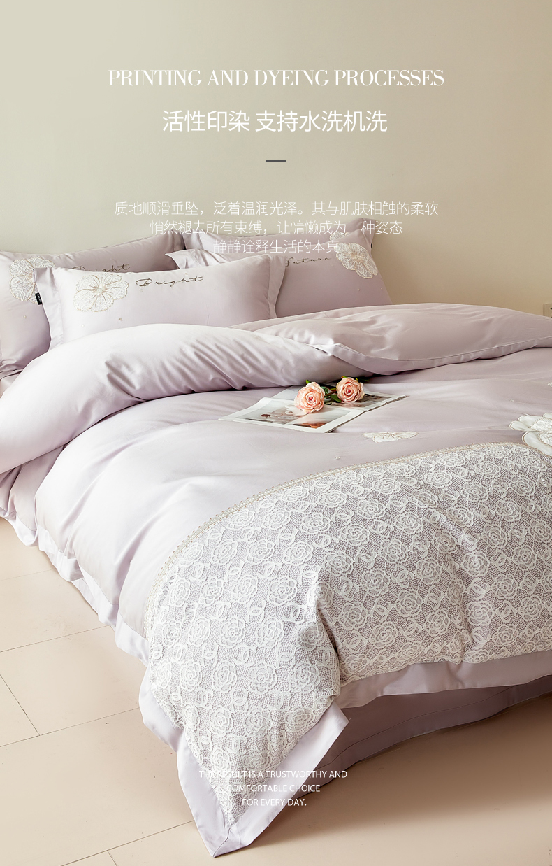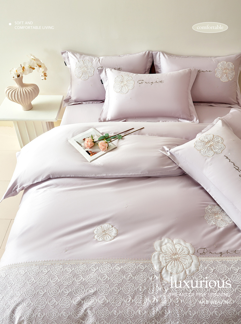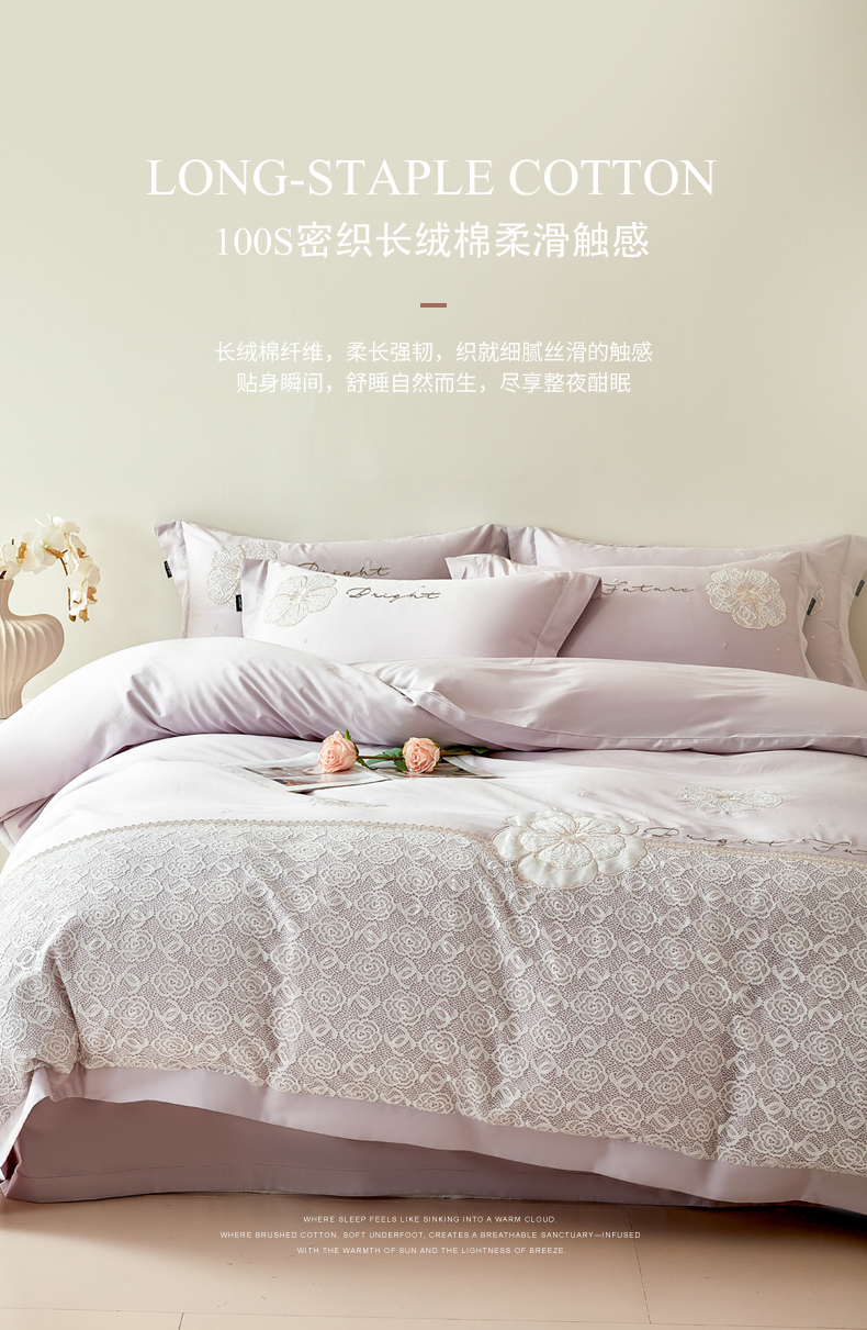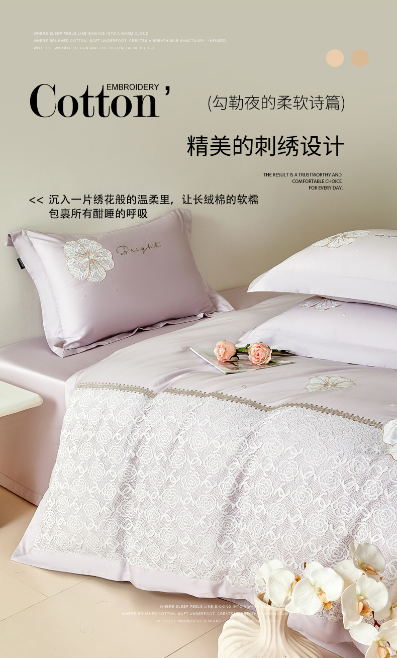 商品名称:洺兰家居 2026年新疆长绒棉100支刺绣款绣花工艺款法式四件套 云岚 云岚-紫
