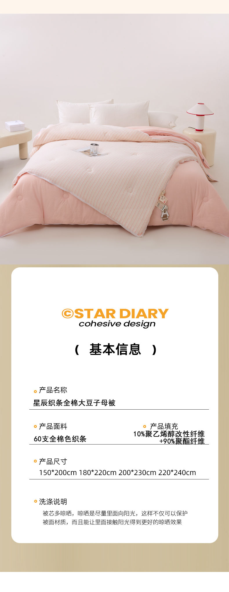 (总)VIP被业 2025新款星辰织条全棉大豆子母被冬被被芯,白色,粉色,灰色