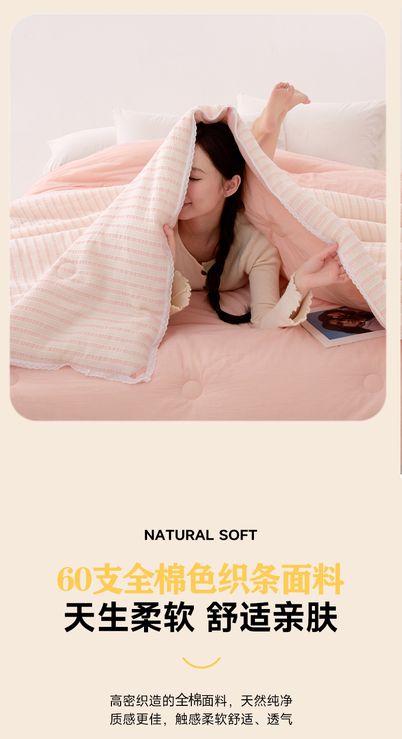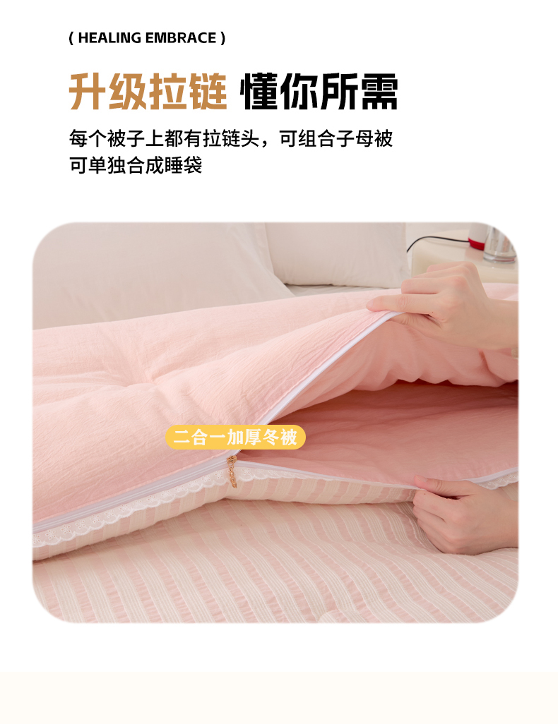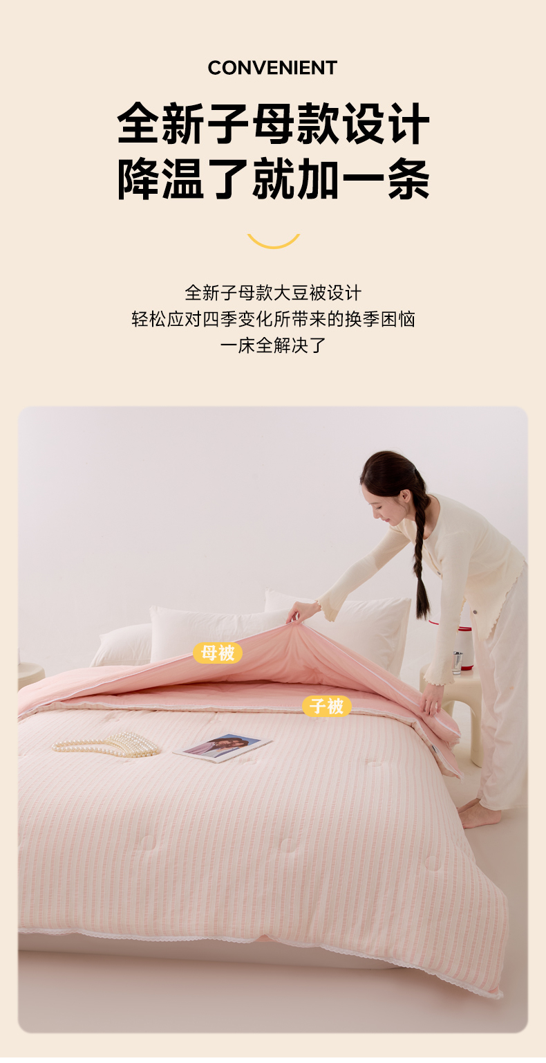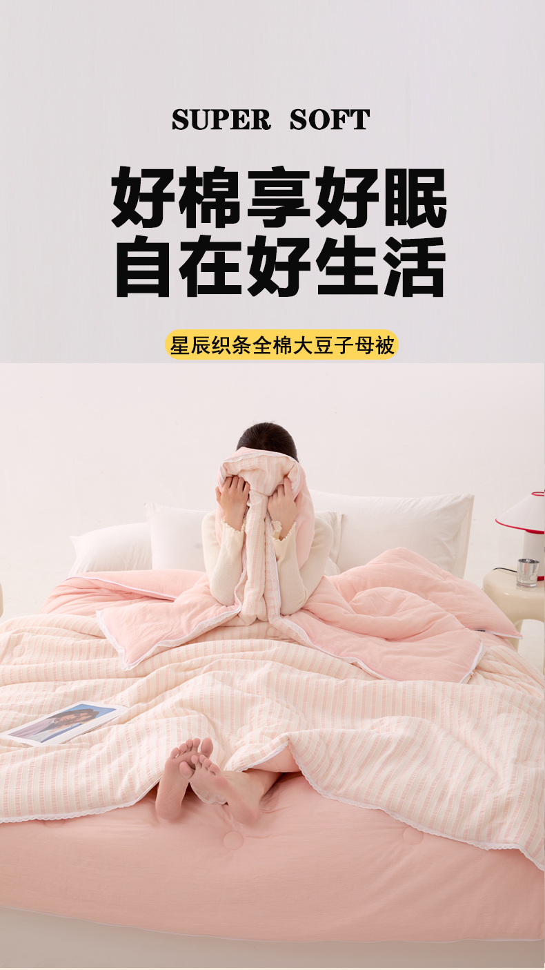 当前位置: 91家纺网 > 商品网购 > 被子 > 冬被 > VIP被业 2025新款星辰织条全棉大豆子母被冬被被芯 粉色