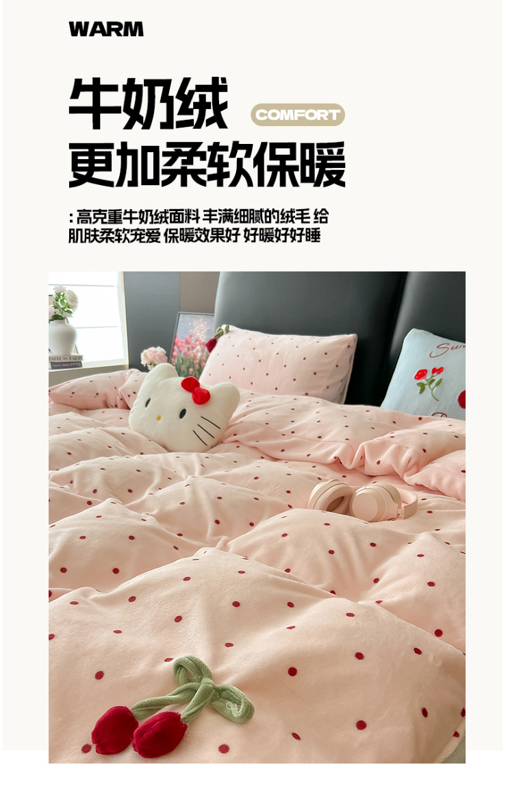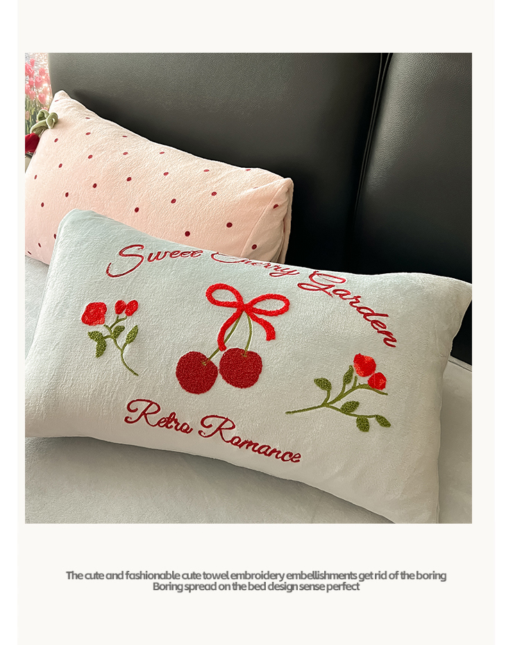 当前位置: 91家纺网 > 商品网购 > 床品套件 > 四件套 > 牛奶绒四件套 > (总)子钦家纺 2025秋冬新款小红书同款加厚牛奶绒樱桃蝴蝶结款毛巾绣床单床笠四件套-樱桃公主