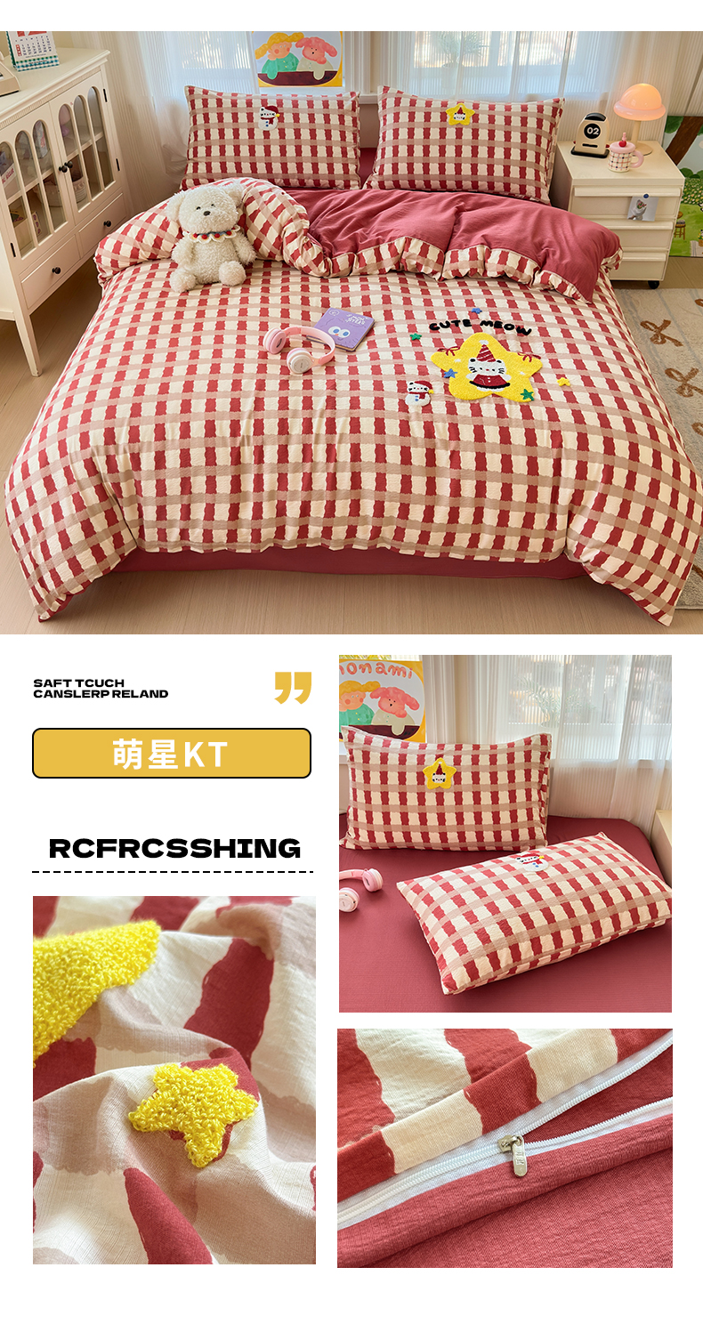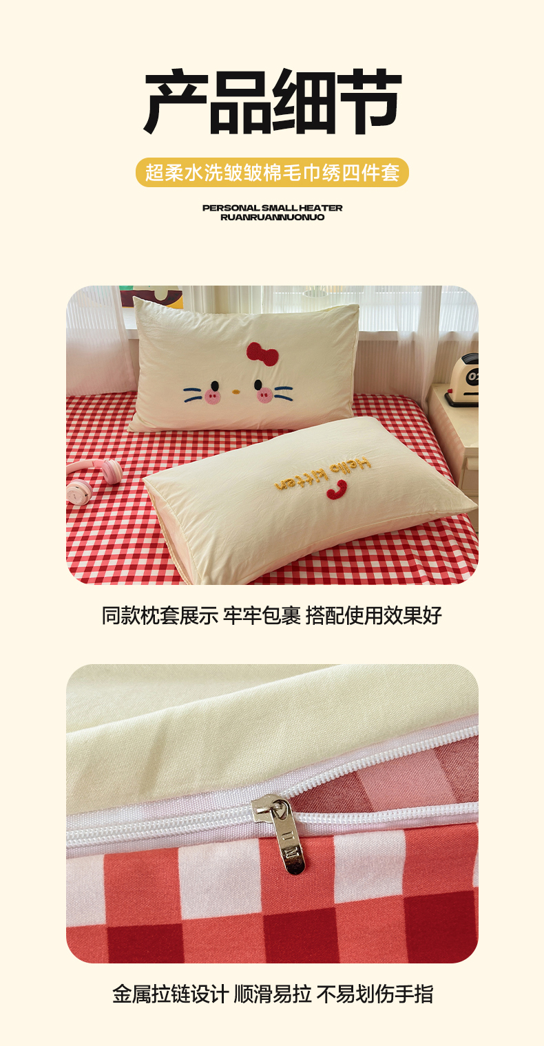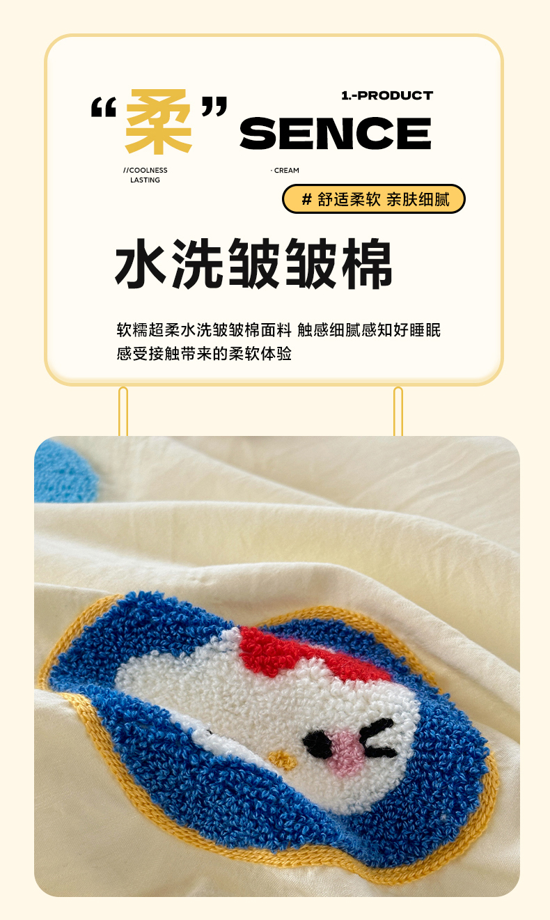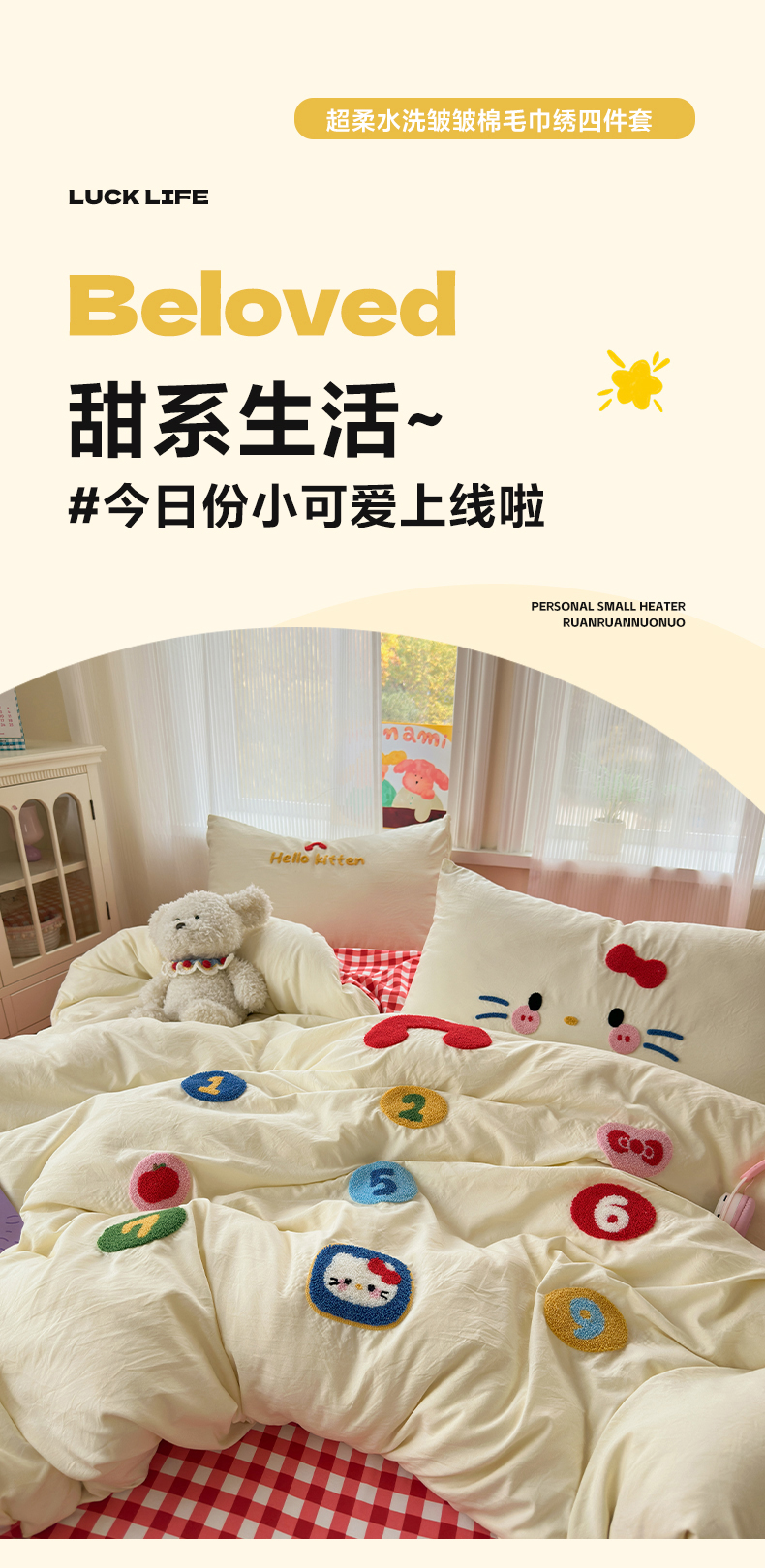 当前位置: 91家纺网 > 商品网购 > 床品套件 > 四件套 > 水洗棉四件套 > 奈颜 2026新款超柔水洗皱皱棉毛巾绣四件套 电话猫