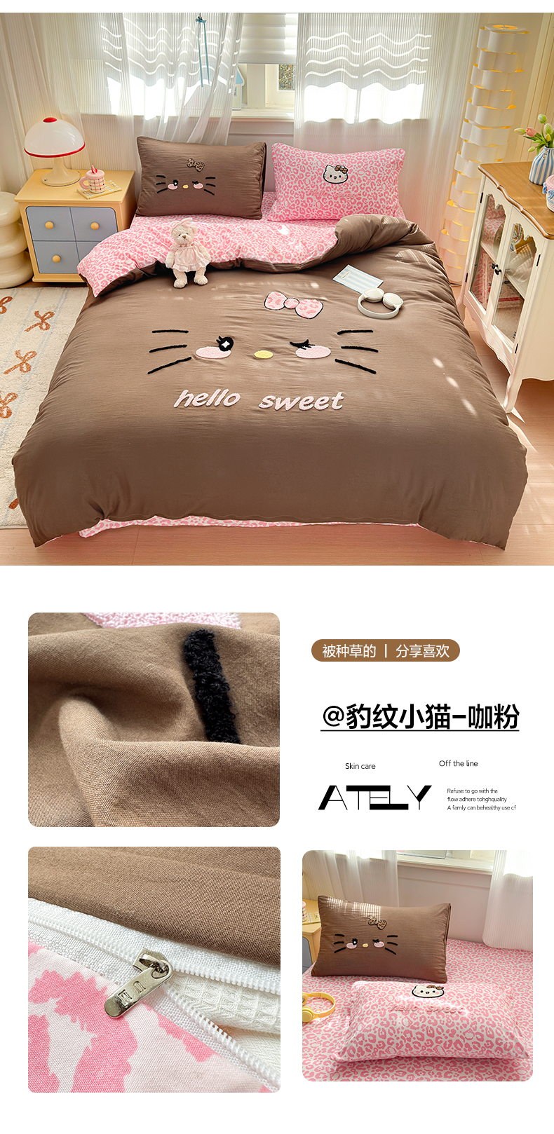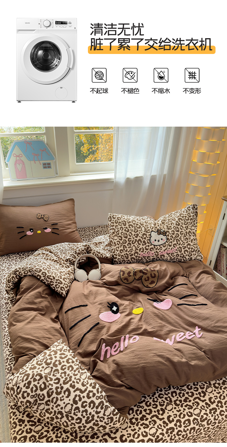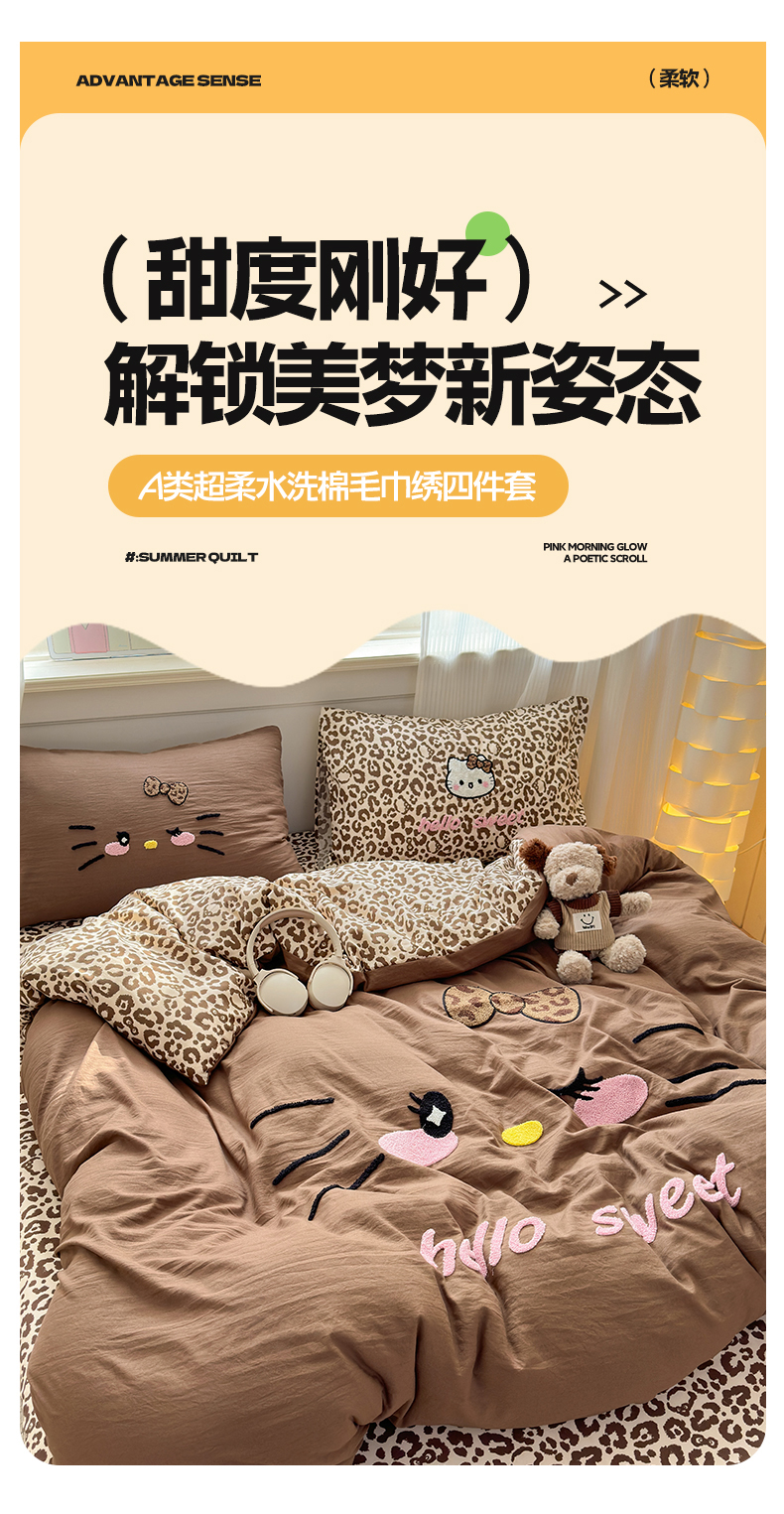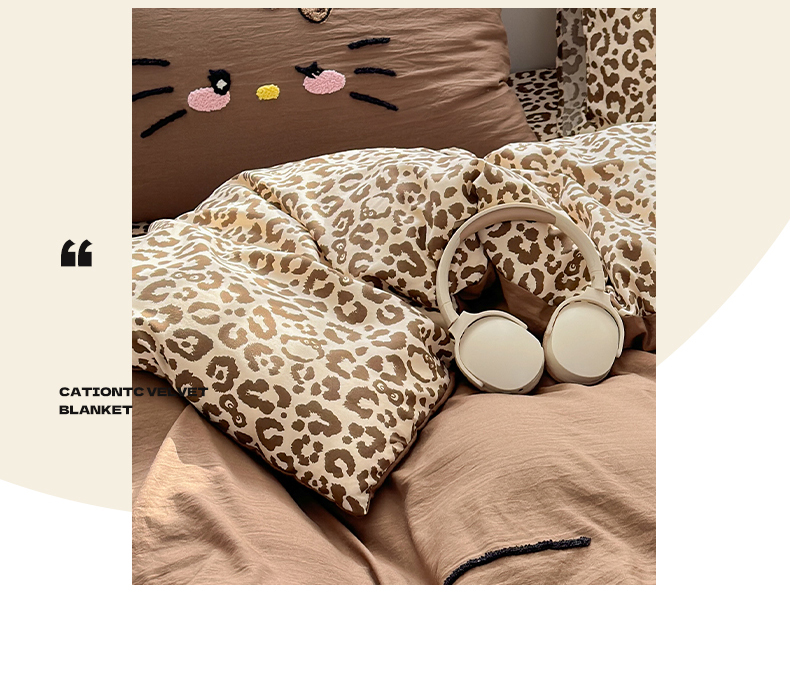 当前位置: 91家纺网 > 商品网购 > 床品套件 > 四件套 > 水洗棉四件套 > 奈颜 2026新款A类水洗棉大版毛巾绣豹纹小猫四件套--影棚图 豹纹小猫-深咖