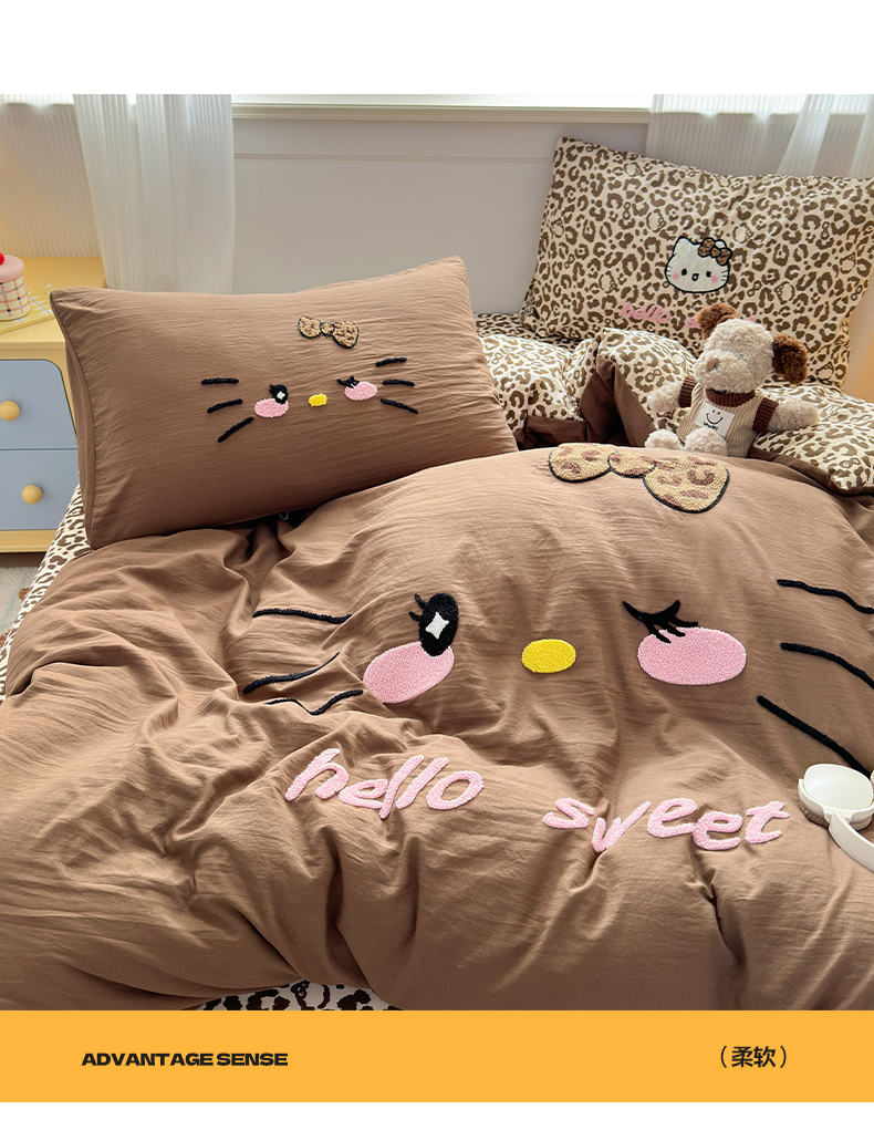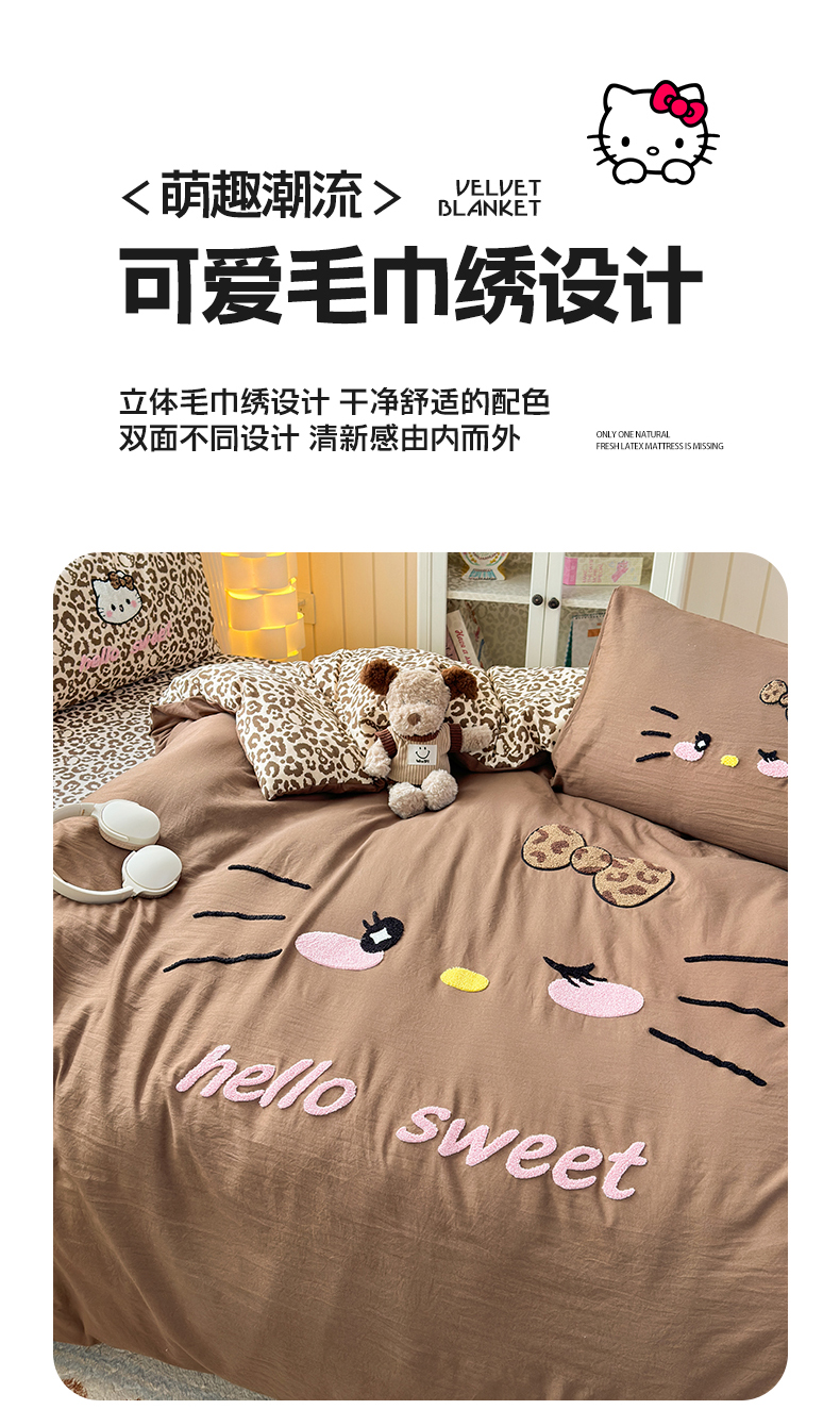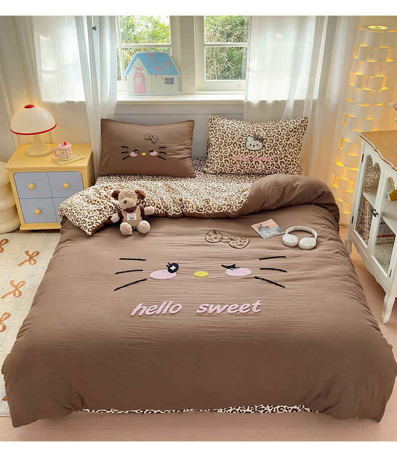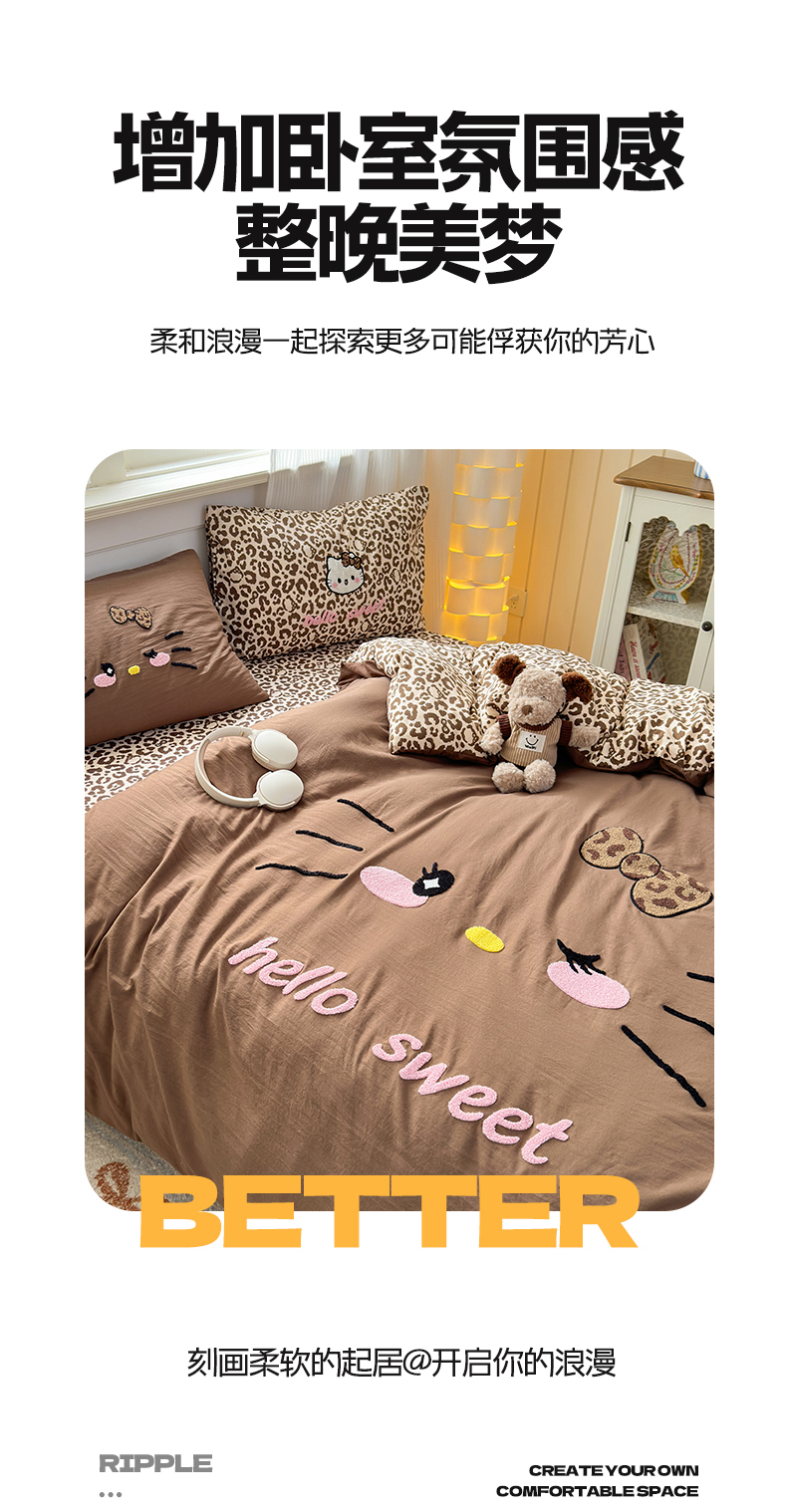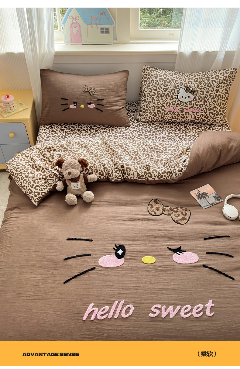 当前位置: 91家纺网 > 商品网购 > 床品套件 > 四件套 > 水洗棉四件套 > 奈颜 2026新款A类水洗棉大版毛巾绣豹纹小猫四件套--影棚图 豹纹小猫-深咖
