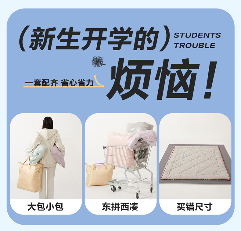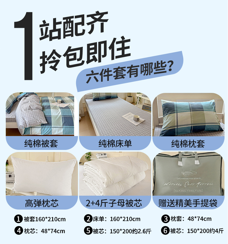 商品名称:小豚鼠 2025纯棉13372学生三件套全棉宿舍六件套(收纳袋)(顺丰代发) 马德里-蓝