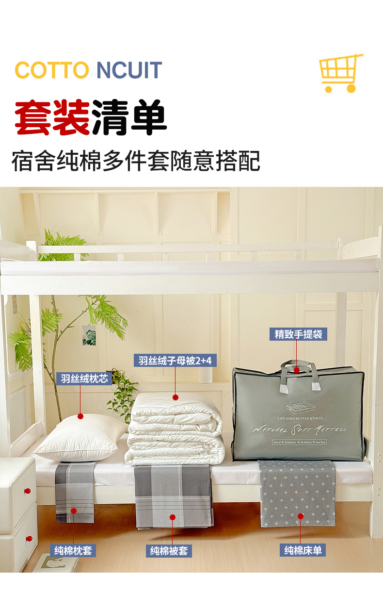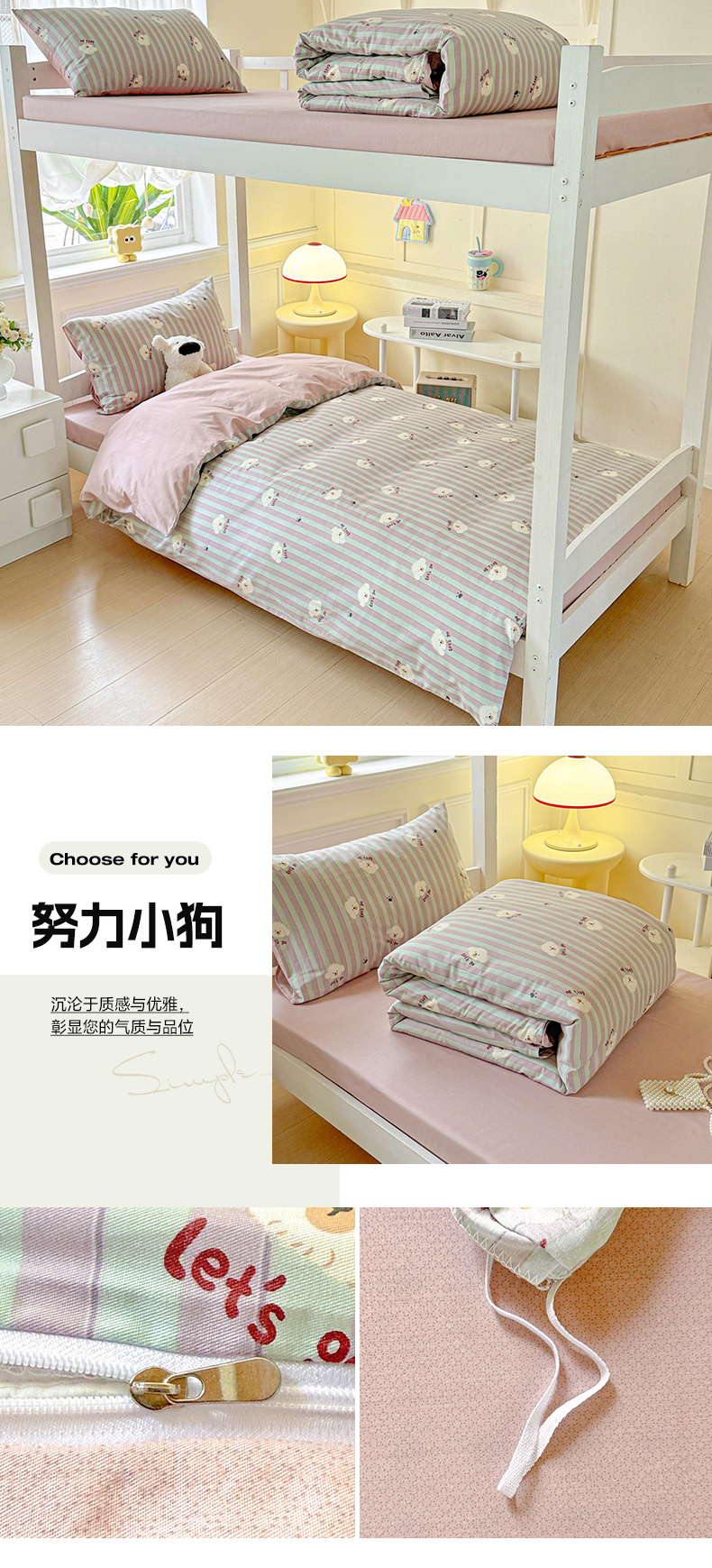(总)小豚鼠 2025纯棉13372学生三件套全棉宿舍六件套(收纳袋)(顺丰代发),草莓兔,方格蓝,军训绿,马德里-灰,马德里-蓝,努力小狗,熊豆豆-粉,熊豆豆-绿,收纳袋