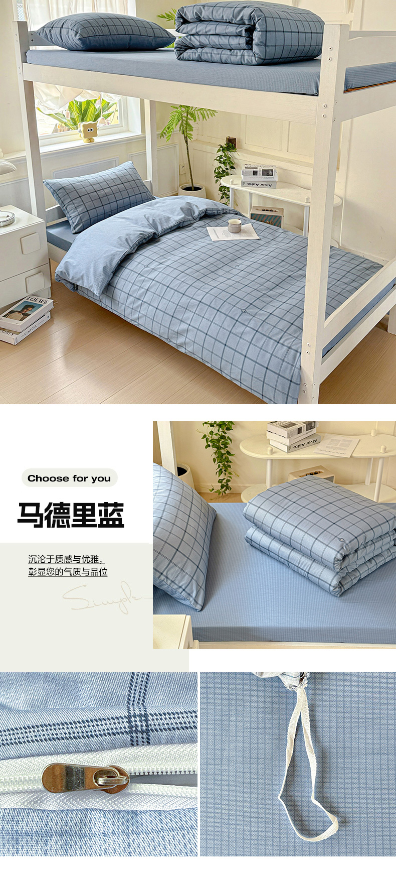 小豚鼠 2025纯棉13372学生三件套全棉宿舍六件套(收纳袋)(顺丰代发) 马德里-蓝