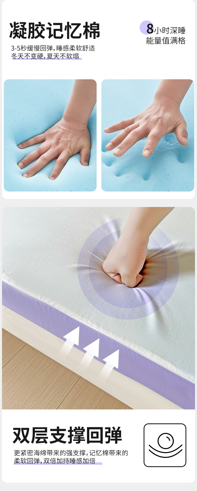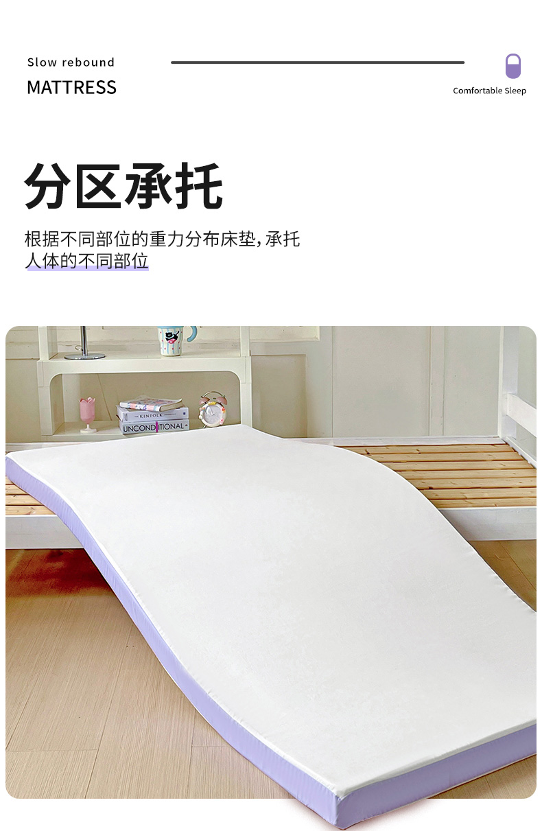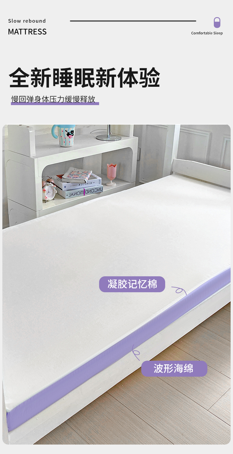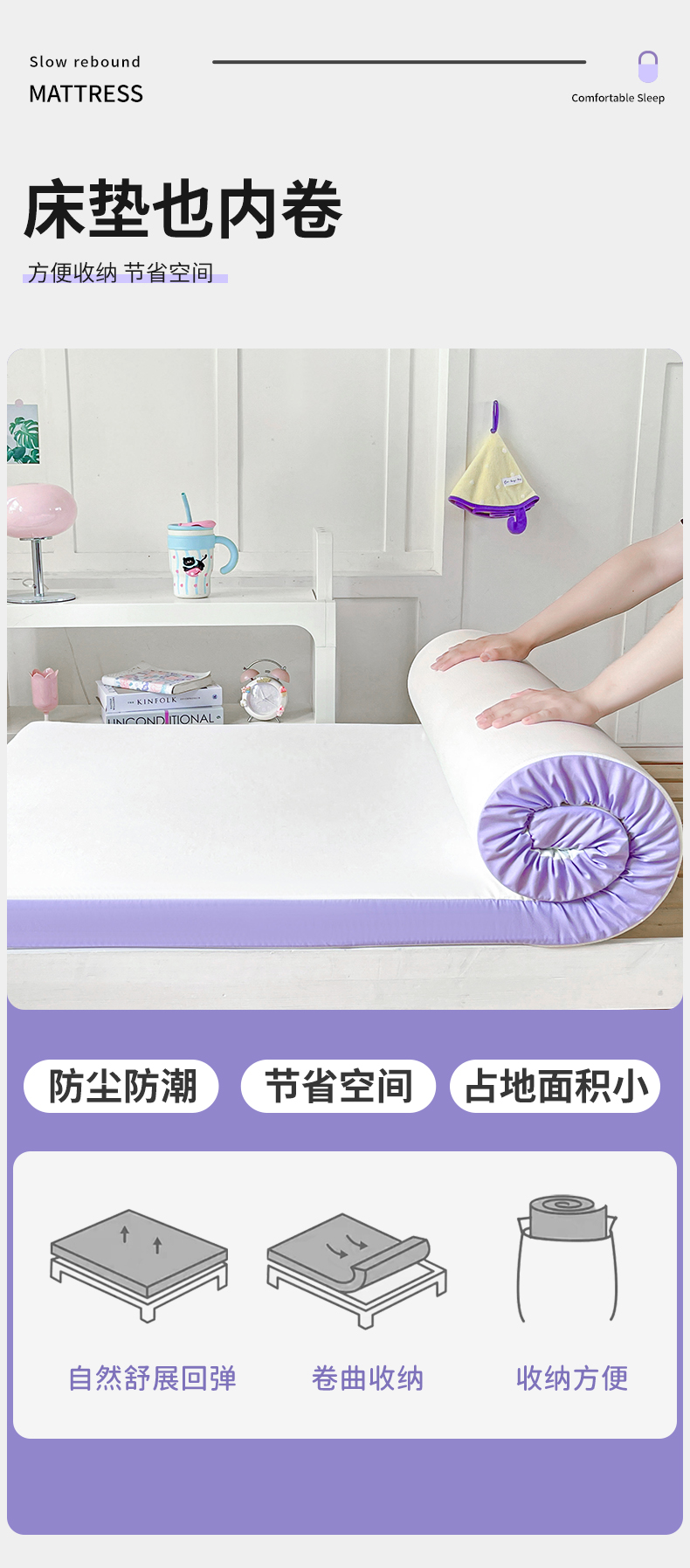 商品名称:小豚鼠 2025新款学生季蛋壳压花床垫记忆棉床垫学生宿舍软垫海绵垫子 清新紫