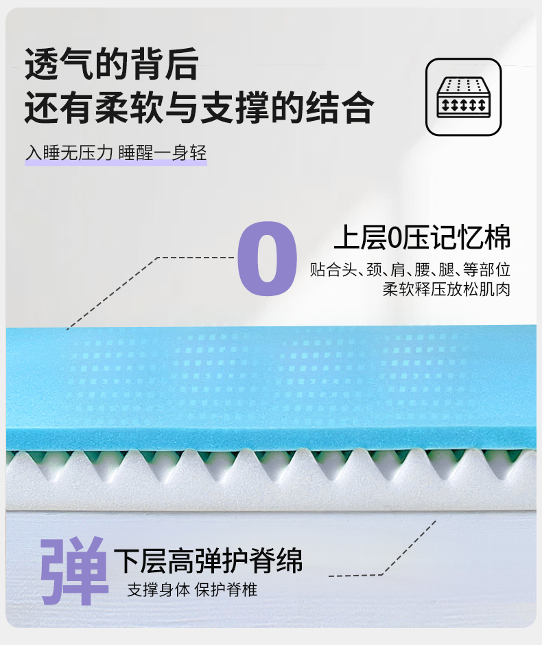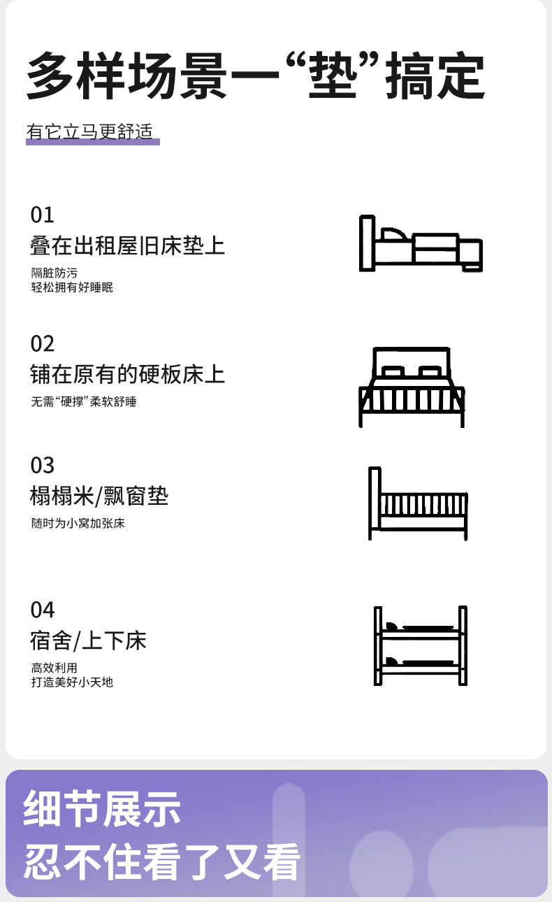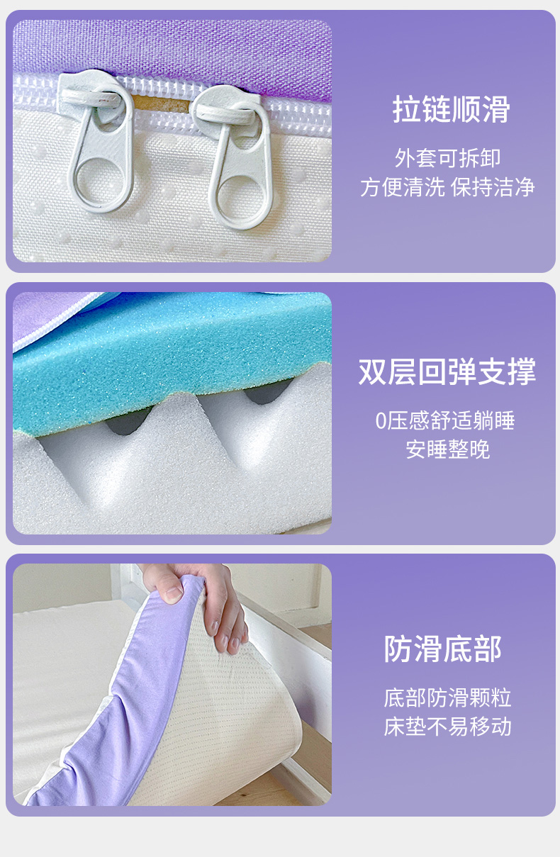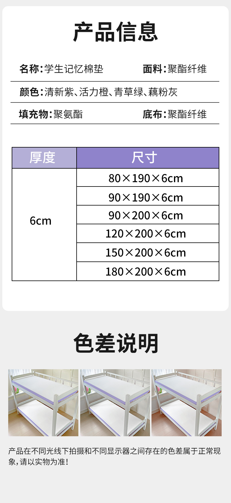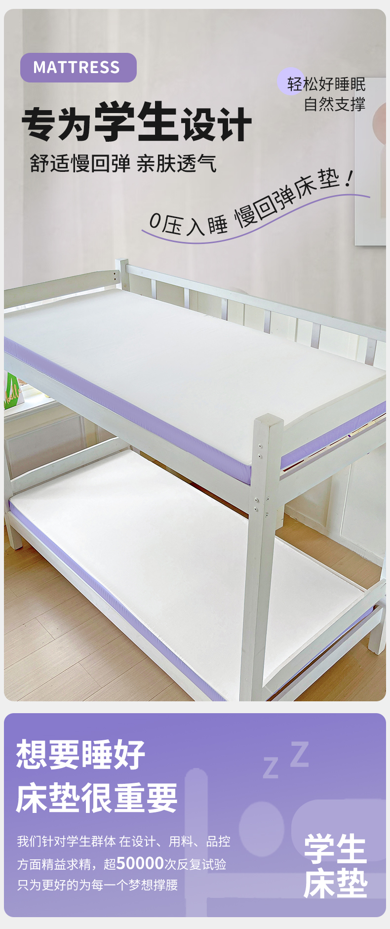 商品名称:小豚鼠 2025新款学生季蛋壳压花床垫记忆棉床垫学生宿舍软垫海绵垫子 清新紫