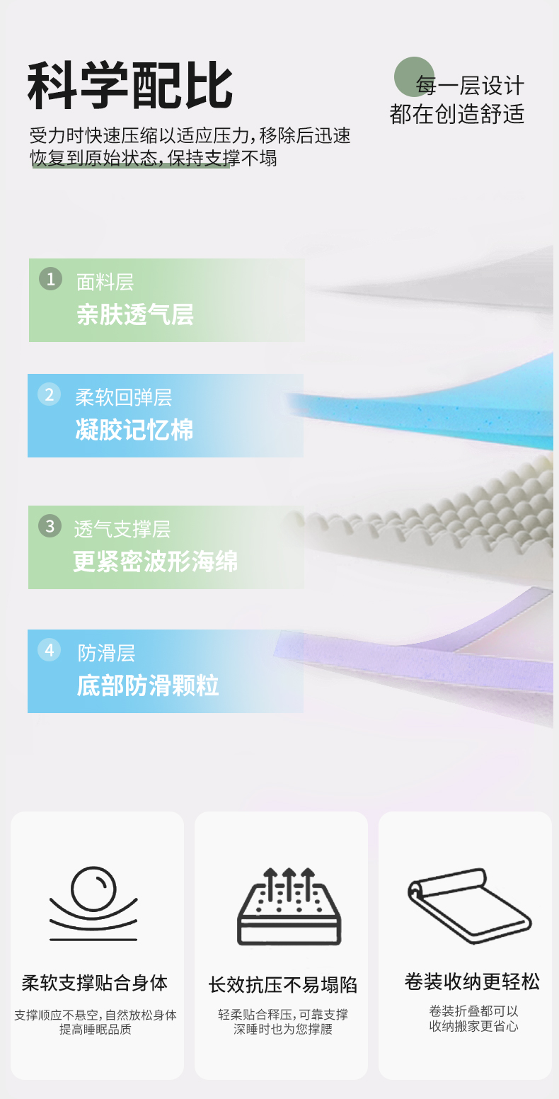 (总)小豚鼠 2025新款凝胶记忆棉床褥榻榻米记忆棉双人床垫薄垫,本白色