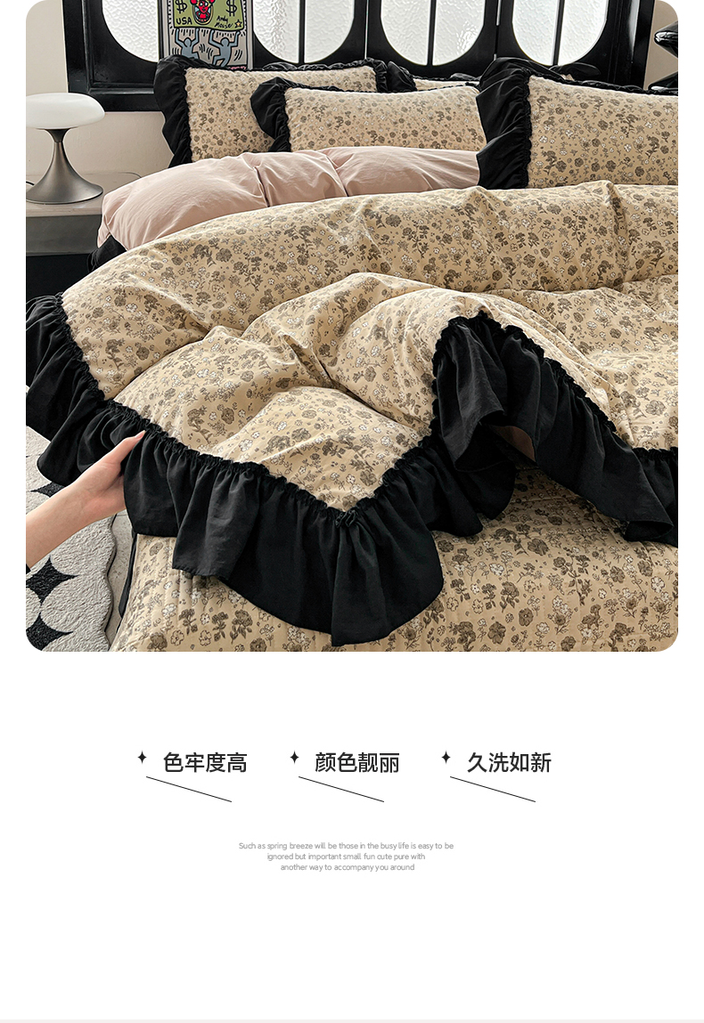 当前位置: 91家纺网 > 商品网购 > 床品套件 > 四件套 > 其它四件套 > 富米莱(原臻工厂) 2026新款法式赫本风大花边A类古法仿棉云感纱床盖床裙四件套 漫野