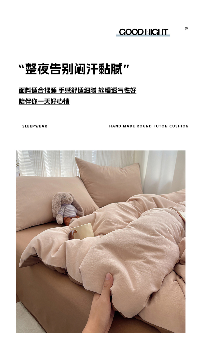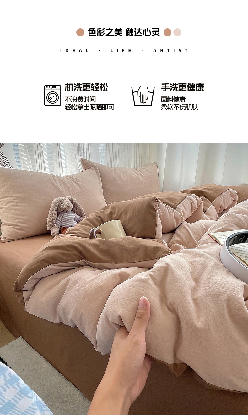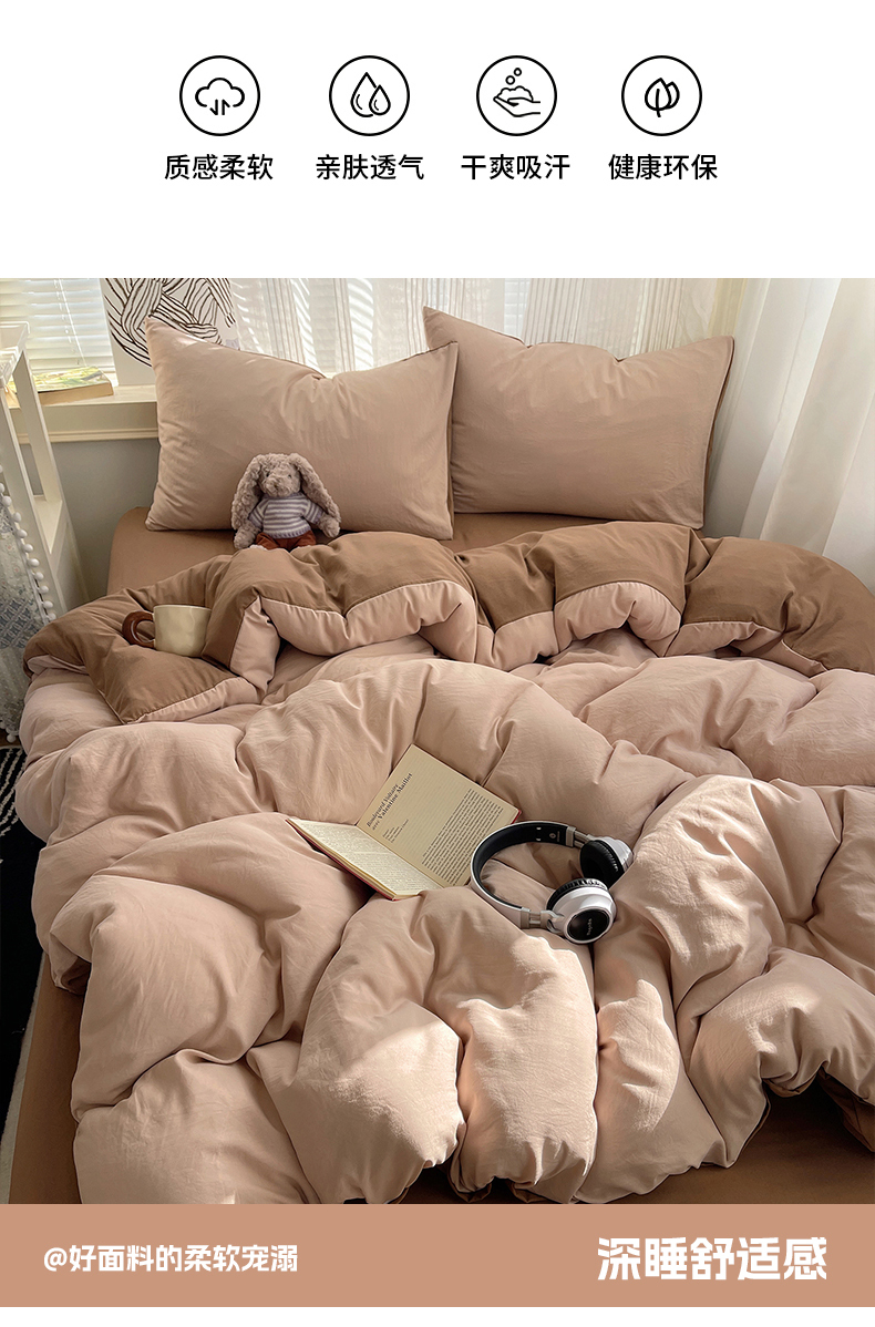当前位置: 91家纺网 > 商品网购 > 床品套件 > 四件套 > 水洗棉四件套 > 沐芷 2026 纯色水洗棉A类四件套105g床上用品床单被套三件套---【提供买家秀】 奶茶棕咖