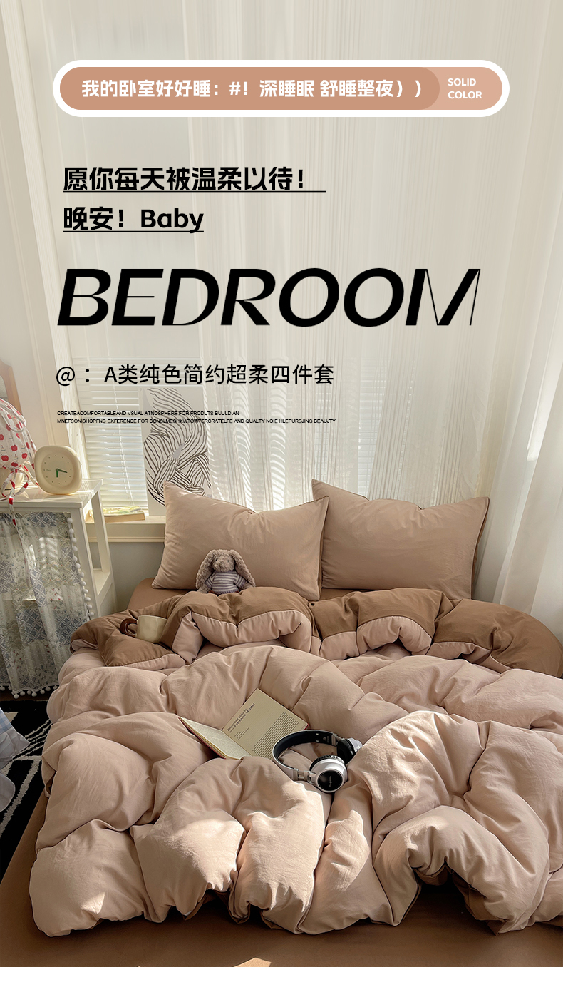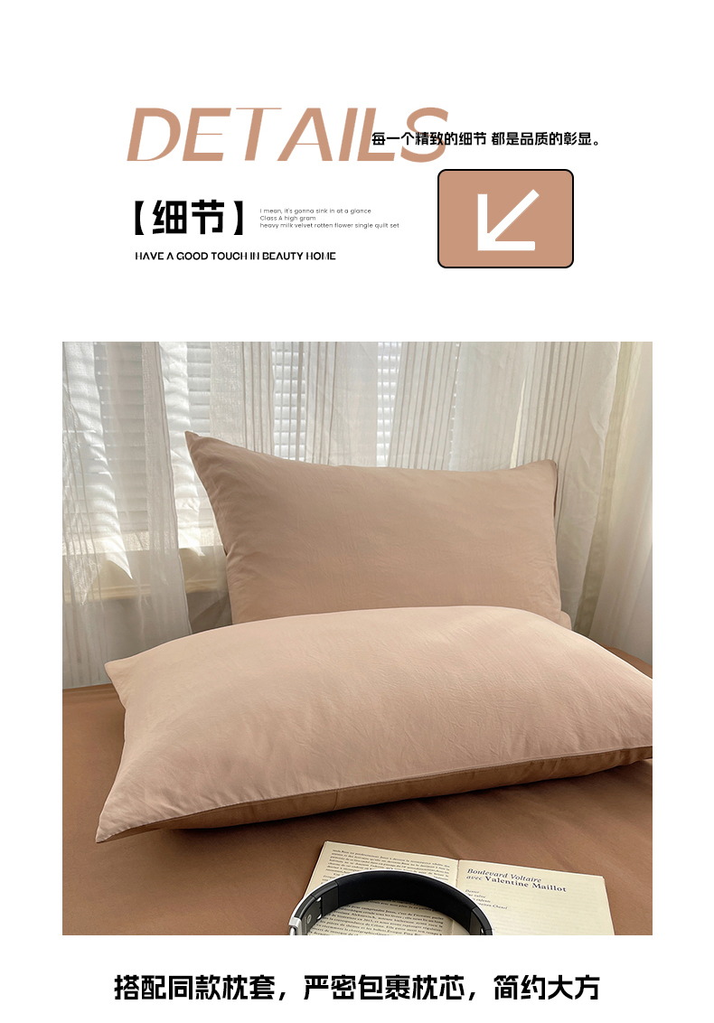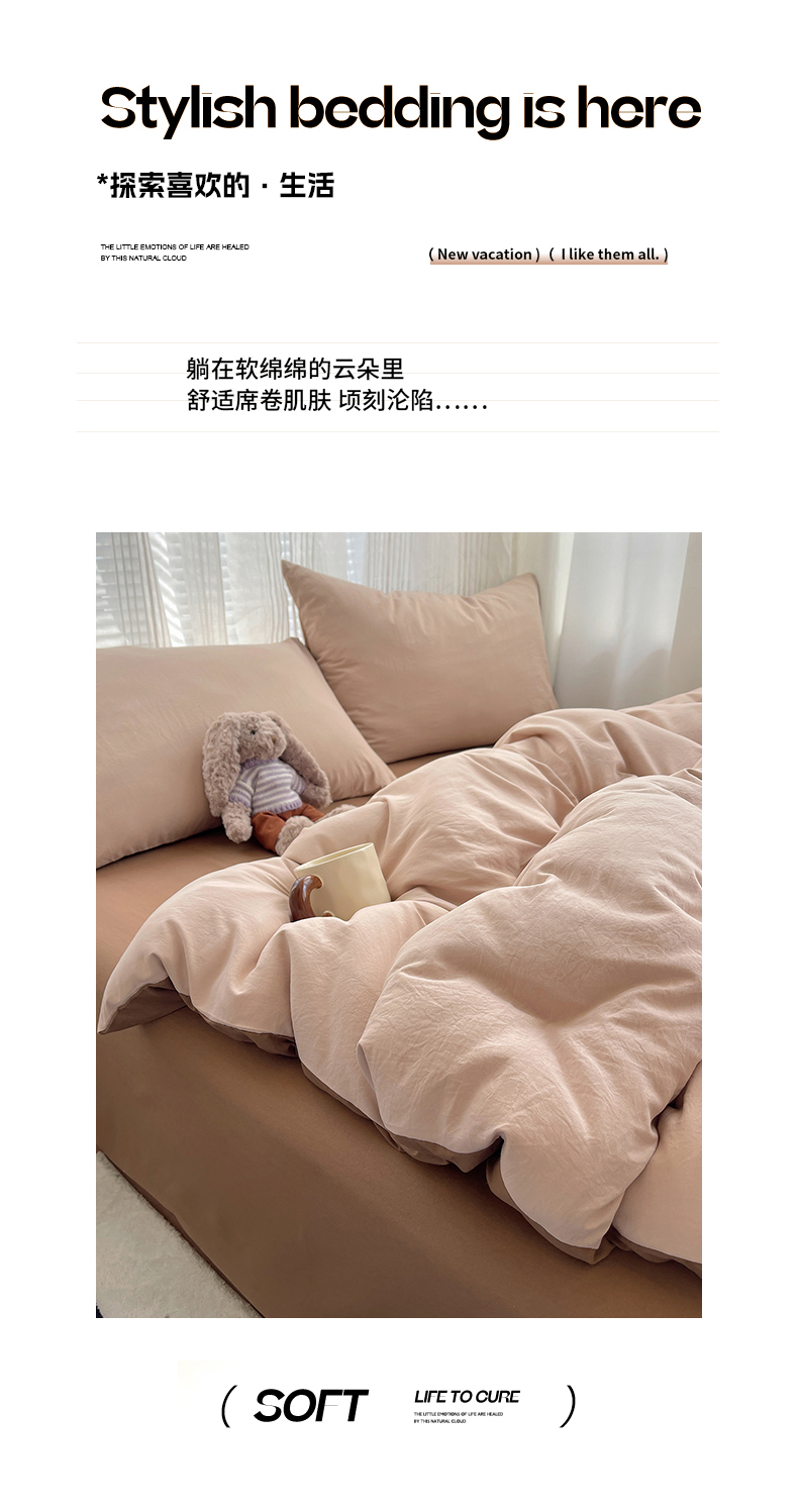 当前位置: 91家纺网 > 商品网购 > 床品套件 > 四件套 > 水洗棉四件套 > 沐芷 2026 纯色水洗棉A类四件套105g床上用品床单被套三件套---【提供买家秀】 奶茶棕咖