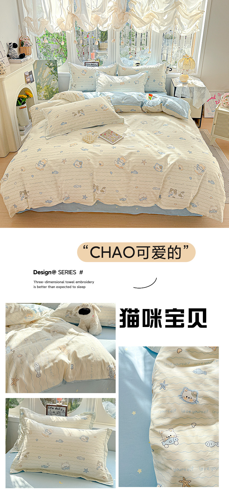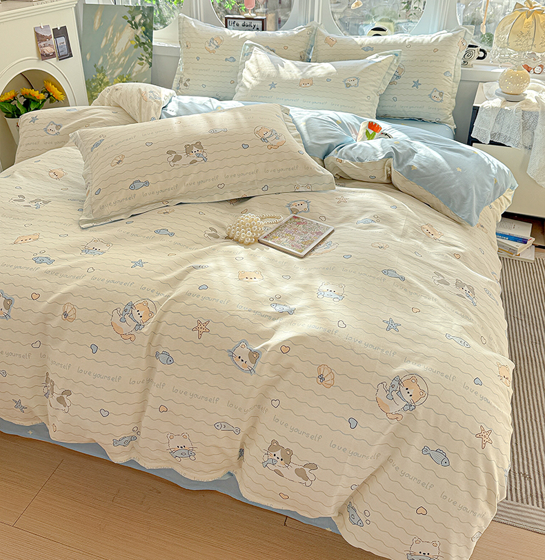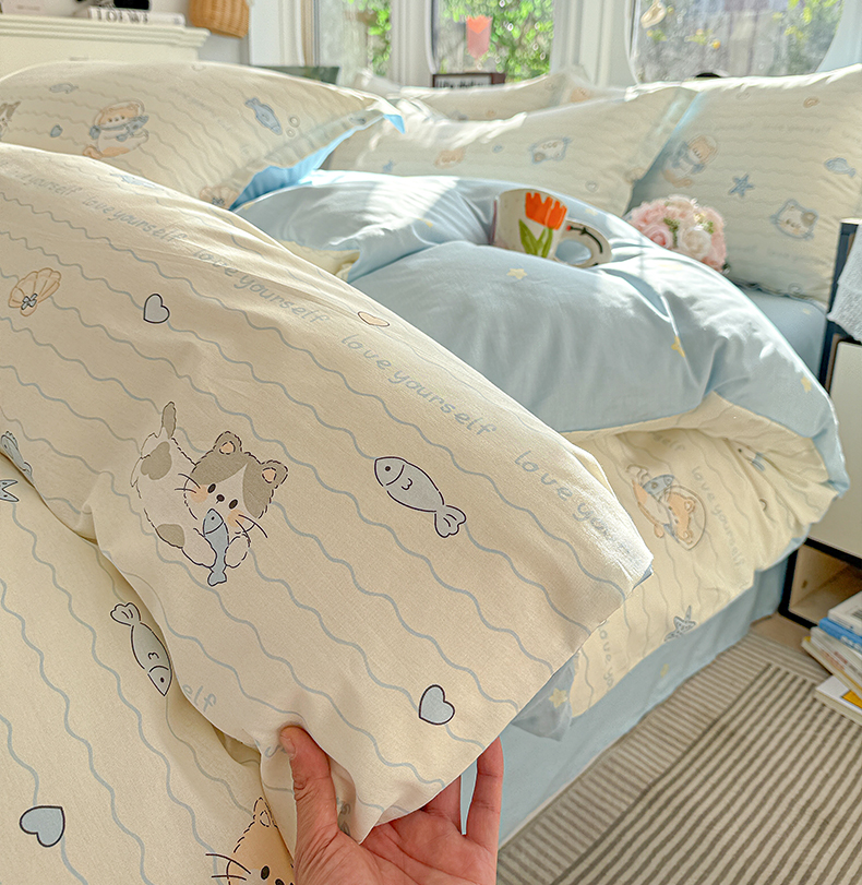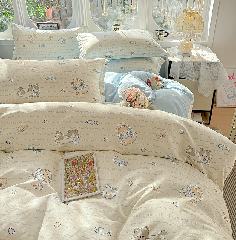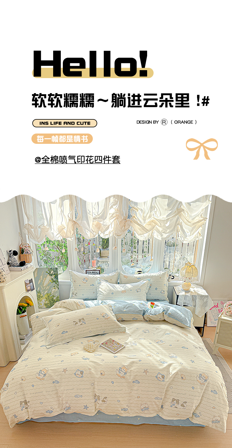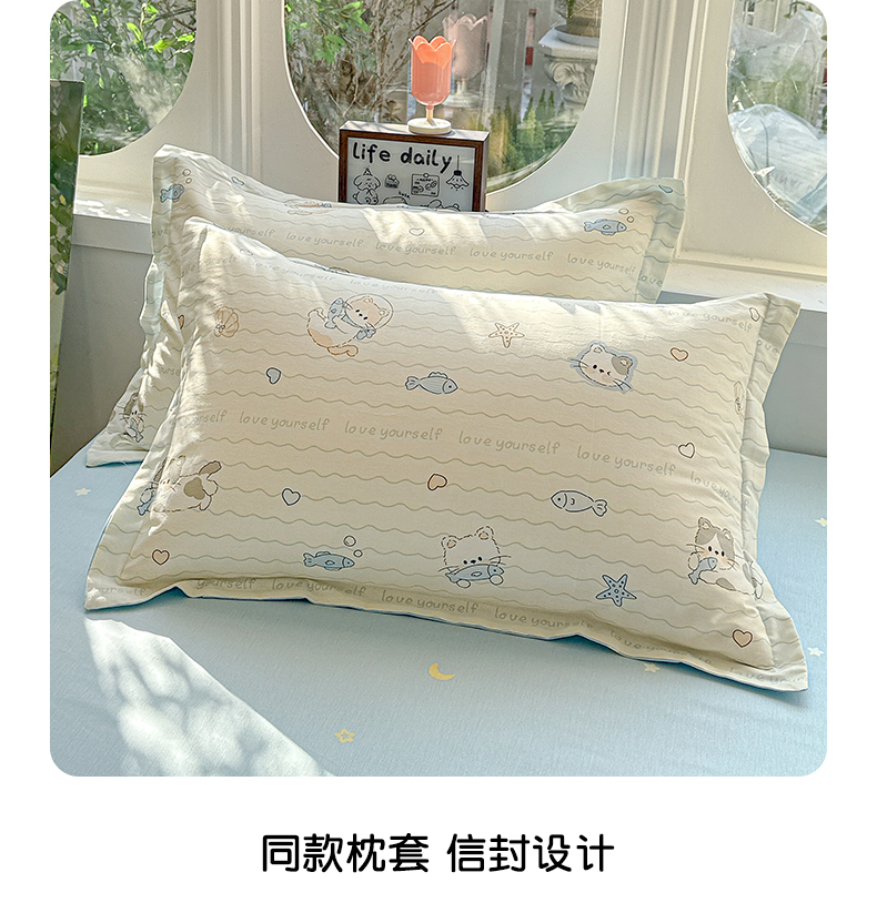 当前位置: 91家纺网 > 商品网购 > 床品套件 > 四件套 > 全棉普通四件套 > 卡普纯棉全棉四件套13070喷气床单款床笠款三件套 猫咪宝贝