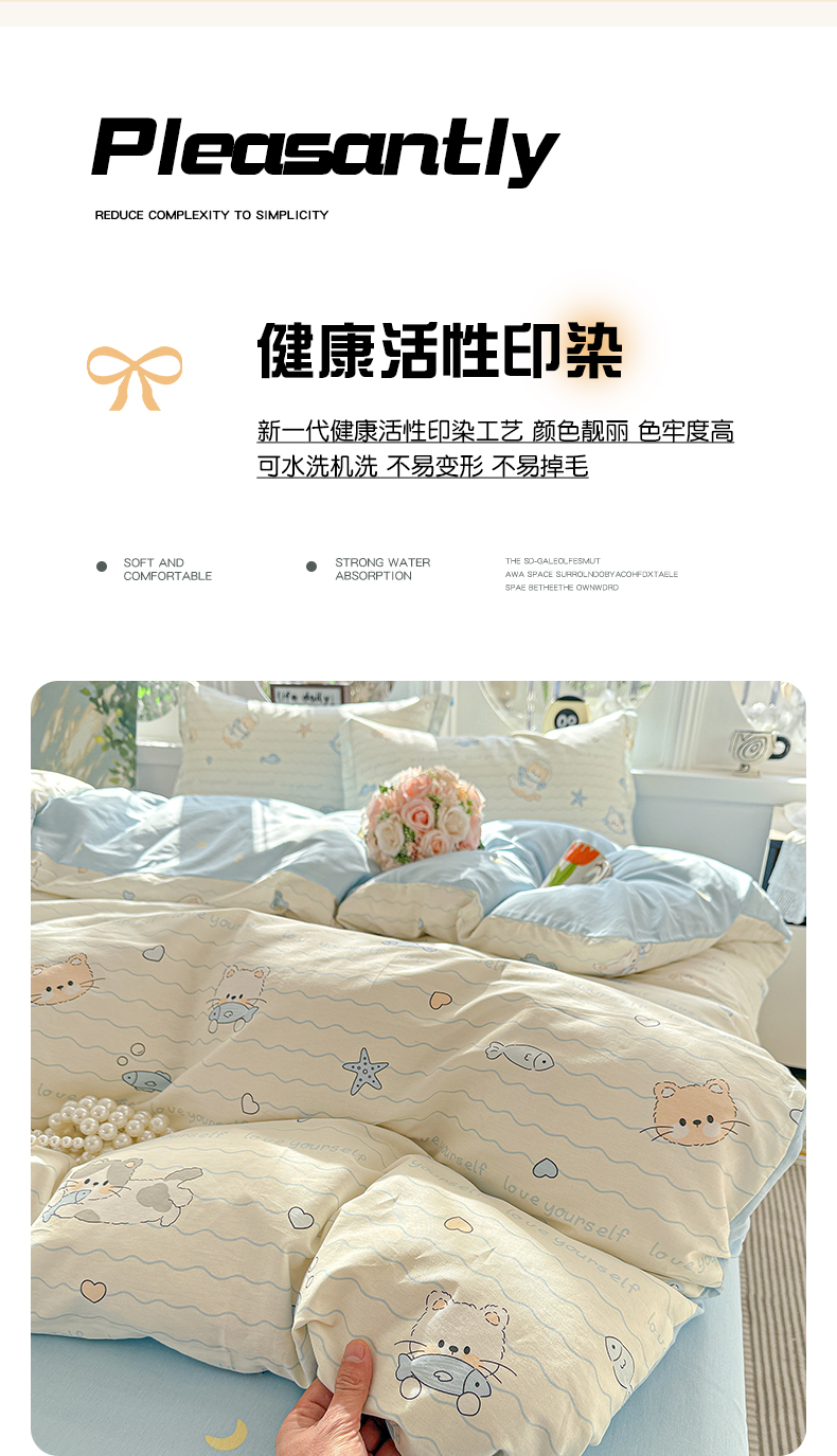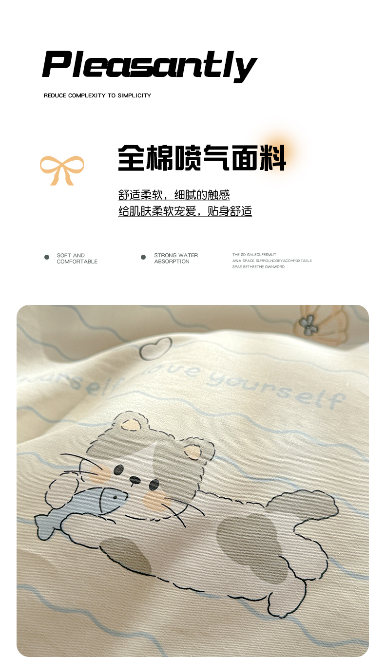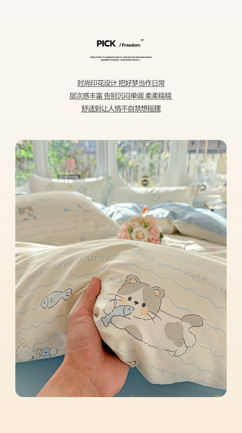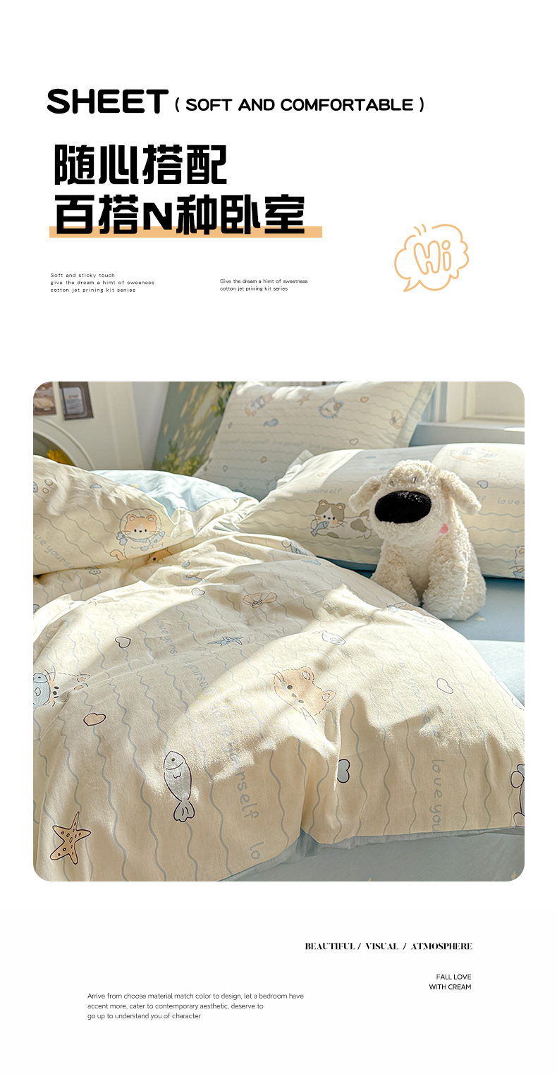 当前位置: 91家纺网 > 商品网购 > 床品套件 > 四件套 > 全棉普通四件套 > 卡普纯棉全棉四件套13070喷气床单款床笠款三件套 猫咪宝贝