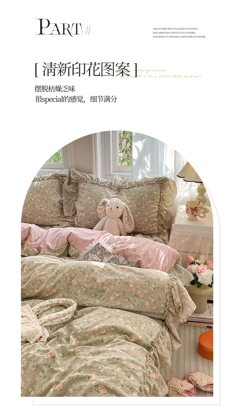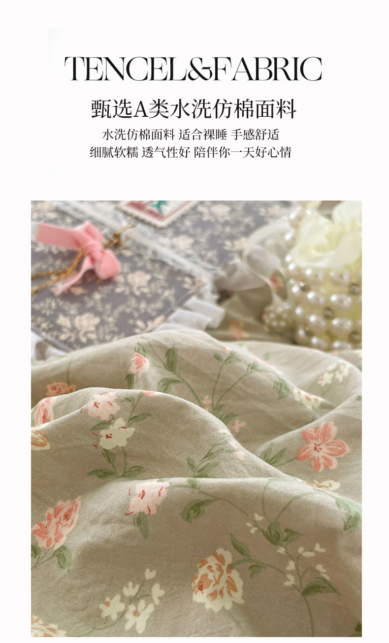 当前位置: 91家纺网 > 商品网购 > 床品套件 > 四件套 > 其它四件套 > 优尚佳生活馆 2026新款A类仿棉水洗法式工艺花边四件套 曼塔蔷薇