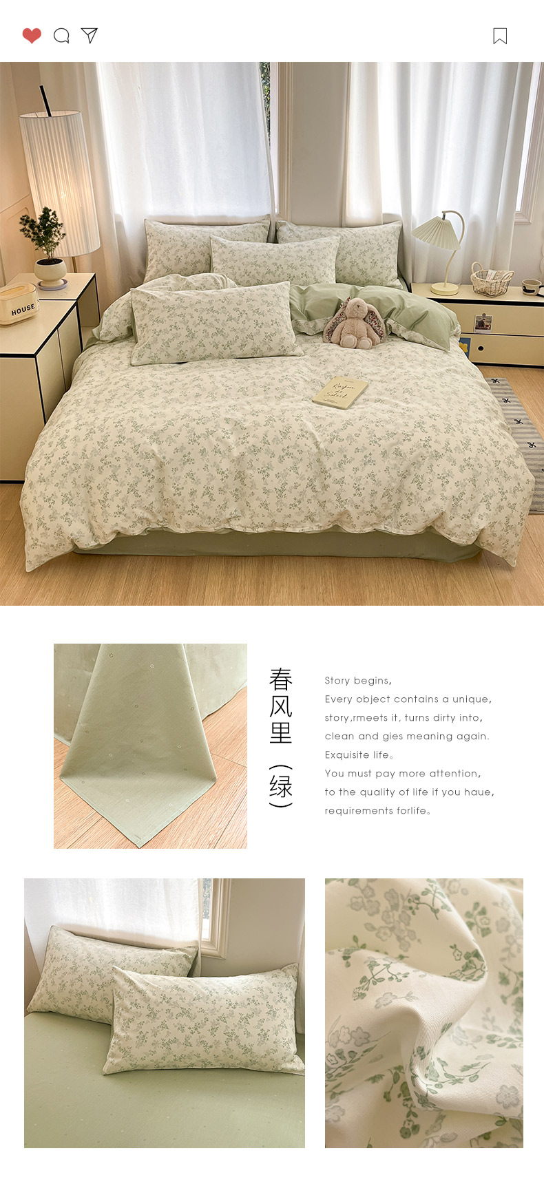 (总)瑞莱 2026新款A类全棉纯棉有氧双层纱四件套,白熊小姐,彩色木马,淡彩花笺,费尔岛小熊,焦糖奶汪-桔,焦糖奶汪-绿,萌星,苹果星星人,小樱桃,樱桃画报