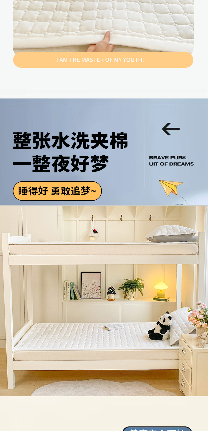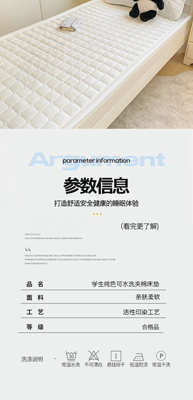 当前位置: 91家纺网 > 商品网购 > 床垫/床褥 > 普通床垫 > 麒东家纺 2026新款学生纯色水洗棉夹棉床垫系列 米白
